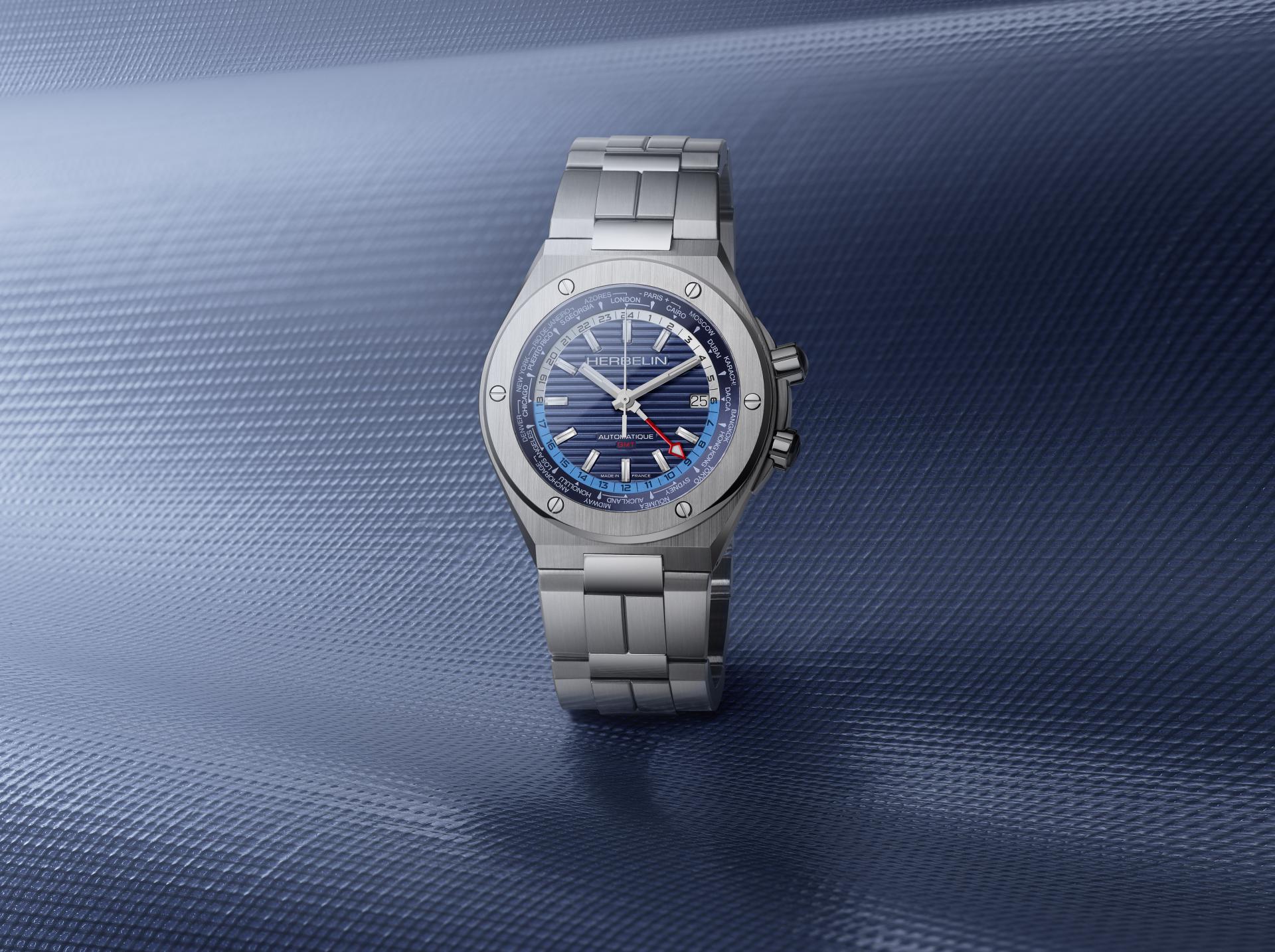 Réinterprétation au temps présent d’un modèle des années 70 du patrimoine horloger de la maison française Michel Herbelin, la collection Cap Camarat automatique rencontre un vif succès depuis son lancement en 2018. Après avoir présenté une montre trois aiguilles/date déclinée en plusieurs versions, la marque horlogère introduit aujourd’hui un garde-temps doté d’une fonction GMT doublée d’un worldtimer manuel : une première chez Michel Herbelin. Judicieusement conçue pour maitriser les décalages horaires avec précision, cette globe-trotteuse de style est éditée en série limitée à 500 exemplaires numérotés.