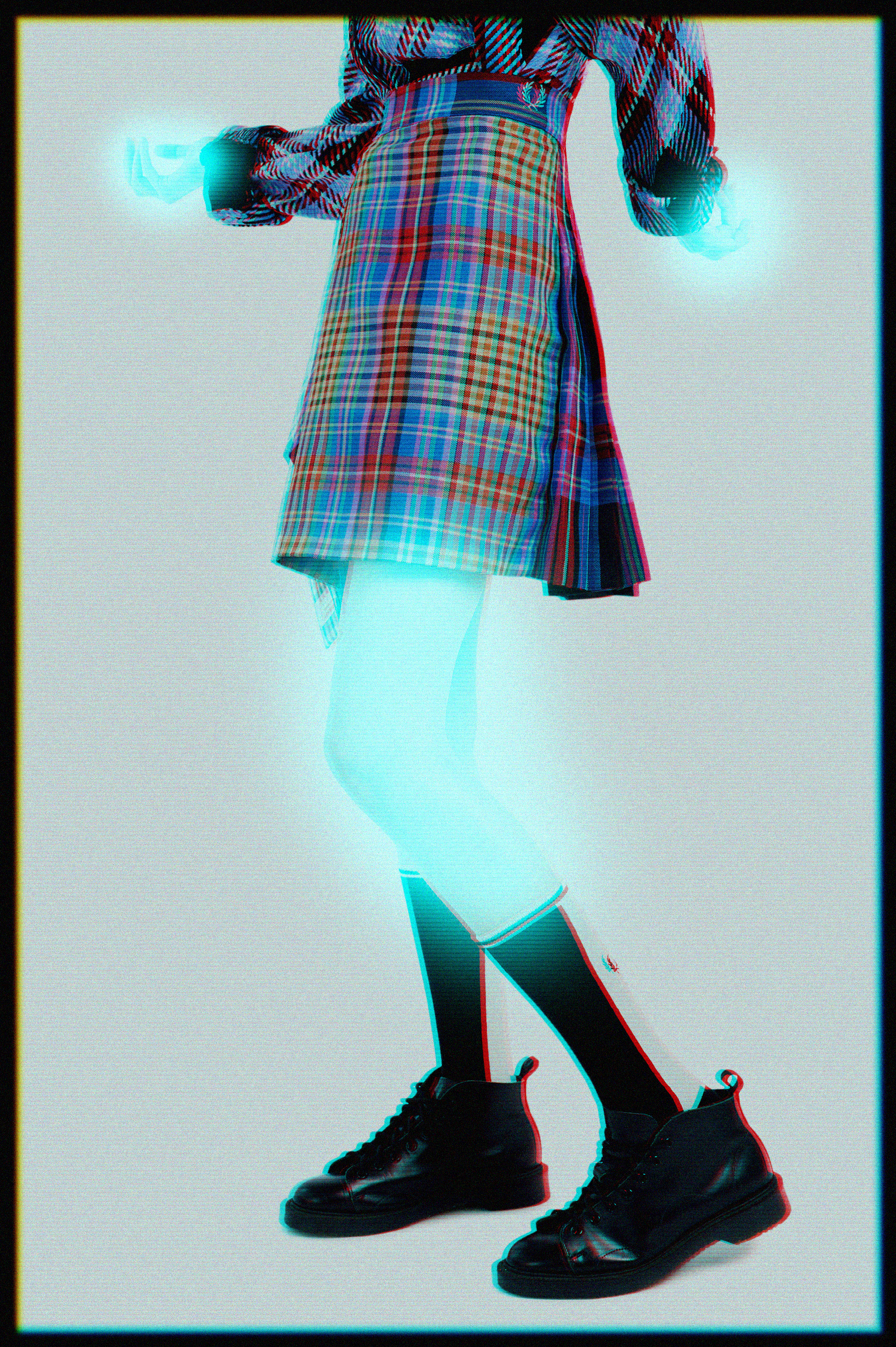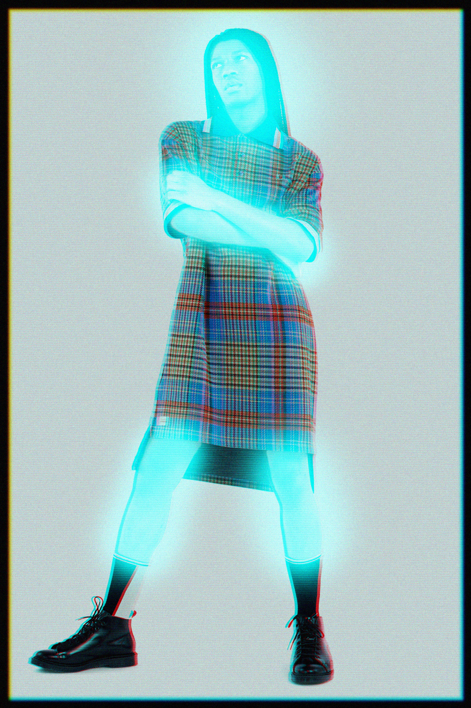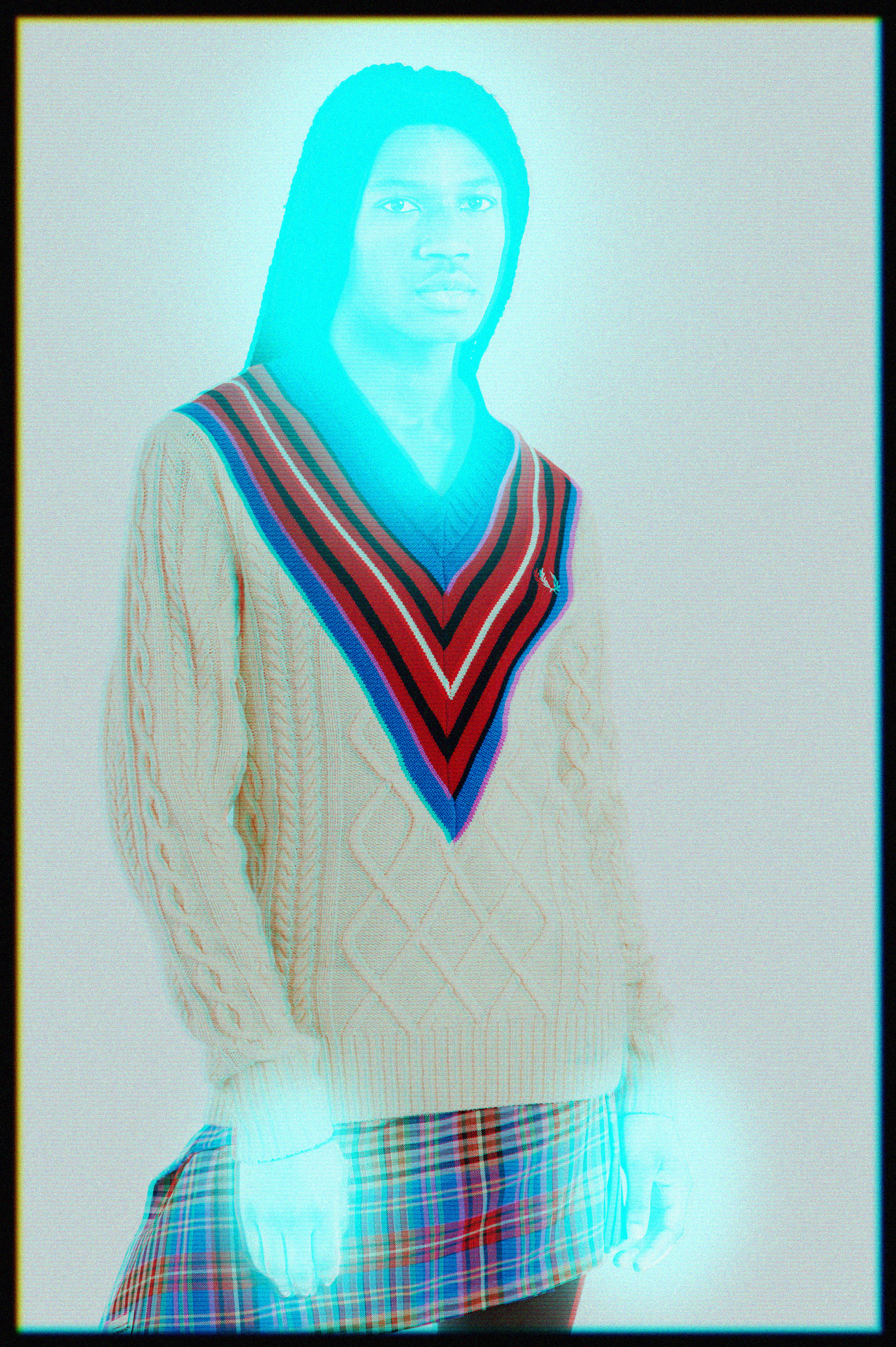 La première collection par exemple célèbre l’héritage commun des deux marques, le tartan. Charles Jeffrey LOVERBOY détourne les motifs traditionnels et ajoute une flamboyance DIY subversive aux polos, aux blousons et aux sacs Fred Perry. Le tricot, signature de Charles Jeffrey LOVERBOY, est représenté à travers des pulls et des cardigans et des chaussettes à hauteur de genou.