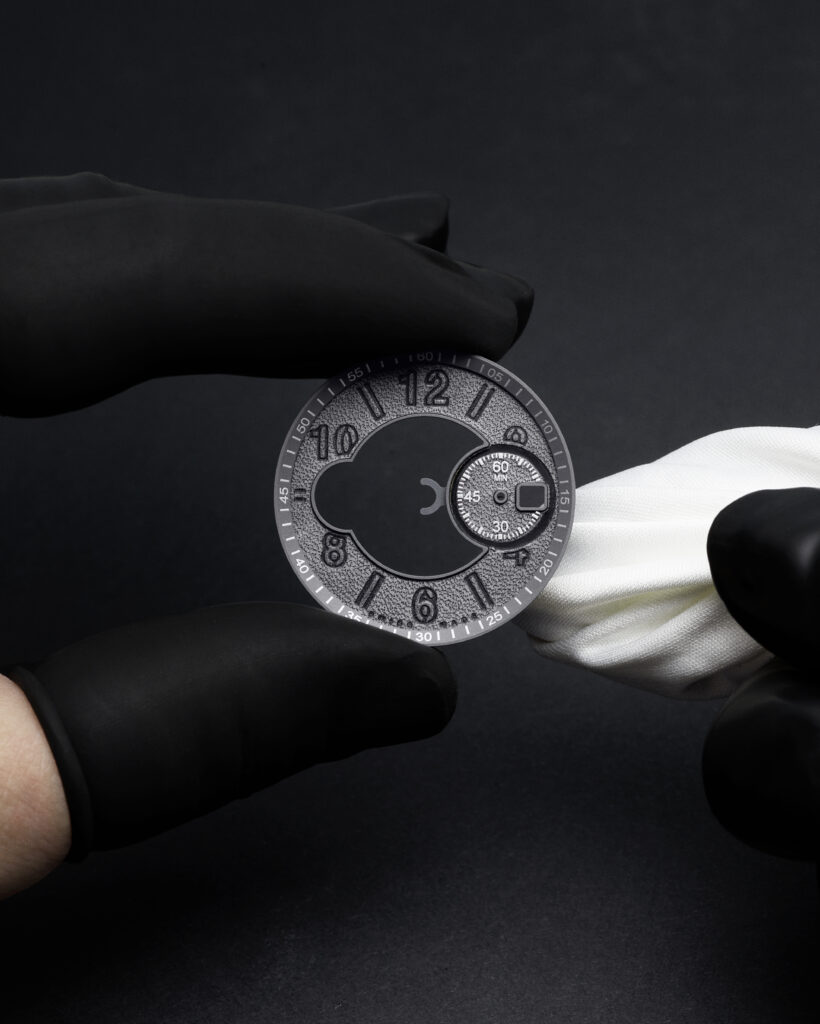 Le cuir est enserré entre deux pièces de verre saphir, dont la découpe laisse apparaitre l’engrenage du mouvement Unico, une vraie prouesse technique. En collaboration avec Berluti, une technique d’encapsulage des teintes naturelles du cuir a été développée, afin de cristalliser dans le temps ces dernières ; une façon de restituer la beauté d’une manière authentique et immuable. Le bracelet symbolise quant à lui la fusion parfaite des deux univers et disponible en deux versions. Une avec le bracelet en cuir Venezia patiné Aluminio et une seconde avec le bracelet en cuir Venezia patiné Aluminio et motif Scritto en exclusivité pour le Japon.