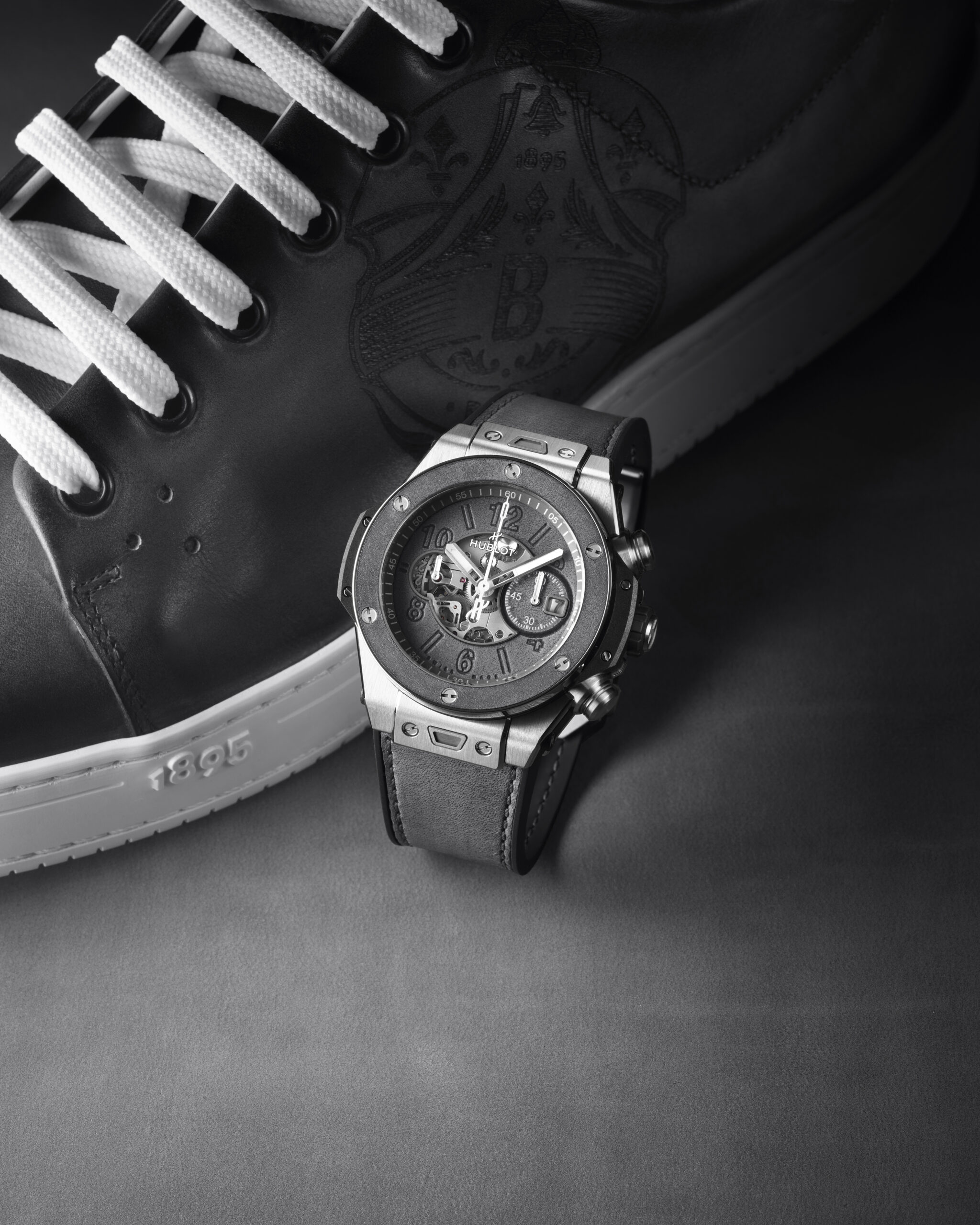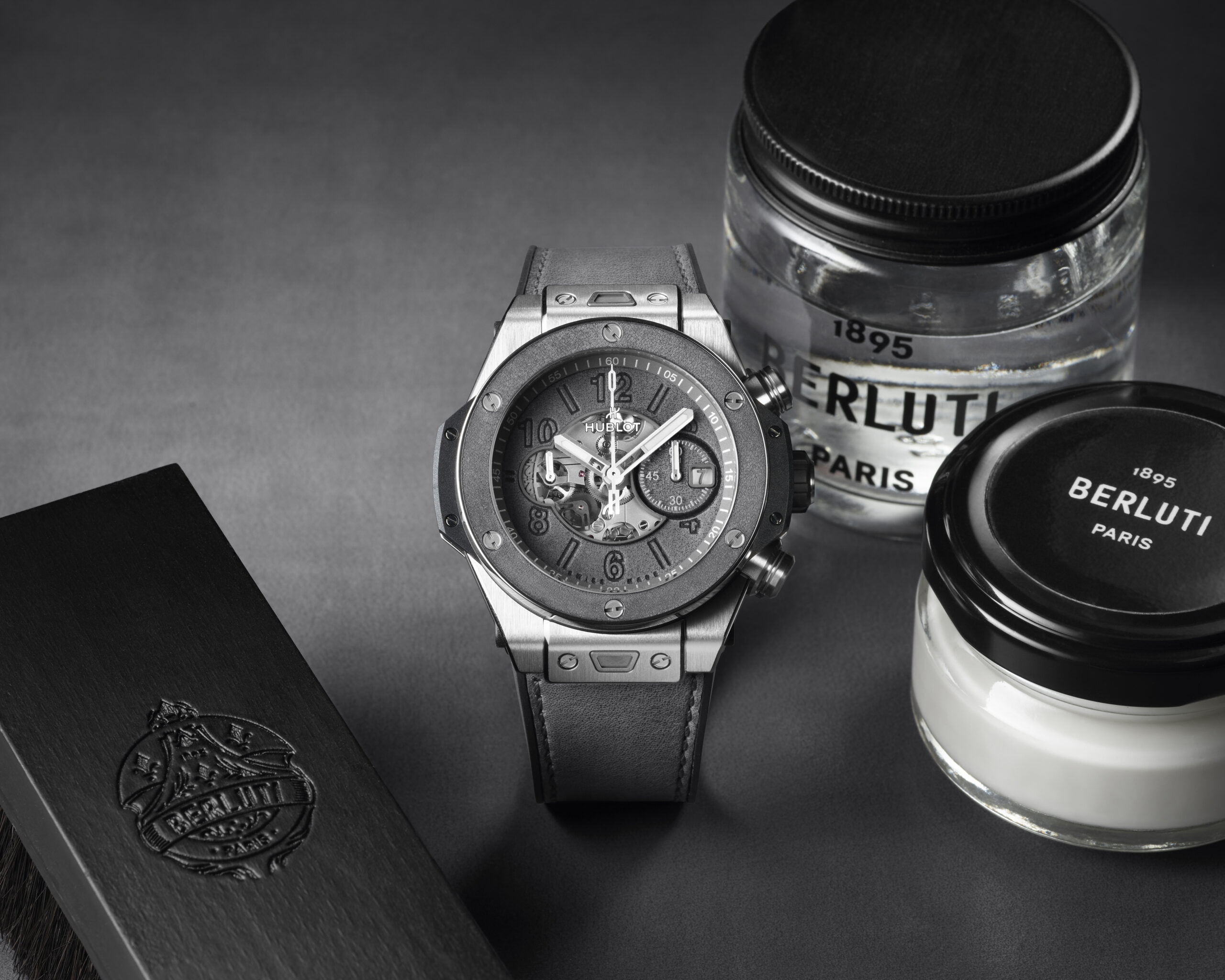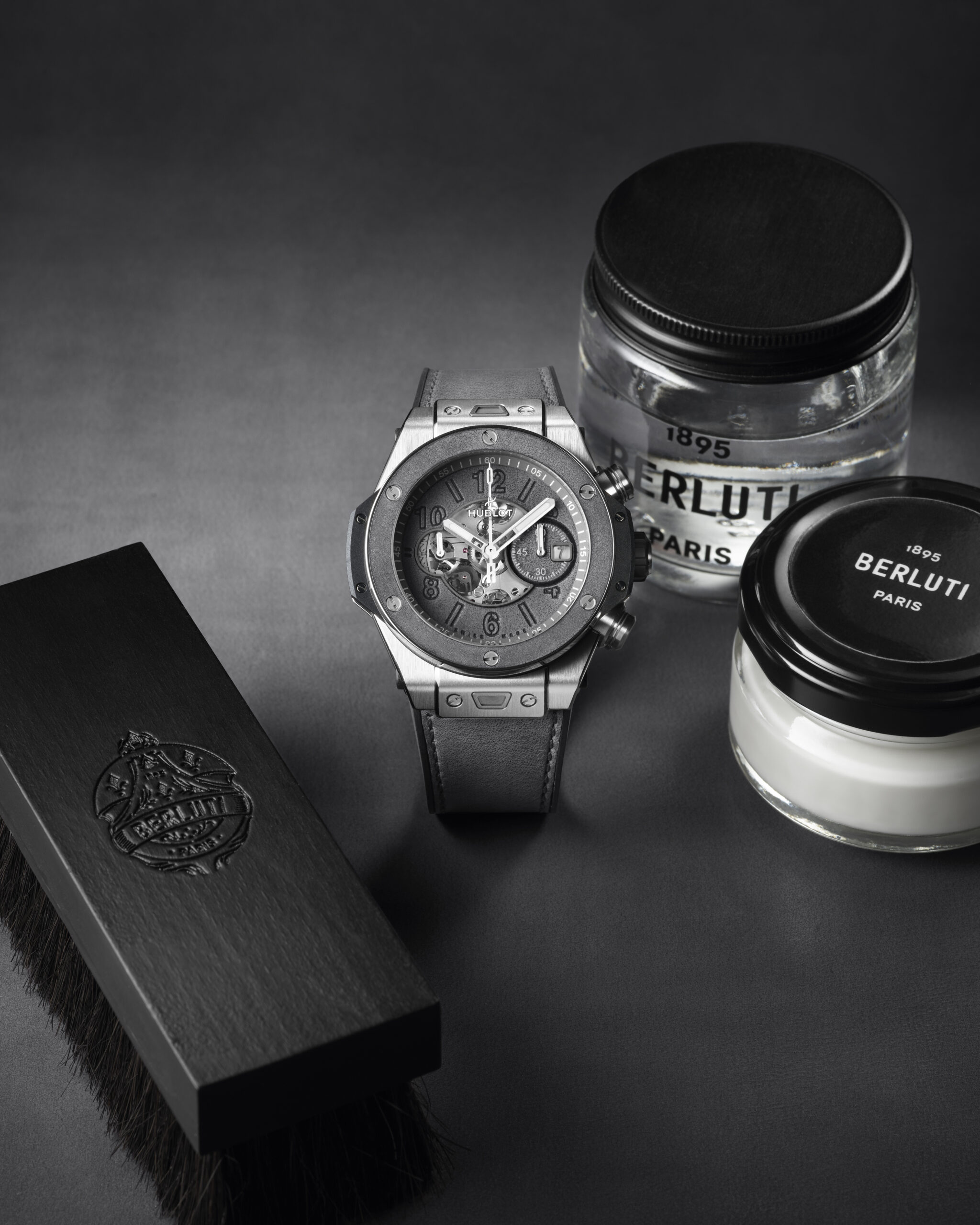 Hublot et Berluti, 5 ans de collaboration et une nouvelle édition limitée à 100 pièces : les deux maisons explorent les nuances de gris dans un exercice créatif unique.