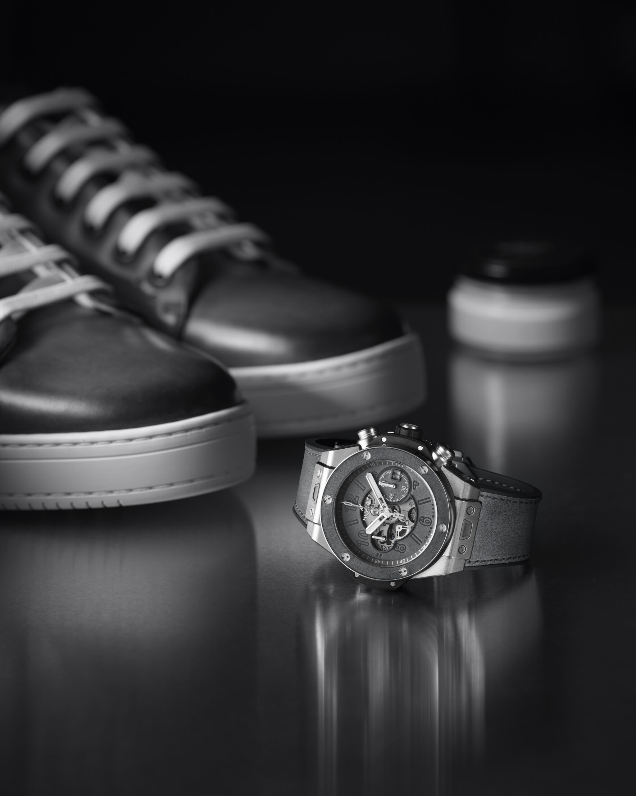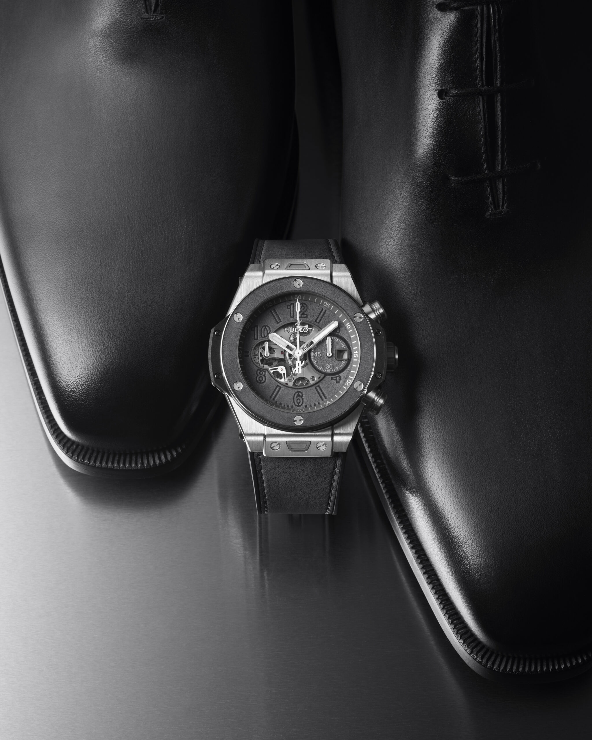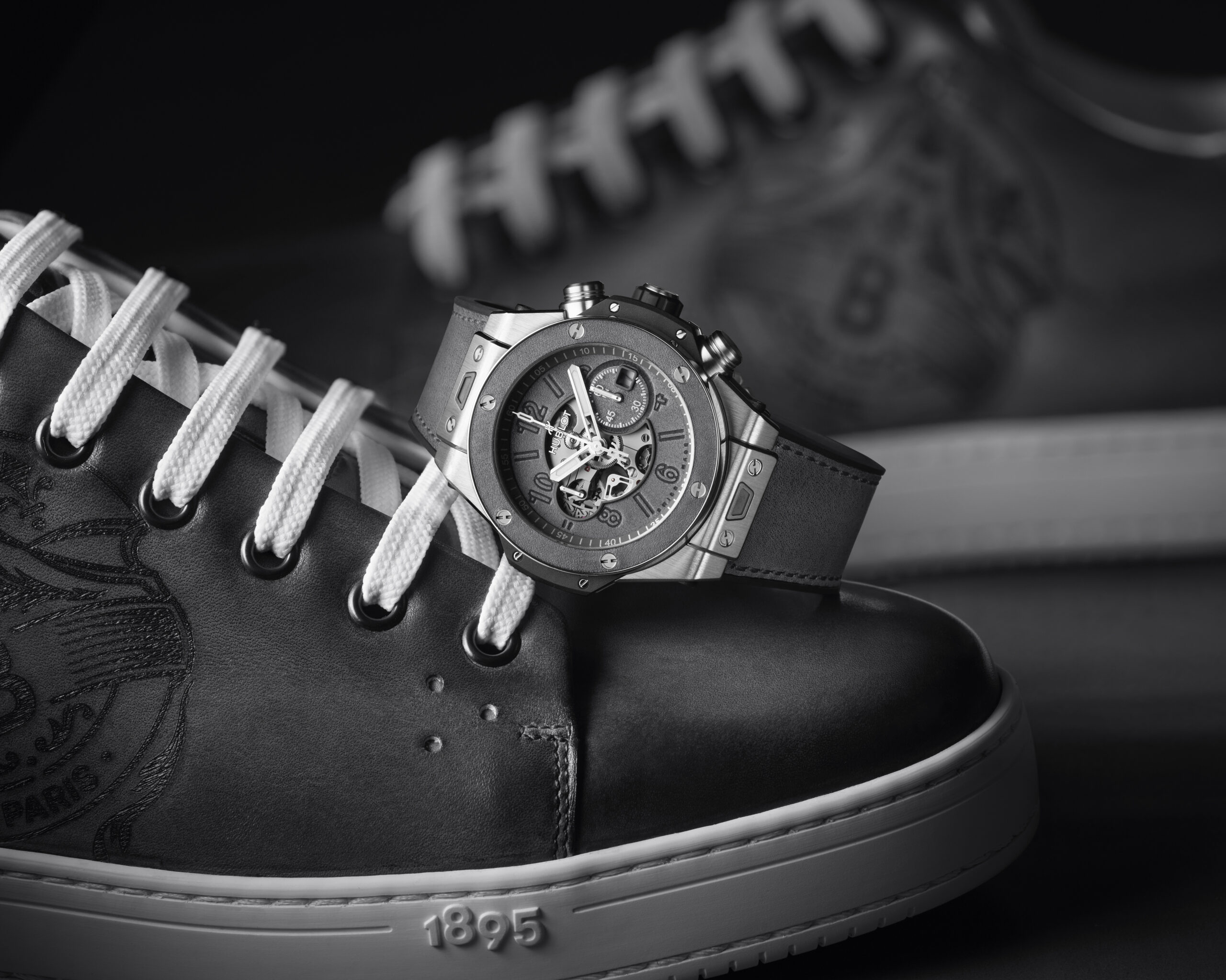 Hublot et Berluti, 5 ans de collaboration et une nouvelle édition limitée à 100 pièces : les deux maisons explorent les nuances de gris dans un exercice créatif unique.