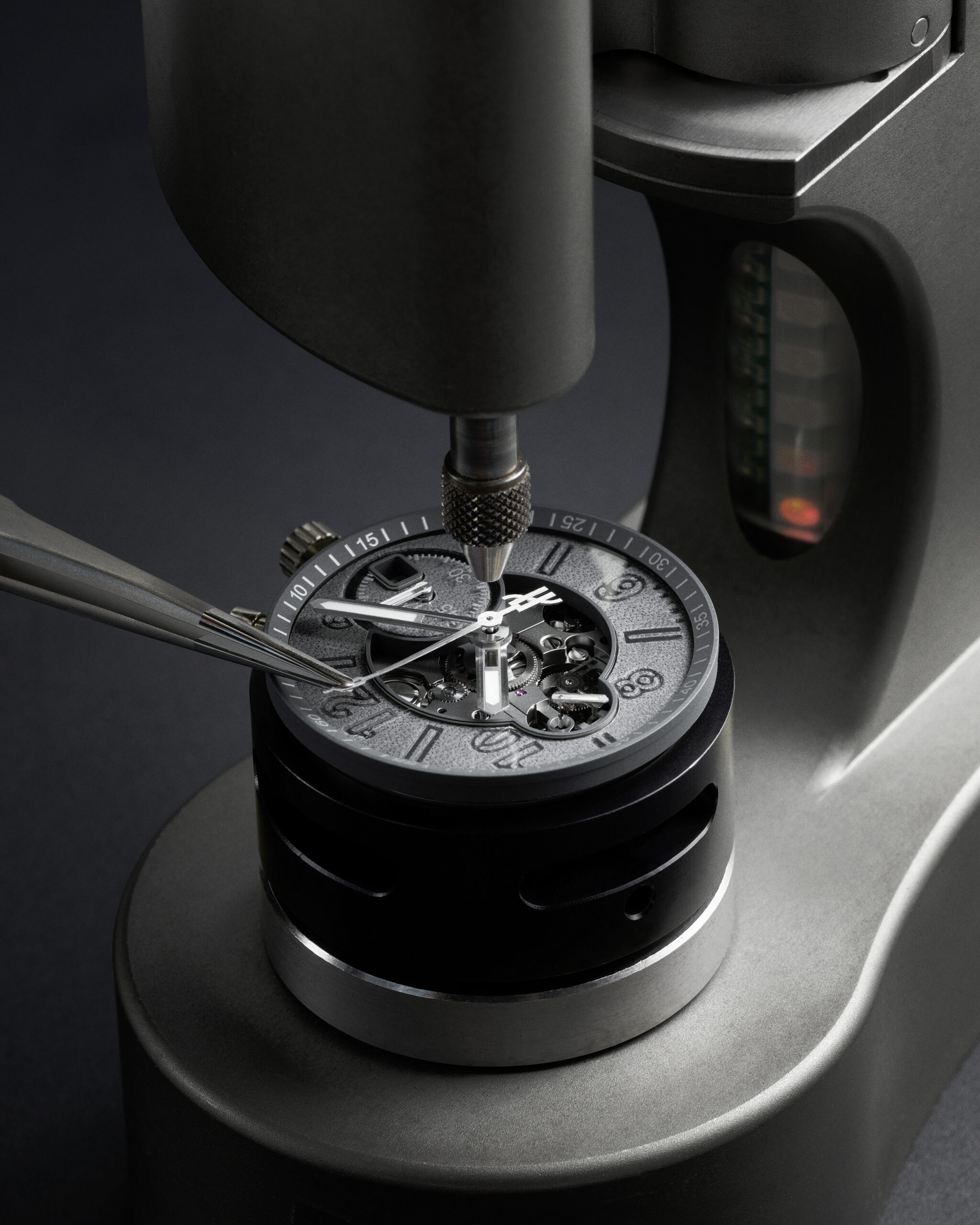 Pour harmoniser le cuir Venezia patiné Aluminio, à son ensemble mécanique, la manufacture Hublot a fait son choix dans la vaste palette de matériaux qu’elle maîtrise : titane pour la boîte de 44 mm et sa boucle déployante, résine pour la corne centrale, tungstène pour la masse oscillante, rhodium satiné pour les aiguilles. En plus de 40 ans de développements les plus innovants, Hublot maîtrise la totalité du spectre des matériaux horlogers et a ainsi pu créer une Big Bang accordée à la perfection aux nuances du cuir Berluti patiné.