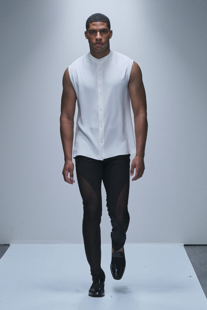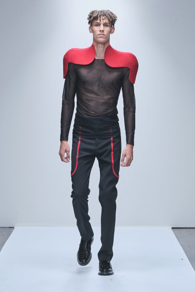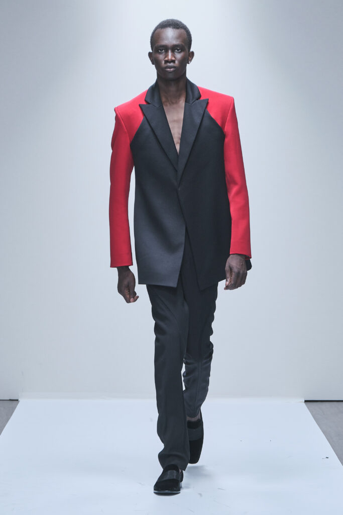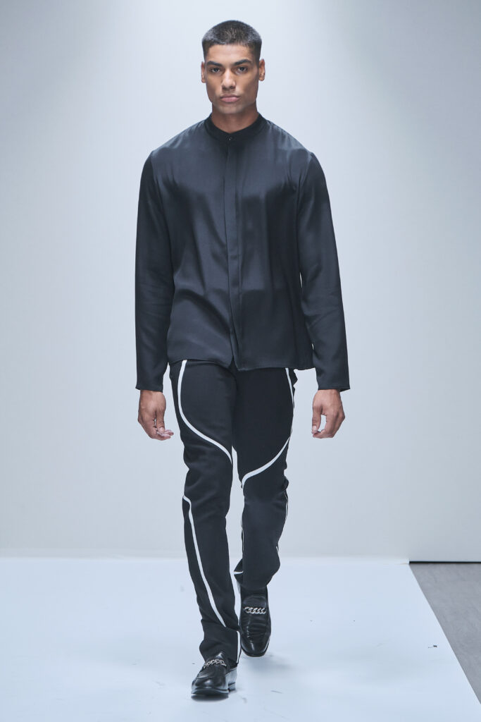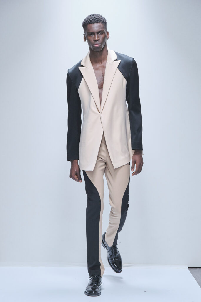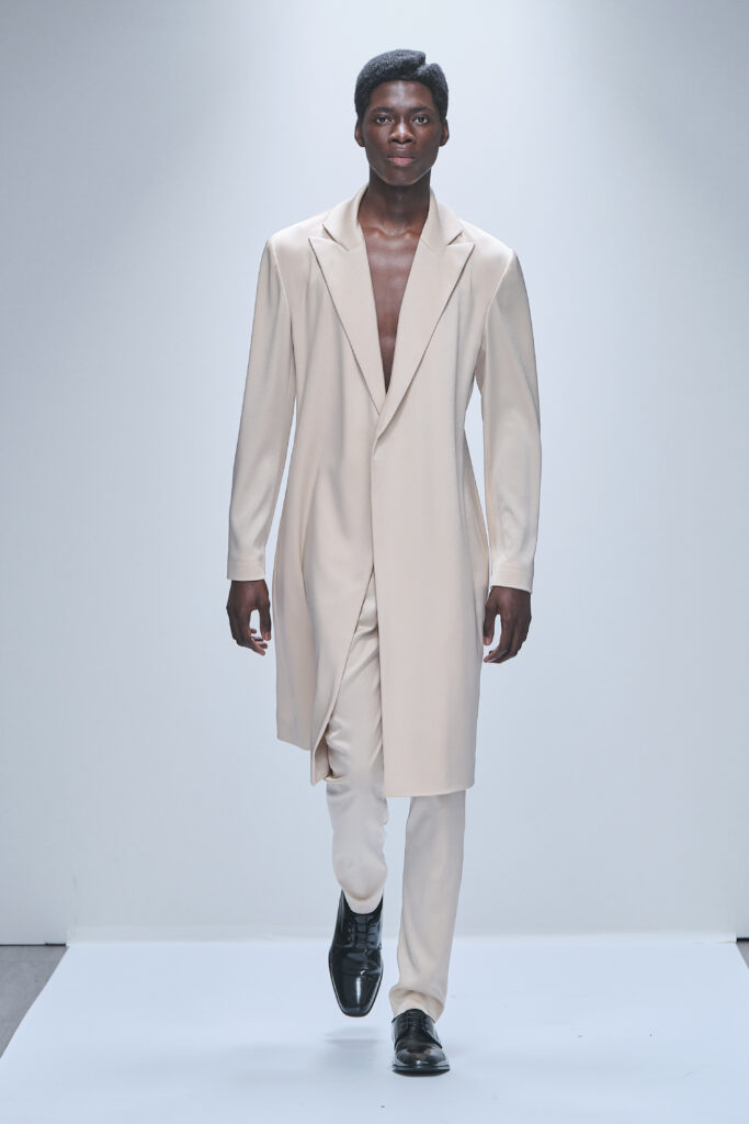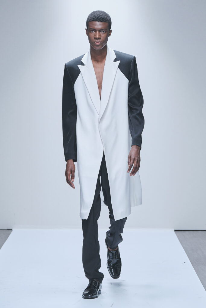 This season the collection embraces the juxtaposition of structure and fluidity and offers a gateway to a new menswear world, creating a new species all together. The collection expands to a wider range of ready-to-wear essentials and couture. Each look reveals a unique element of surprise from every angle at the core of its design. Thus, providing a whole new take on construction.