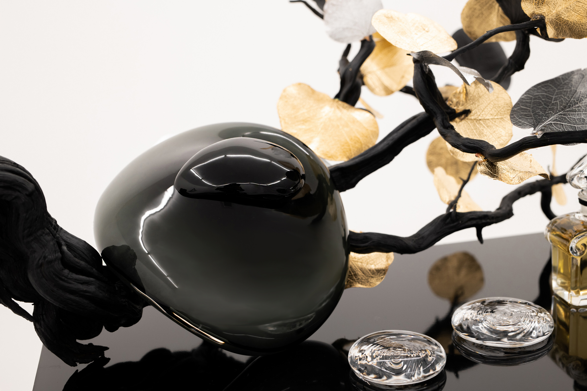 Dix-sept : un chiffre dont le choix ne doit rien au hasard, puisque Jeanne Briand le porte tatoué sur ses doigts comme un porte-bonheur. Dix-sept, aussi, parce que les nombres impairs –comme l’asymétrie– jouent un rôle majeur dans l’esthétique des jardins japonais. Le choix de Mitsouko comme source d’inspiration revêt aussi une portée symbolique singulière. C’est pour tous les parfumeurs, une icône absolue.
