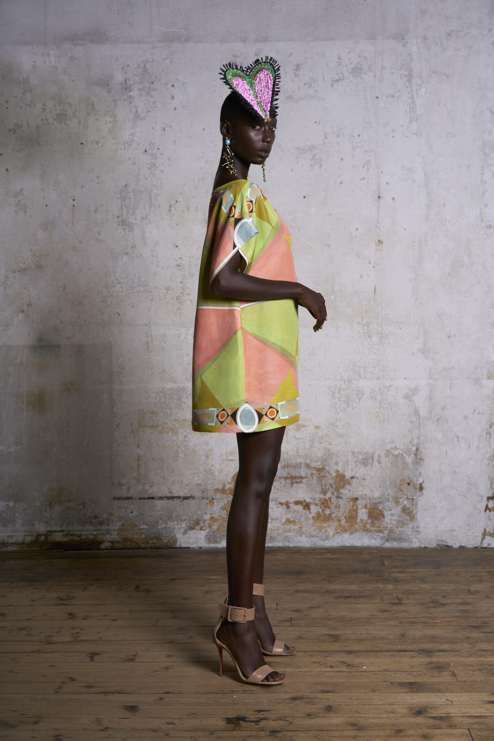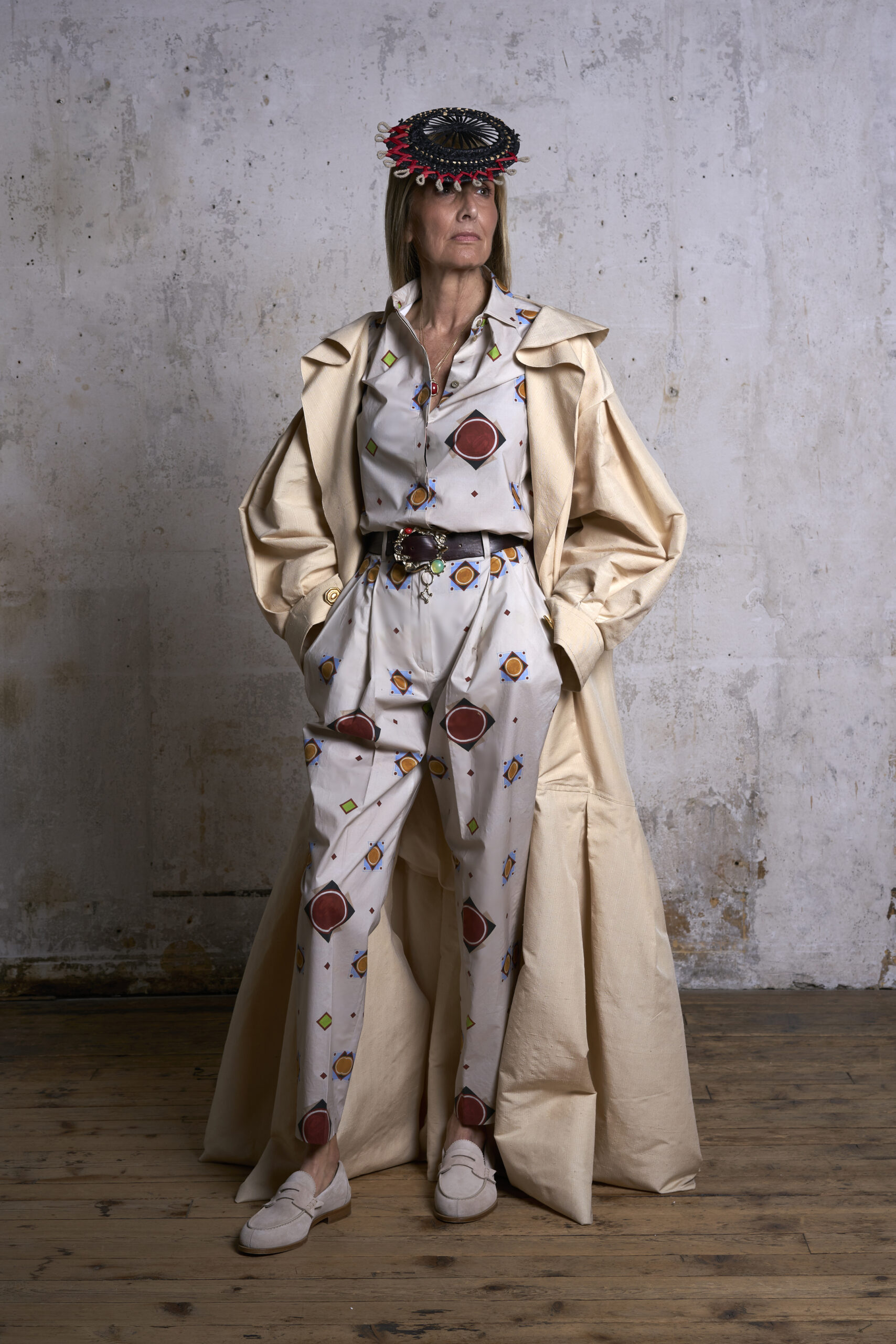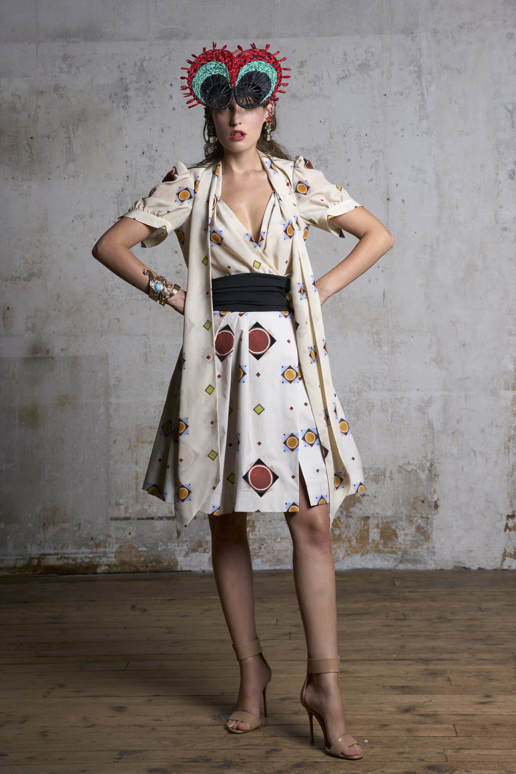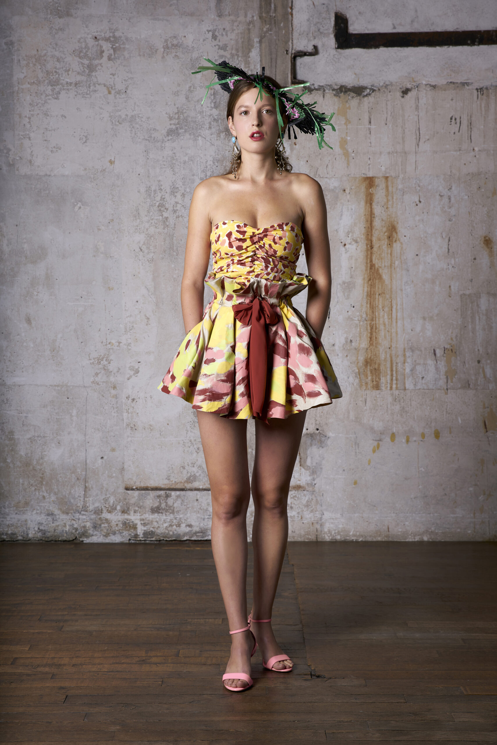 Pour présenter sa collection, Alexandre et son styliste ont perché des chapeaux en raphia faits main sur la tête des mannequins. Ou peut-être que ce sont des masques ? Pour Alexandre, ils sont un dernier clin d’œil à la culture italienne, aux grands bals dans les scènes de films classiques avec des invités fantastiquement bien habillés. « Je fais des vêtements avec des motifs personnels, joyeux et faits pour sortir et s’amuser ». C’est la fantaisie presque surnaturelle de Federico Fellini, mais avec un véritable goût pour la vie moderne.