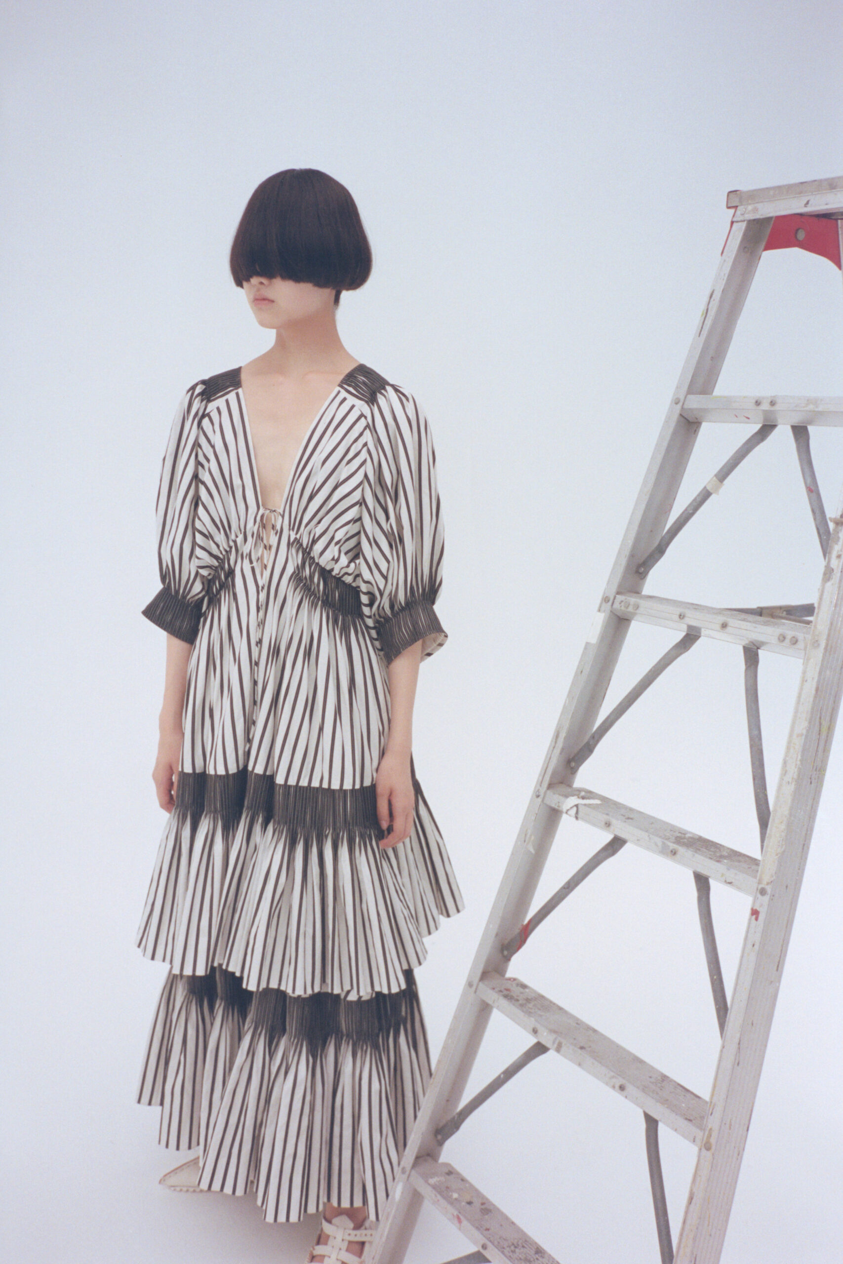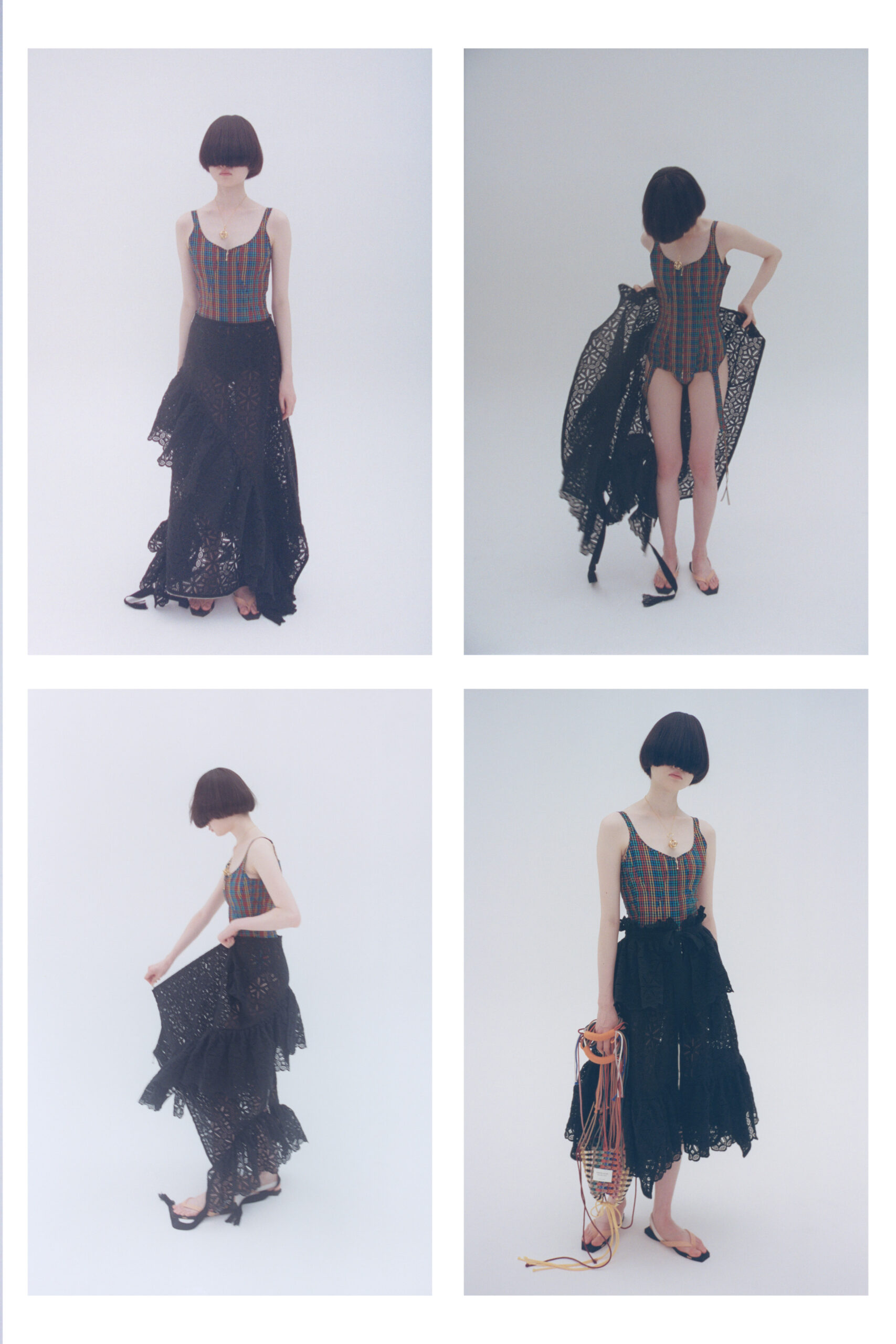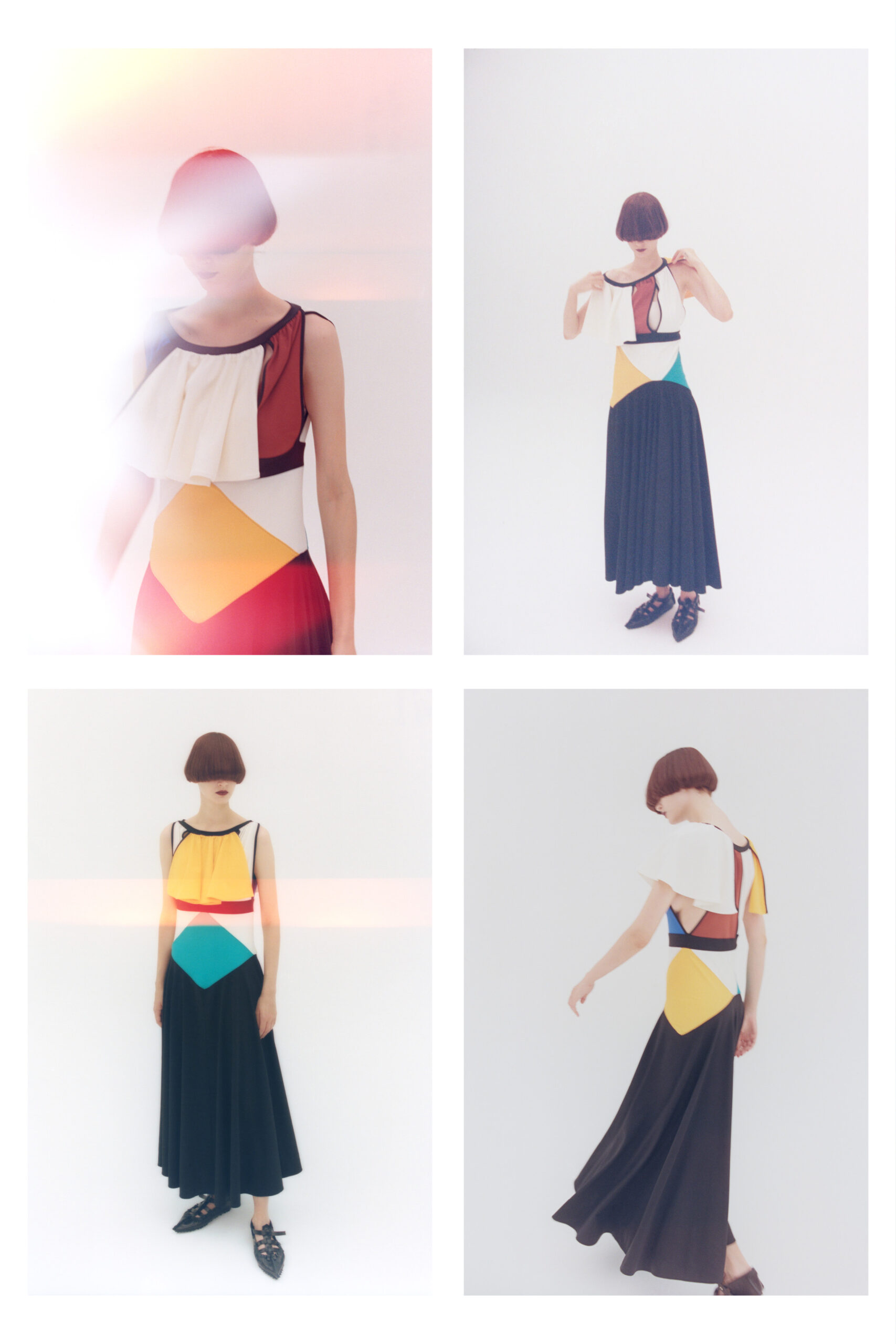 nonchalantly demonstrating the dresses’ many possibilities.