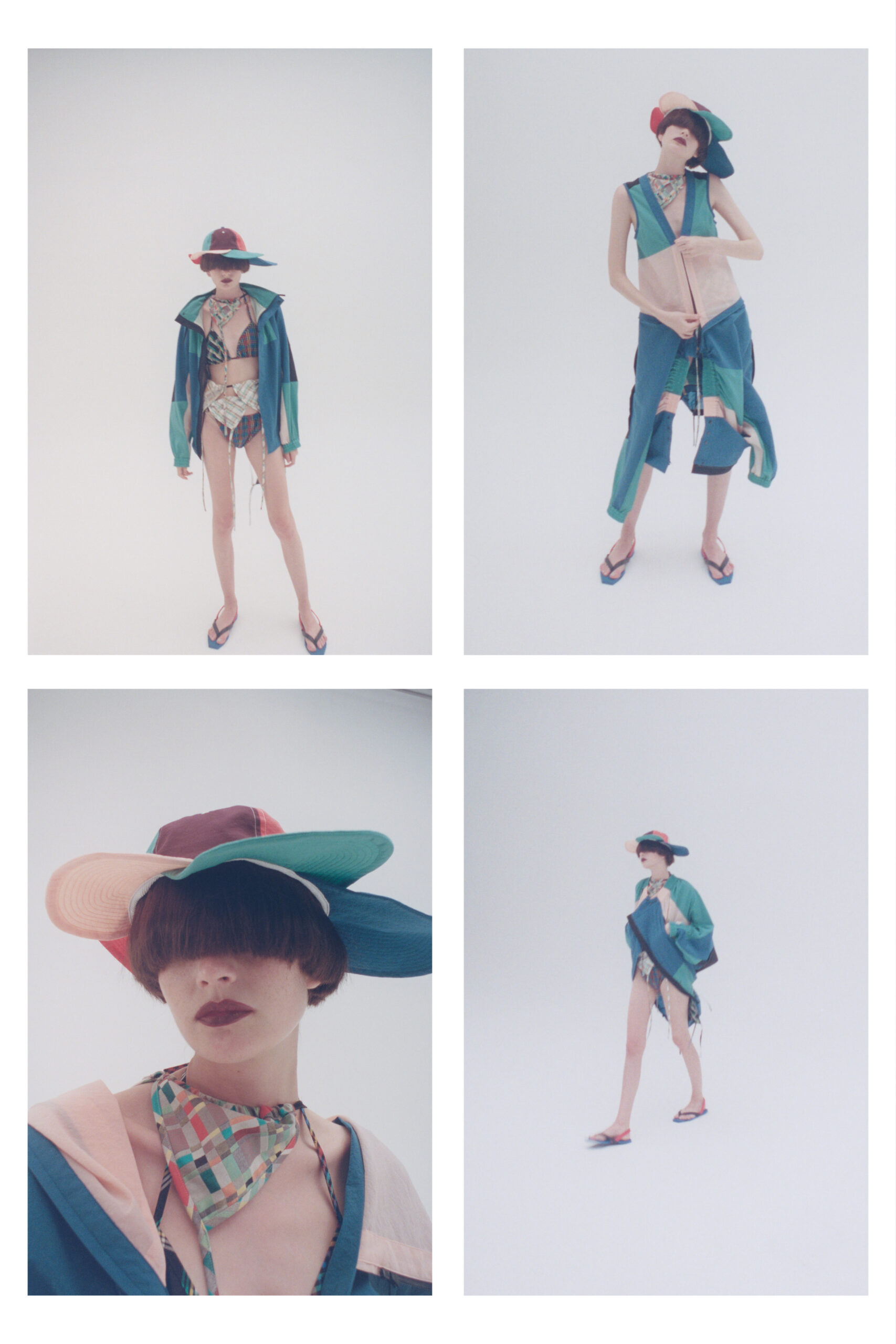 a bikini; a blouson that turns into a jumpsuit; a dancing dress.
