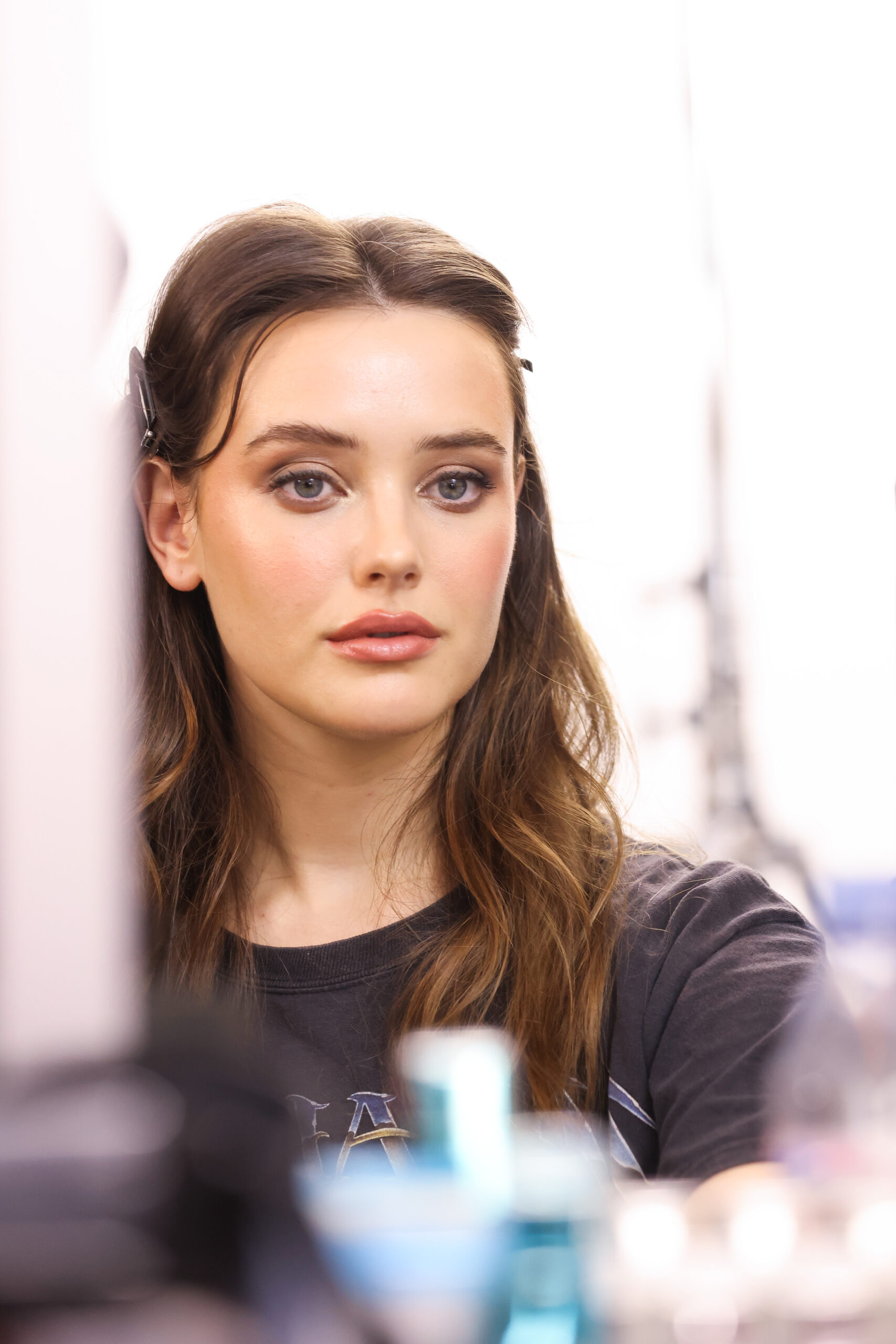 - PARIS, FRANCE – OCTOBER 03: Katherine Langford prepares backstage prior to ‘Le Defile L’Oreal Paris 2021″ as part of Paris Fashion Week on October 03, 2021 in Paris, France. (Photo by Vittorio Zunino Celotto/Getty Images For L’Oreal)