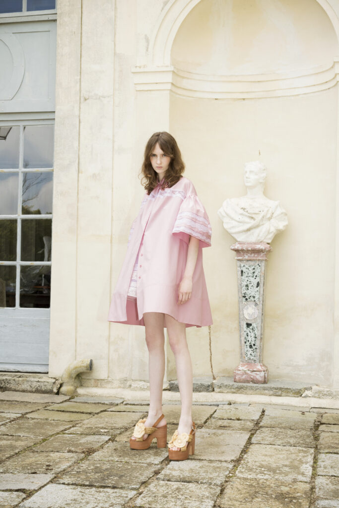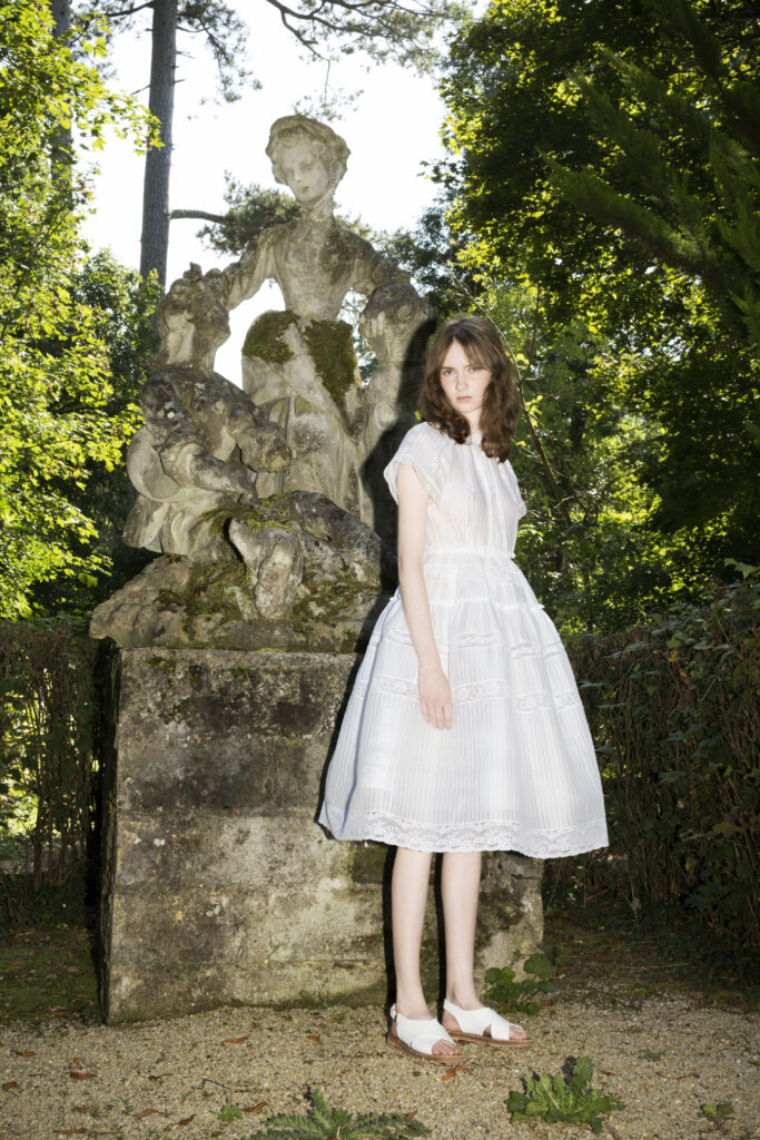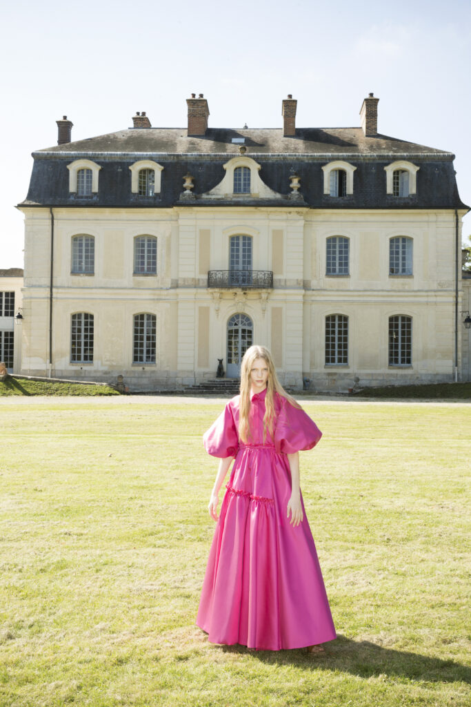 Pour le film de sa collection Printemps Eté’22, Dice Kayek fait équipe avec une collaboratrice de longue date, l’étonnante réalisatrice Marie Schuller. Cette nouvelle incarnation de sa filmographie plurielle puise dans le registre du fantastique. Cette collection lumineuse est mise en scène dans le vaste domaine d’un château du 18ème siècle – le Château d’Aunoy. Au lendemain d’un confinement mondial, cette rêverie palpitante est une ode à la liberté et à la compassion, inspirée par les merveilles du monde naturel. Cette collection effervescente reprend les codes phares de la maison, juxtaposant finitions historiques et classiques du vestiaire contemporain. Aux chemises en popeline aux contours garnis de dentelle, s’ajoutent le mikado de soie qui sculpte le tailoring avec une précision satinée. Ici et là, des crinolines vaporeuses gonflent les jupons de robes midi avec panache. Les silhouettes culminent dans un alliage romantique de détails empruntés au XVIIIe siècle et de volumes et accessoires des années 70, déclinés en imprimés psychédéliques. Sublimée par cette interprétation moderne du vêtement de cour, la femme de cette saison évoque une aristocrate bohème aux joues rosées par l’air vif de la campagne. Le film s’ouvre sur une scène d’apparence idyllique, quatre filles se promènent librement dans un château labyrinthique et son jardin anglais, savourant la beauté de sa luxuriance. Une présence menaçante semble épier leurs faits et gestes, les piégeant dans une spirale infernale dont elles ne semblent pas pouvoir s’échapper….. Dans un élan synergique, elles font face à cet ennemi sans visage, révélant les guerrières redoutables et lourdement armées qu’elles sont vraiment. Contrastant avec leurs vêtements immaculés et leurs traits angéliques, leur chasse s’avère aussi féroce et sauvage que le monstre lui-même. Un jeu de faux semblants articule ce conte fantastique, au coeur duquel résonne un message de courage et d’empathie; au moment-même où notre réalité en a le plus besoin.