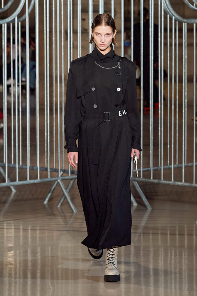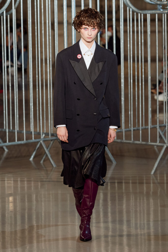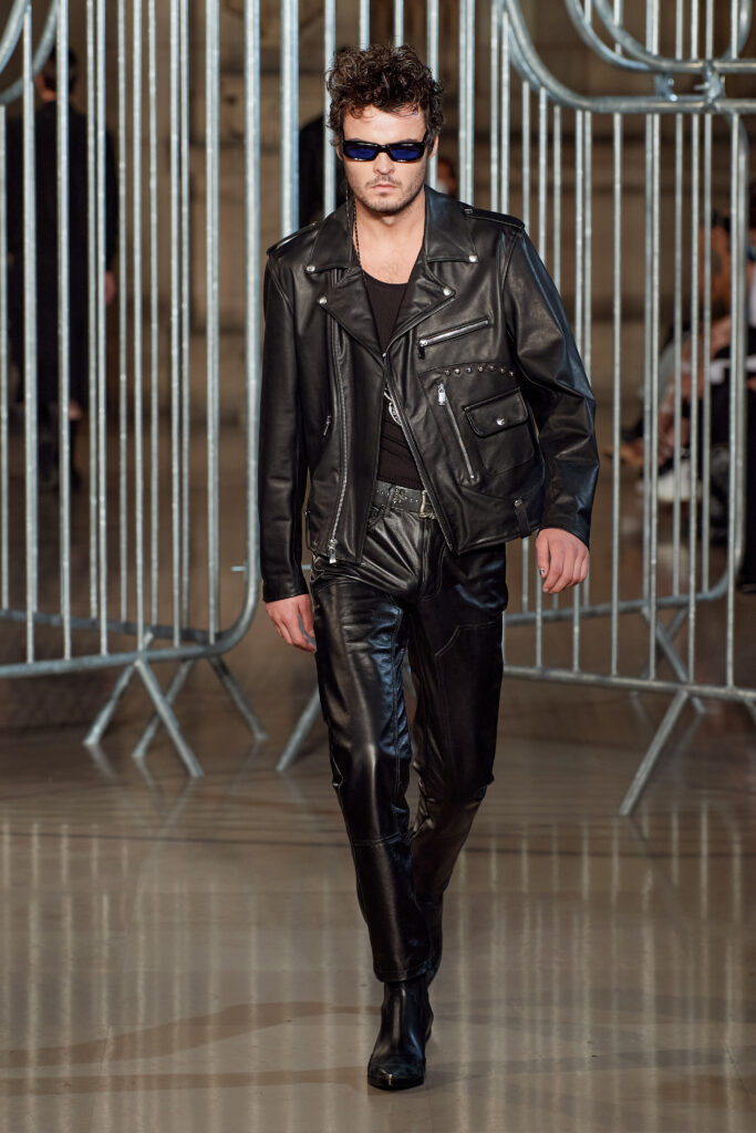 ENFANTS RICHES DÉPRIMÉS debuts its Spring/Summer 2022 collection with its sixth runway show at Paris Fashion Week at Ecole de Médecine. An emotional and dark collection; the work focuses on womenswear, leather, and eyewear, permeated by accessories. Intelligent naive gestures are constrained by elongated silhouettes. Noise is repressed by music, craft by fine art, desire clashes with conduct.