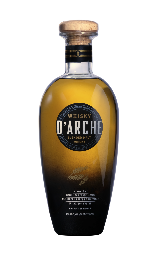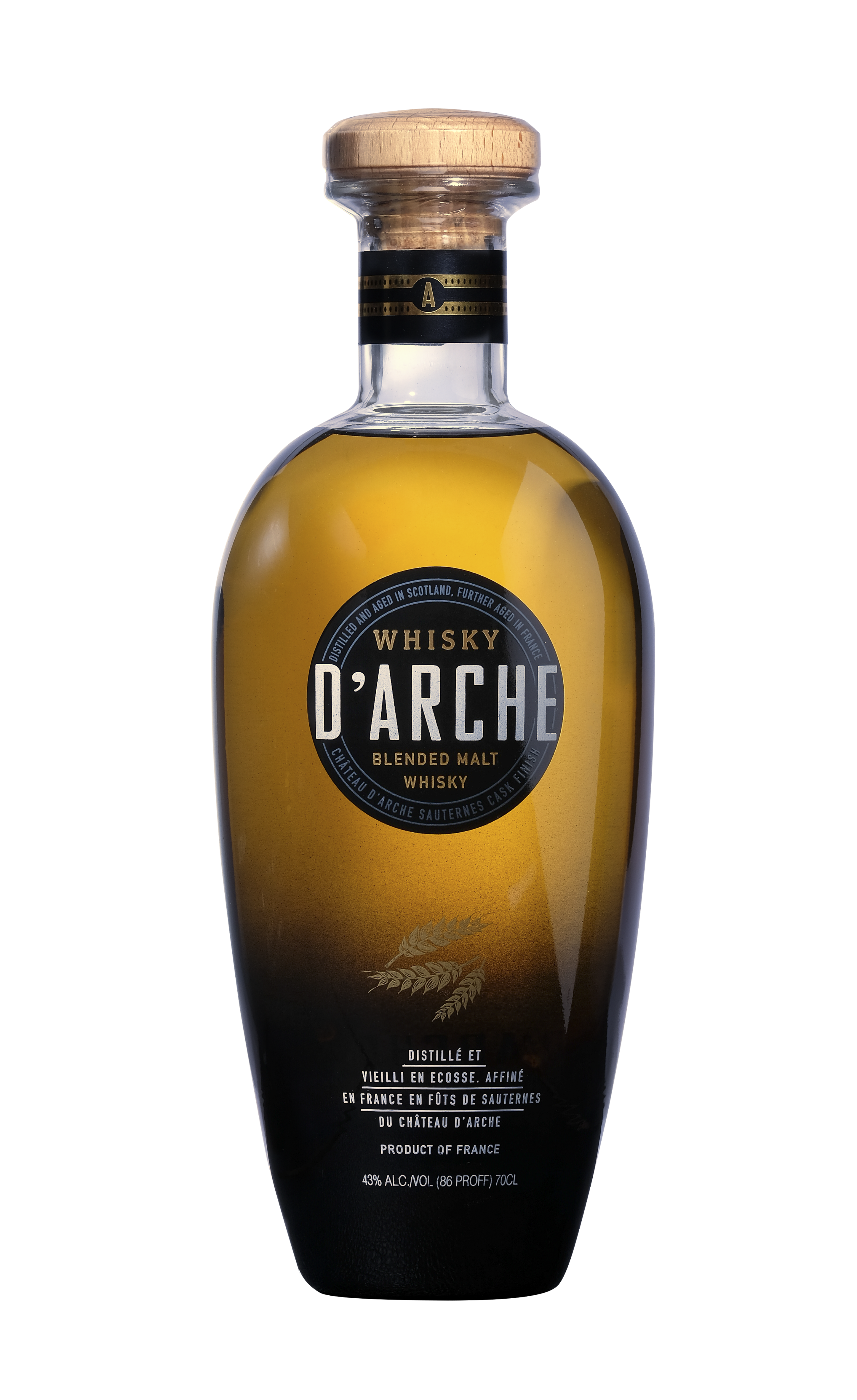 Presentado en una botella de 700 ml con forma de ánfora, como un guiño a los lejanos tiempos en que las bebidas espirituosas viajaban en recipientes similares, el Whisky d’Arche se revela en nariz con un aroma sutil, incluso patinado, de limón seco, trigo, malta, nuez moscada y miel. En boca, es sorprendentemente afrutado y perfectamente equilibrado. Del whisky, tiene el poder emblemático. Del tiempo de permanencia en barricas de Sauternes, extrae un raro dulzor que da lugar a un final de muy alta calidad, sublimado por un fino toque meloso-vainillero que es la máxima delicia.