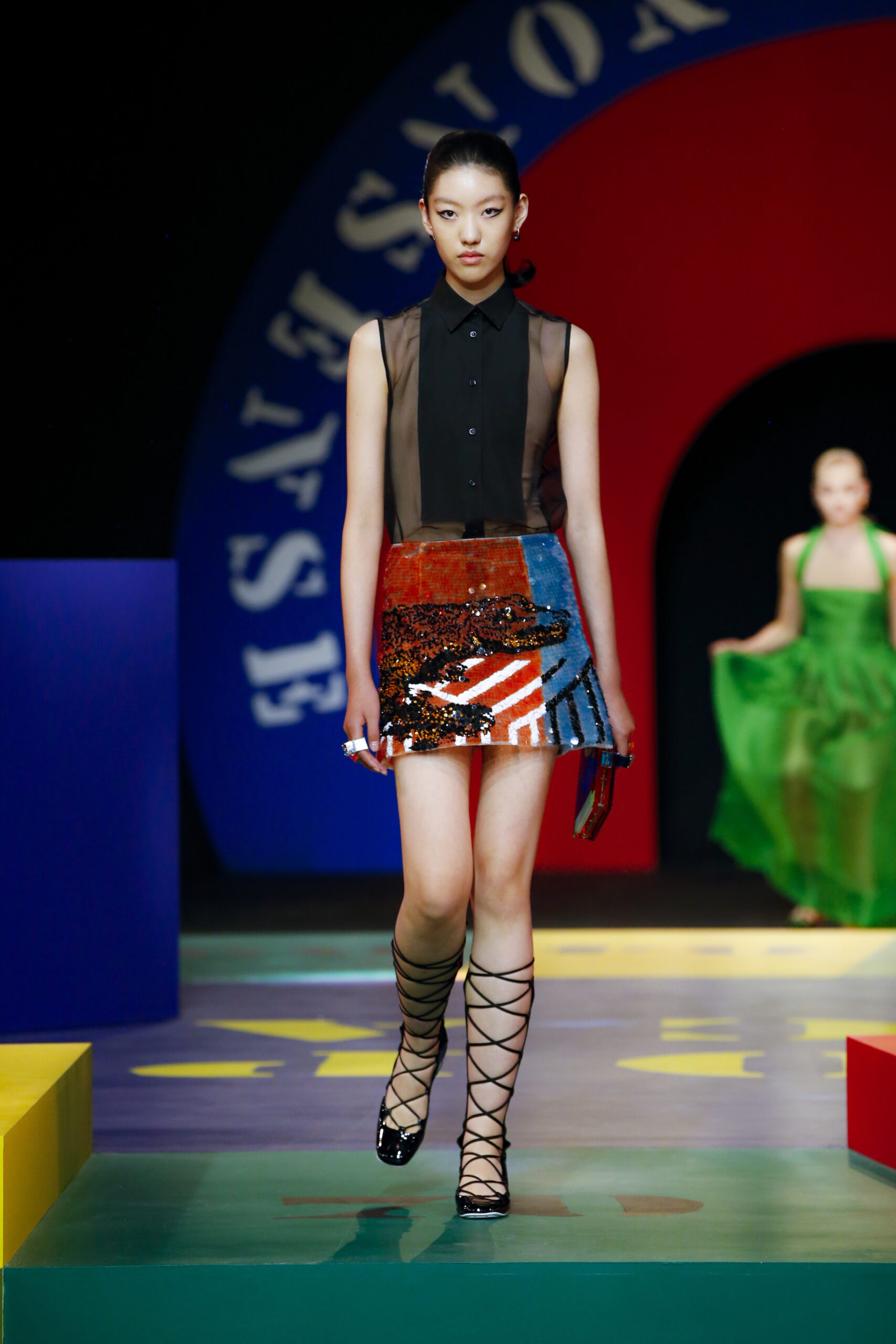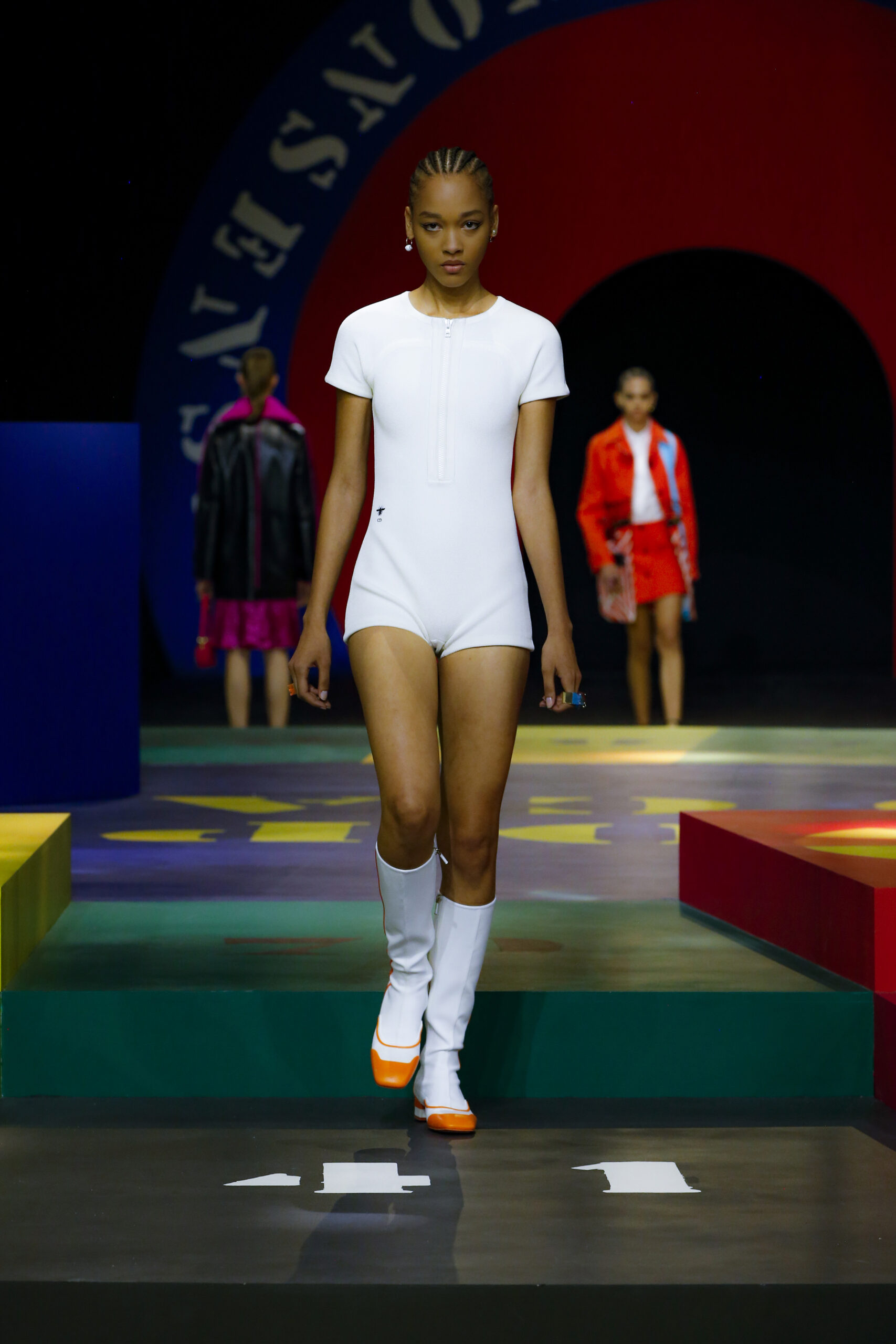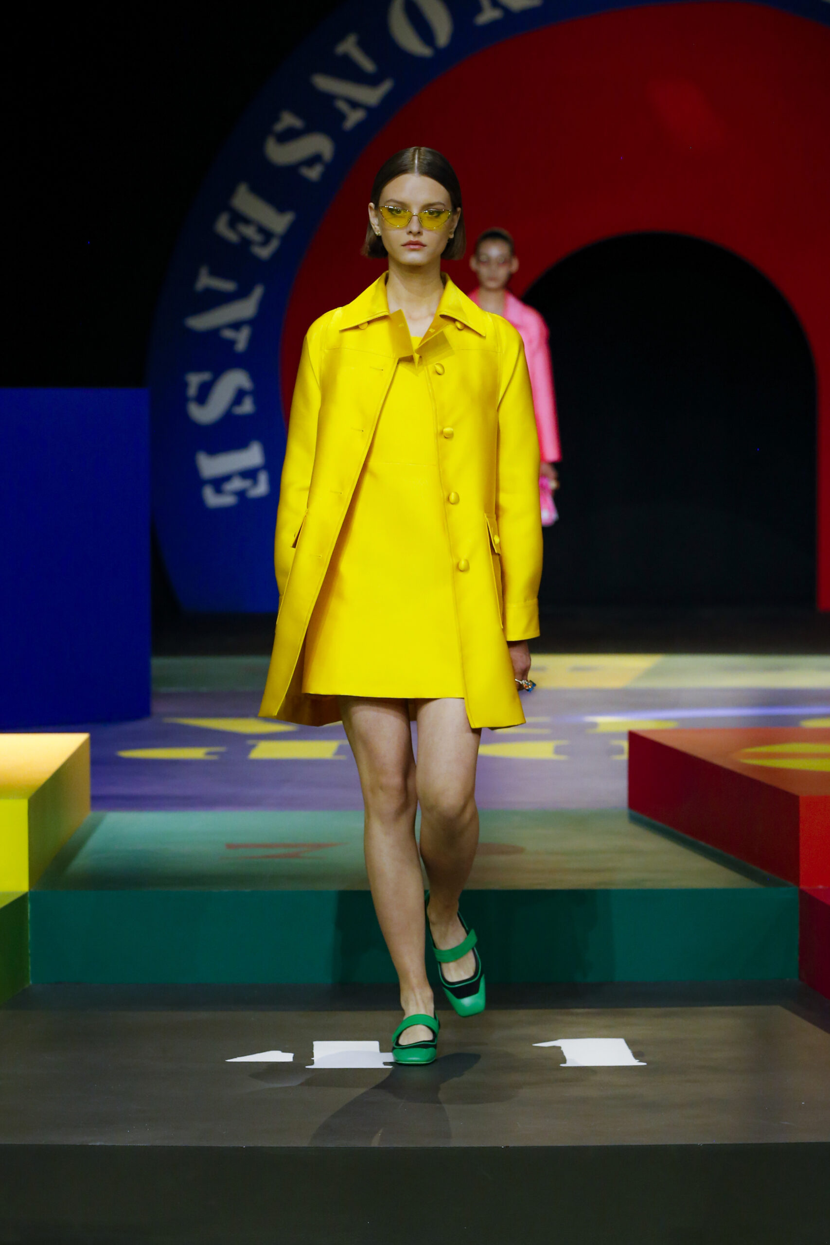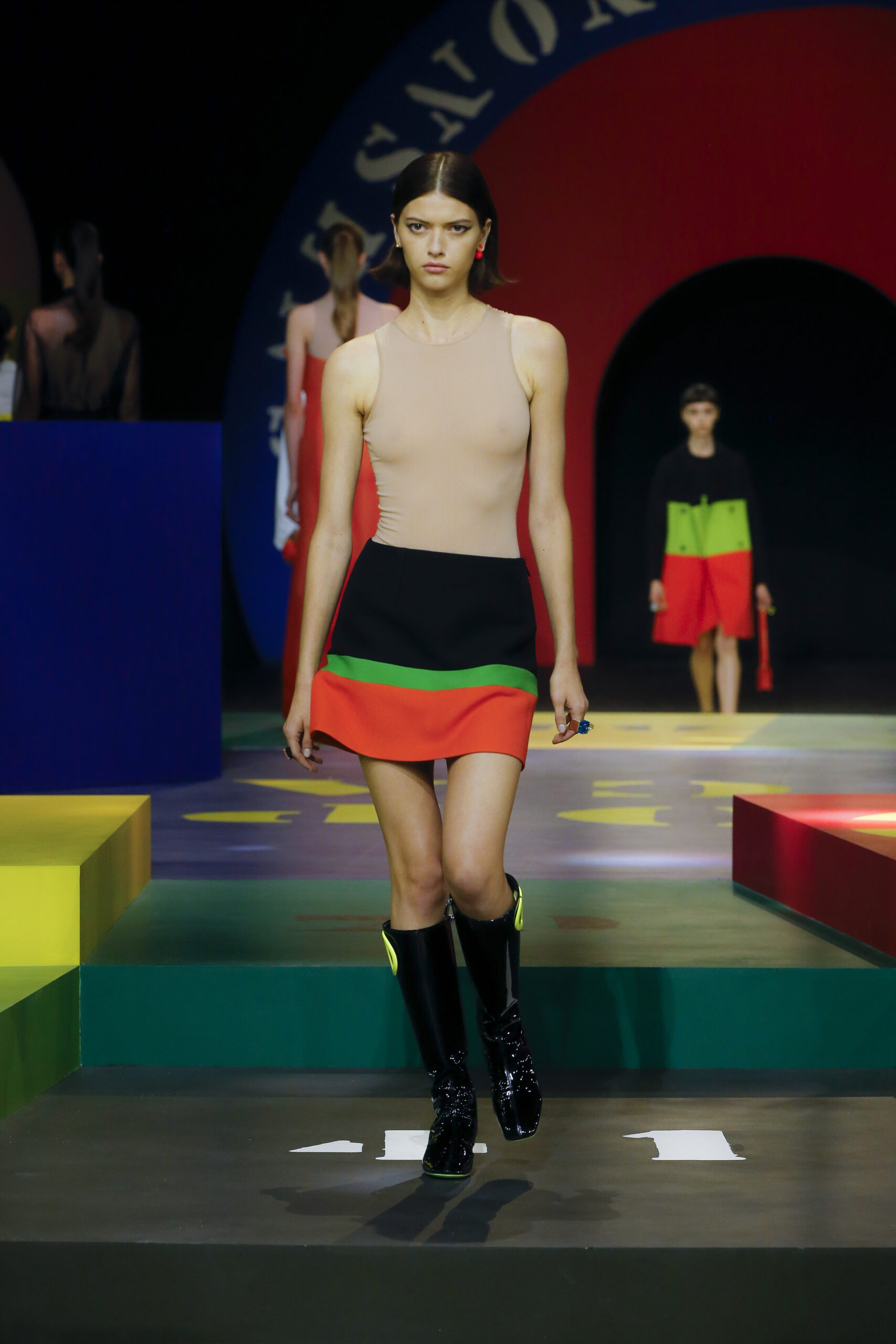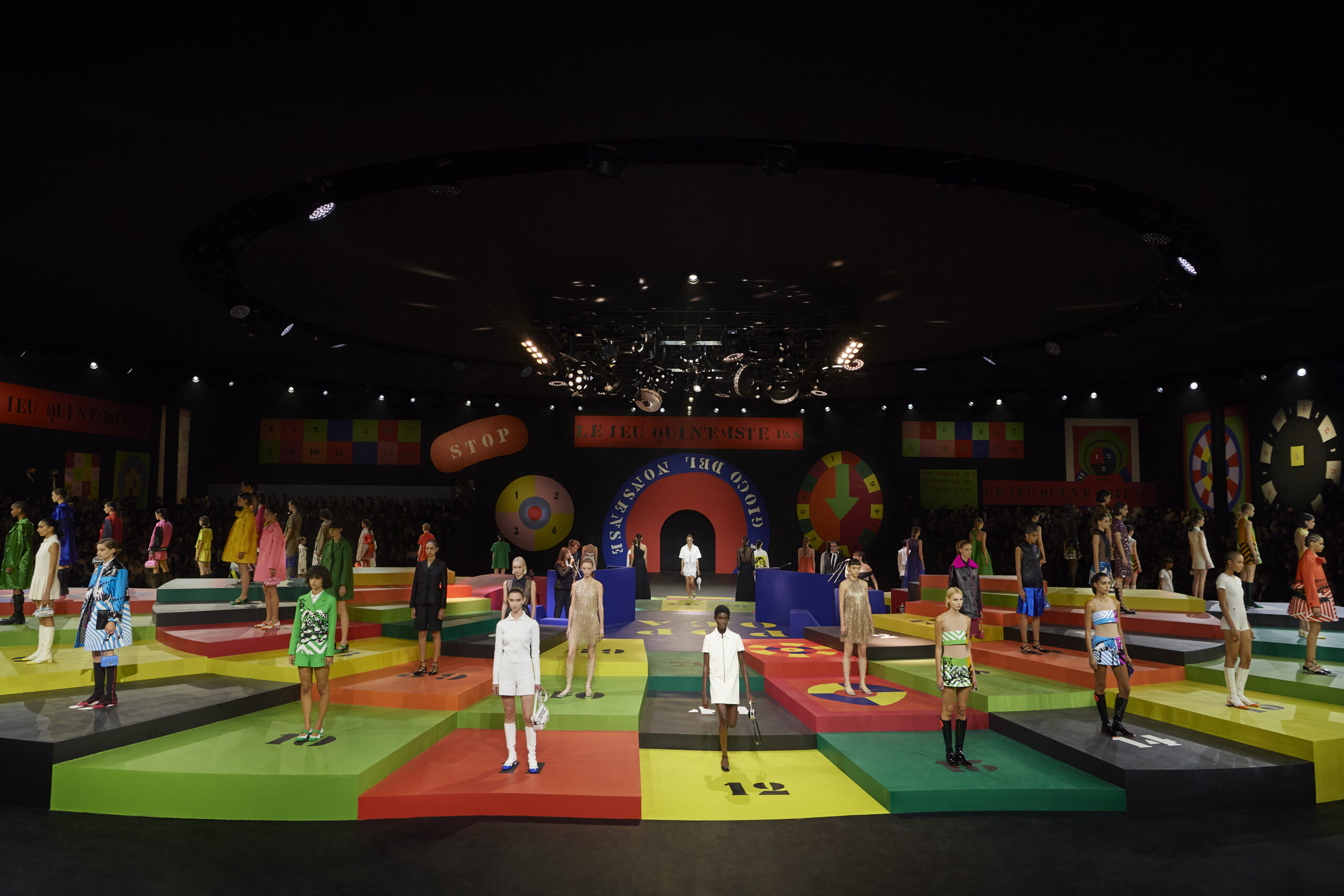 L’imaginaire de ce défilé Dior prêt-à-porter printemps-été 2022 se nourrit de curiosité, de désirs et de recherches. Maria Grazia Chiuri explore la richesse des années 1960, et plus précisément la période où Marc Bohan était le Directeur Artistique de la Maison. Elle met en lumière l’esprit visionnaire de la collection Slim Look, réalisée en 1961, à propos de laquelle la presse écrivait : « Elle change complètement la mode, tout comme le New Look l’a fait en 19471. » Les silhouettes révèlent ainsi des coupes et des effets graphiques, tels des color blocks. Les couleurs évoquent également les géométries spatiales et les jeux pensés par Anna Paparatti. Cette artiste a conçu la scénographie du show comme un « jeu de l’absurde » reflétant la philosophie de ses travaux. Les matières et les différents motifs rappellent le Piper Club, la légendaire boîte de nuit romaine, lieu de liberté unique au croisement des arts, du design et de la mode.