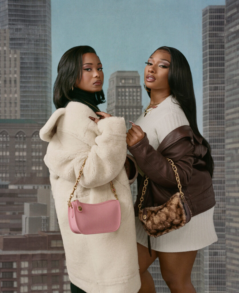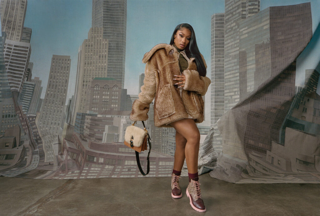 The collection includes cozy, oversized outerwear in the shape of luxe coats and beautifully worn aviator jackets—bags, heels and slides in plush shearling styles. To bring the collection to life, Coach worked with Megan Thee Stallion and her friends on a story inspired by the street style of New York City in the late 70s and early 80s.The result is a celebration of past and present with a distinctly New York spirit.