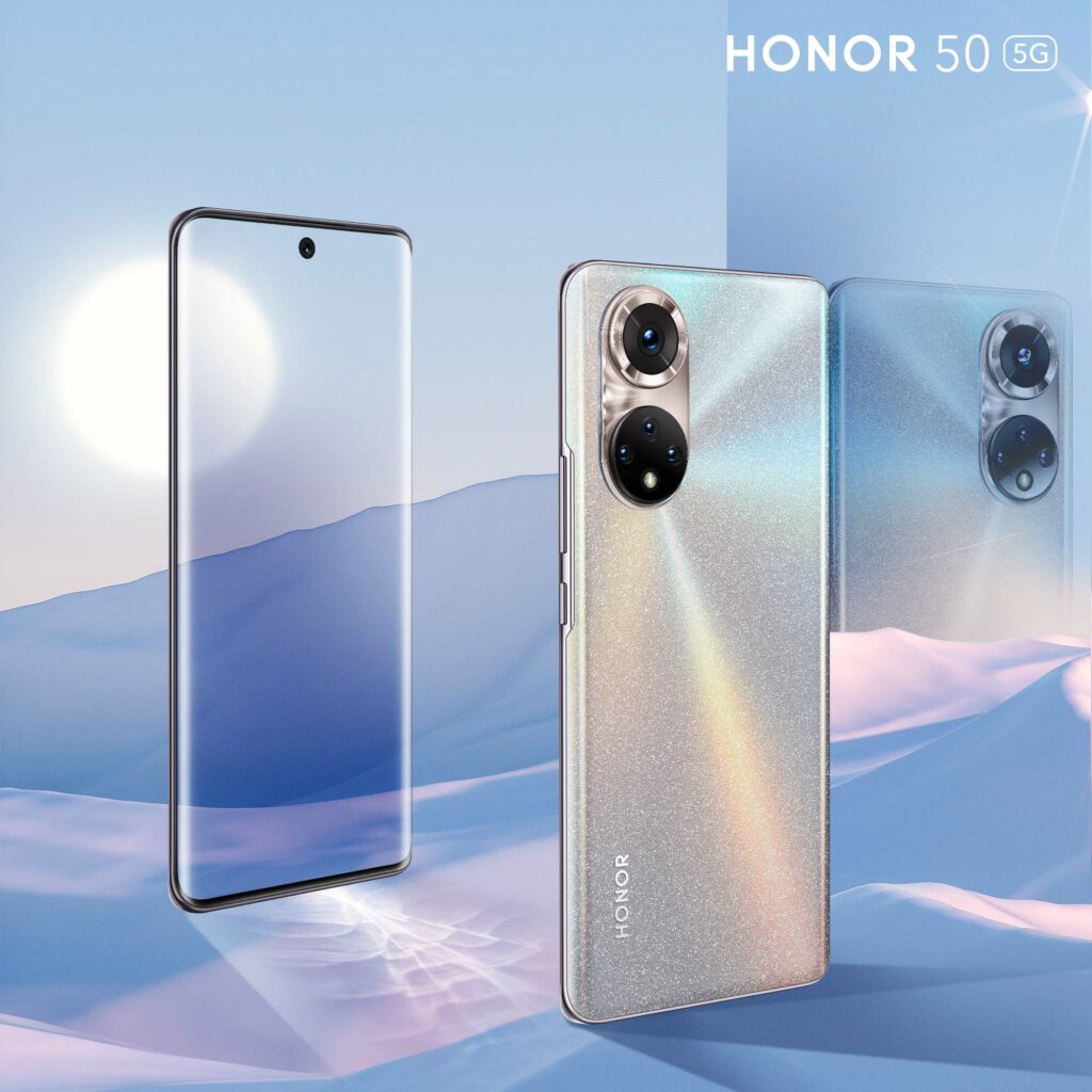 Avec sa couleur Frost Crystal, le HONOR 50 brille et scintille en fonction de la lumière, en faisant l’accessoire de mode parfait à assortir à n’importe quelle tenue.