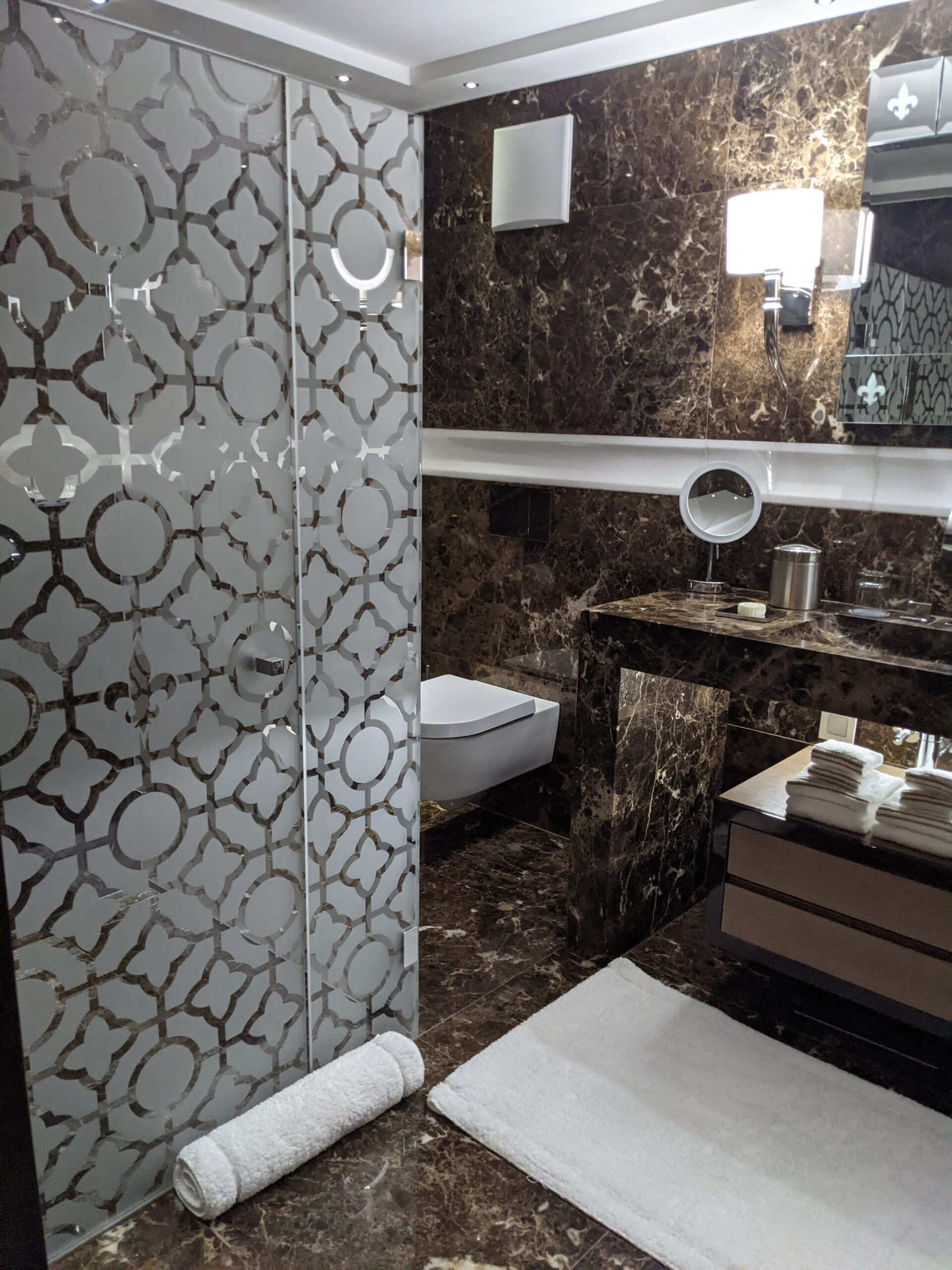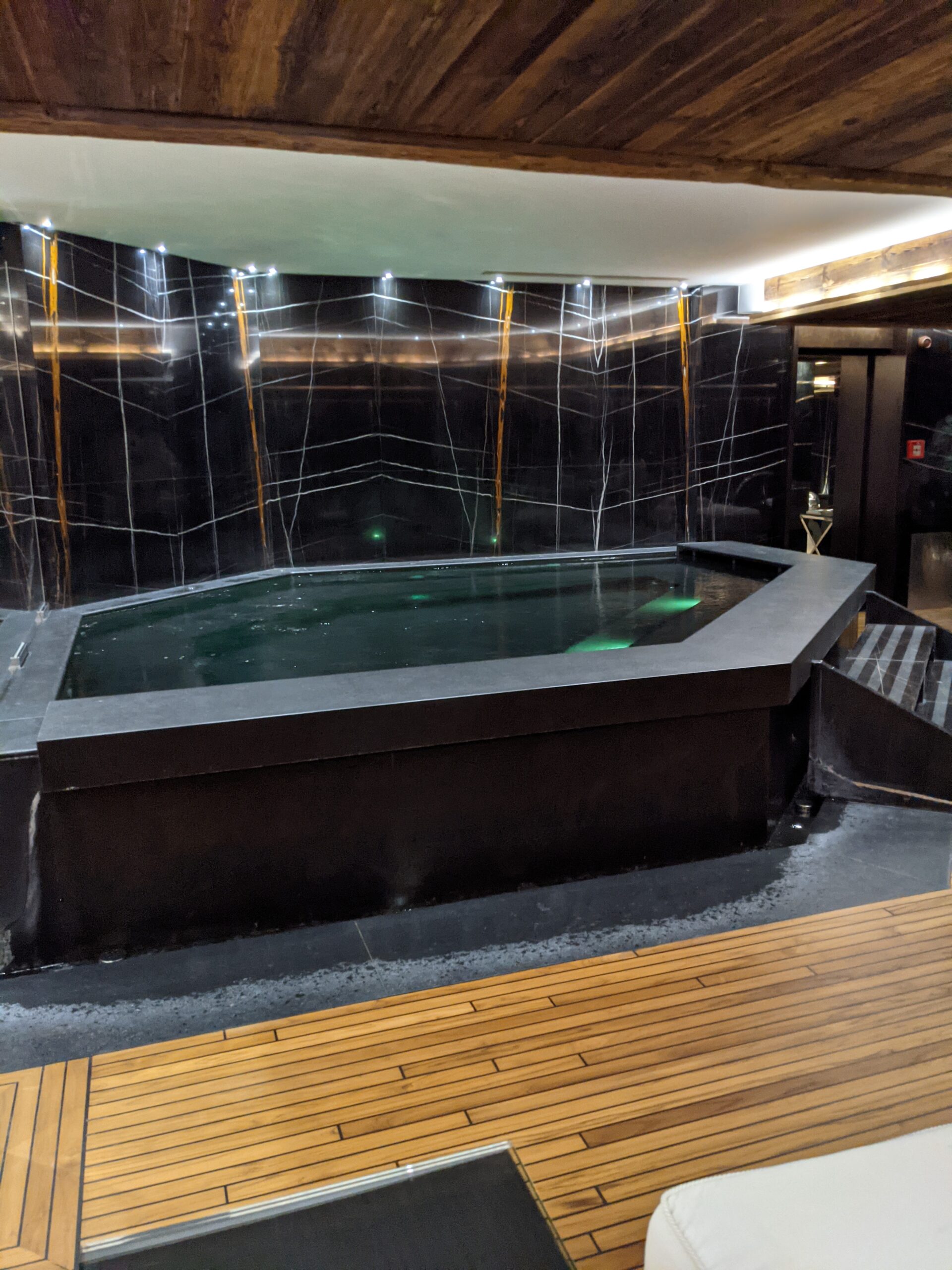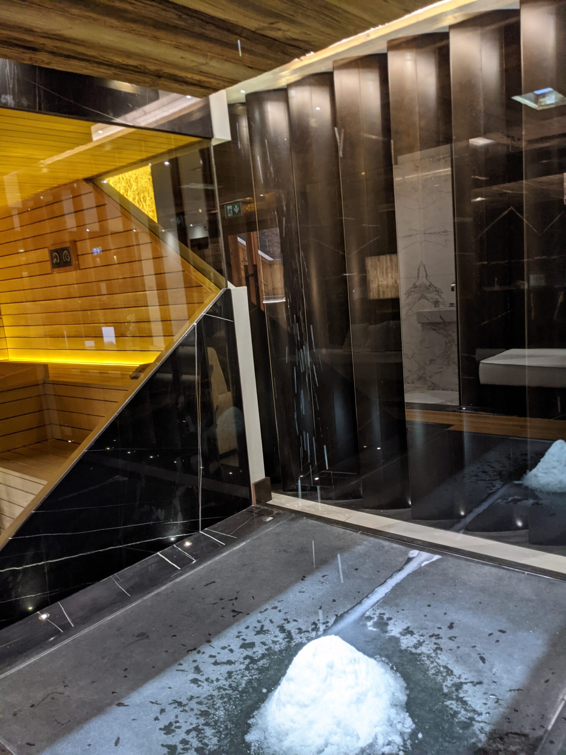 Chaque espace est magnifiquement conçu pour des soirées reposantes après une journée de ski en montagne. Pensez aux cheminées à vapeur, aux salles de bains somptueuses et au marbre sombre et tourbillonnant du sol au plafond, et aux balcons offrant une vue imprenable et incontournable sur les Alpes.
