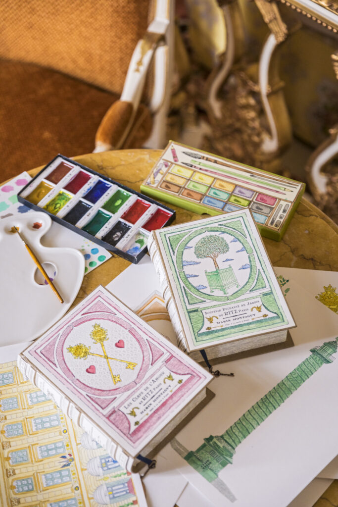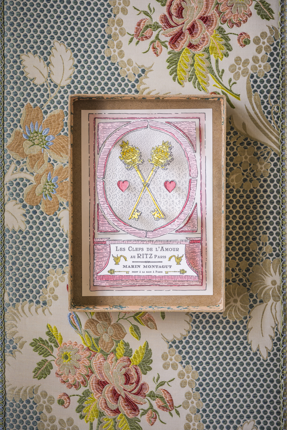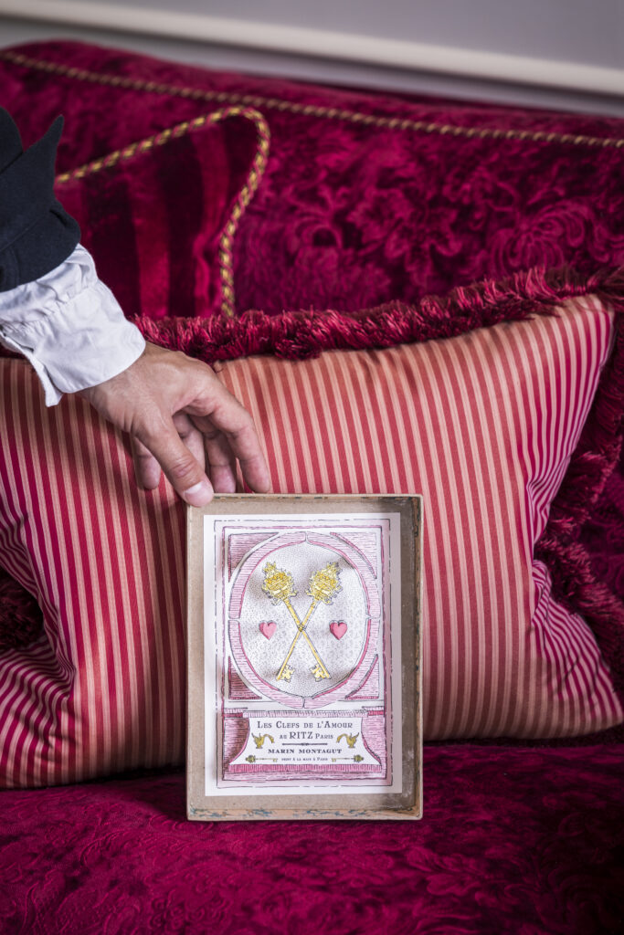 Marin Montagut a décliné ses objets fétiches en s’imprégnant de l’univers emblématique du Ritz Paris, comme sa collection de livres à secrets inspirée du 18ème siècle, entièrement réalisée à la main dans son atelier, pour y cacher les secrets de l’hôtel ou bien, comme à l’époque, des petits mots d’amour…