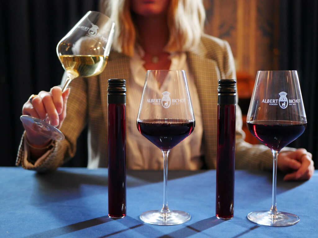 Les vins sont présentés dans des tubes en verre et un bel écrin pour transporter les amateurs au cœur de la Bourgogne et leur faire vivre l’aventure de ce domaine historique.