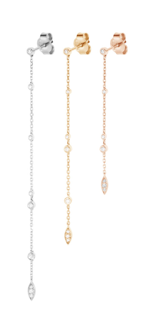 Idéale de jour comme de nuit, cette nouvelle collection réalisée main dans la main avec Carla Ginola se démarque par son côté bohème et délicat. On la porte aussi bien en accumulation pour un style affirmé que seule pour un look plus casual. Composée de boucles d’oreilles aux tailles variées, de earcuffs ou encore de bagues, la collection est proposée en or jaune, rose et blanc pour s’adapter à tous les styles.Le point commun de chacune de ces pièces : les pampilles. Marquant la signature de cette collection, ces dernières apportent du mouvement et une réelle élégance au porter.