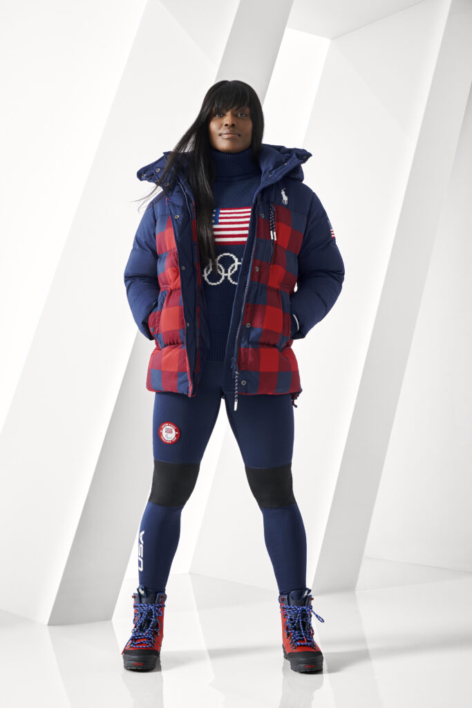 Lors de la cérémonie de clôture, l’équipe des États-Unis portera une doudoune à carreaux avec capuche en polyester recyclé et duvet recyclé, un pantalon en polaire (pour les hommes) et un legging en polaire (pour les femmes), des gants et des bottes en polyester recyclé, ainsi qu’un pull à col roulé avec un motif et un bonnet en laine américaine certifiée Responsible Wool Standard (RWS). En effet, Ralph Lauren s’approvisionne désormais auprès de producteurs homologués RWS et s’est engagé à ce que d’ici 2025, sa laine soit 100 % certifiée RWS ou recyclée. Par ailleurs, le créateur est fier d’annoncer que chaque élément de cette tenue est confectionné aux États-Unis.