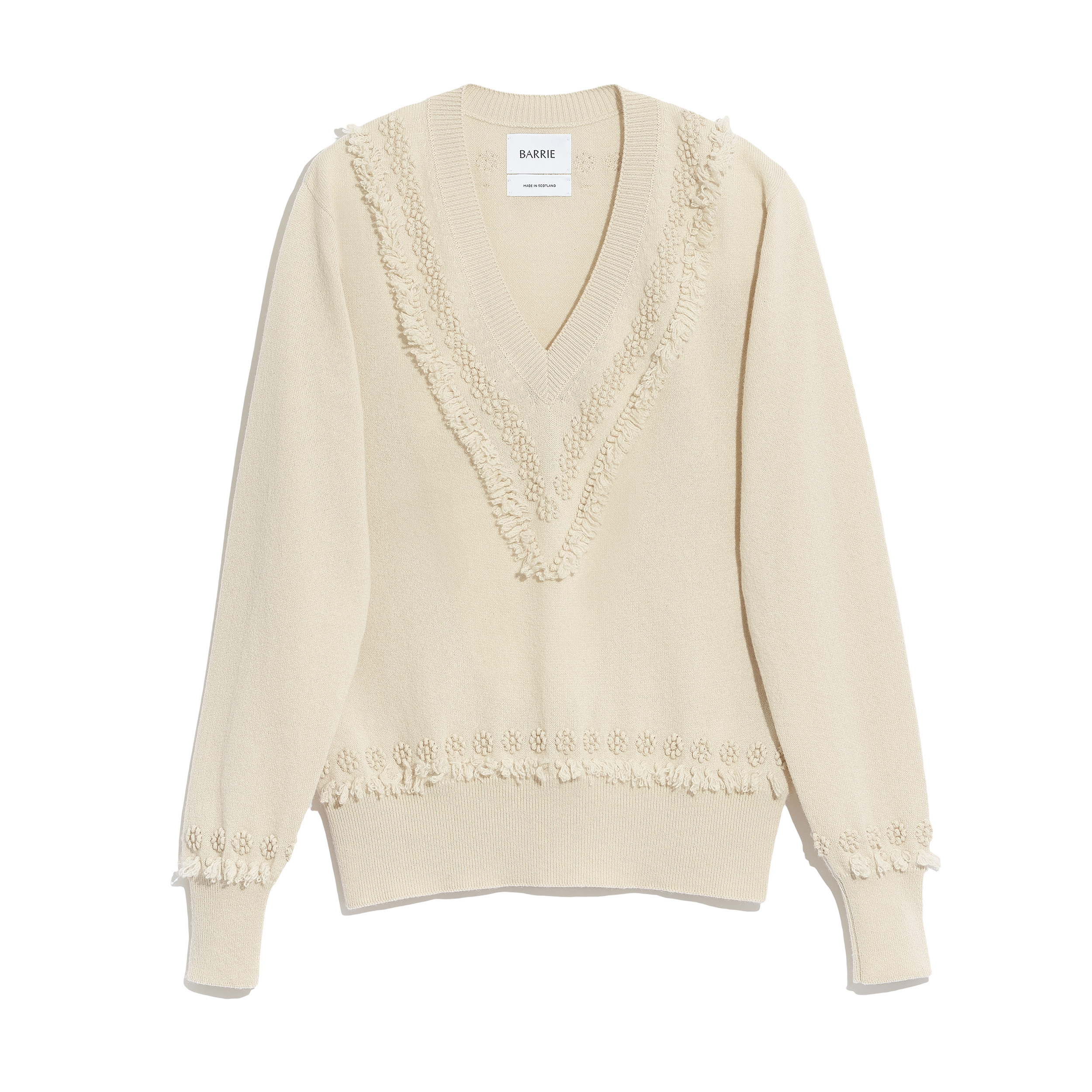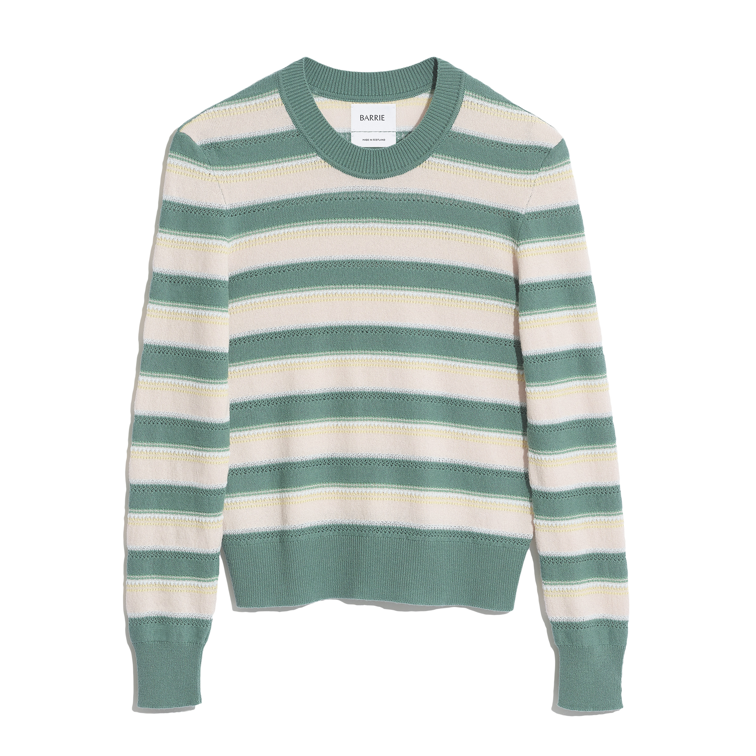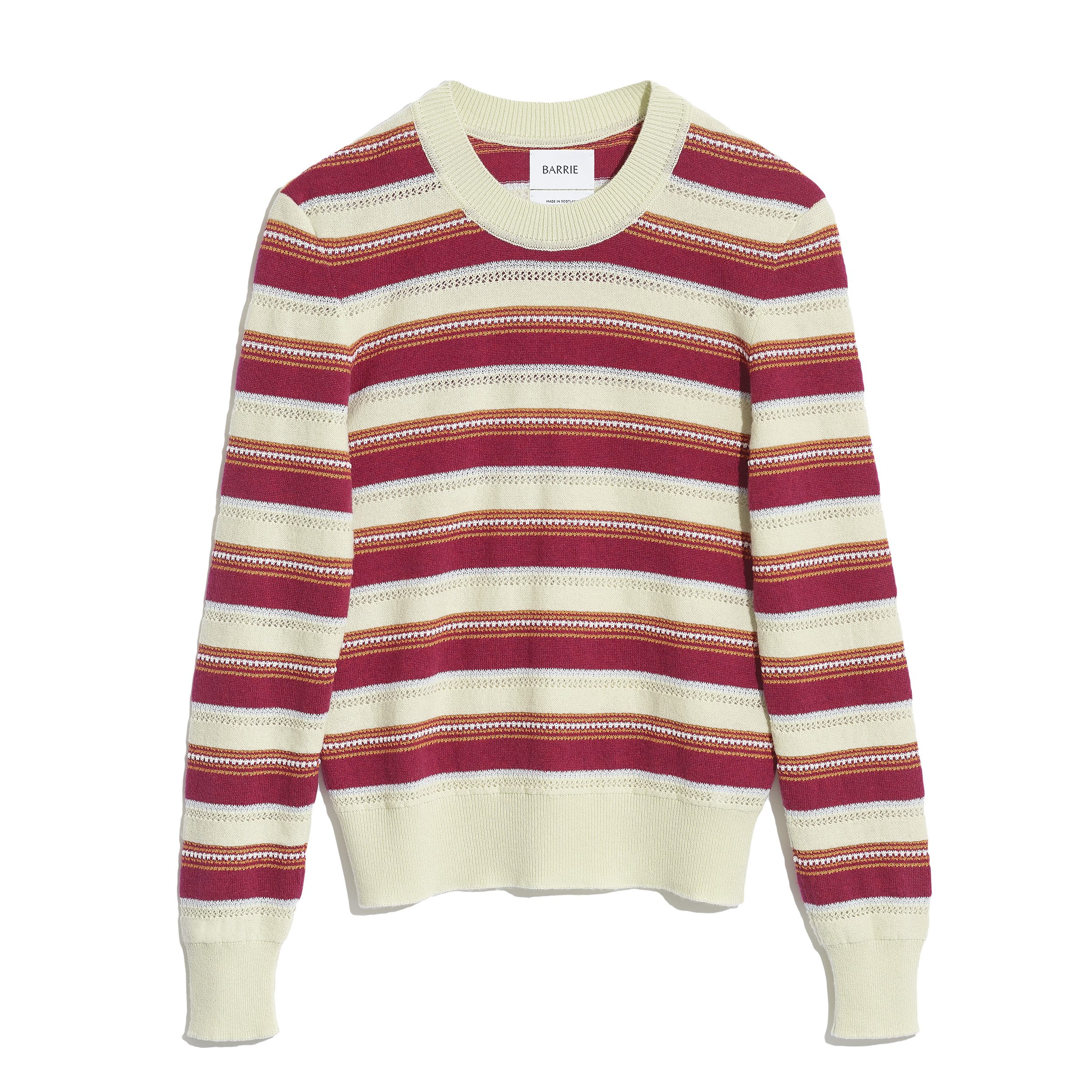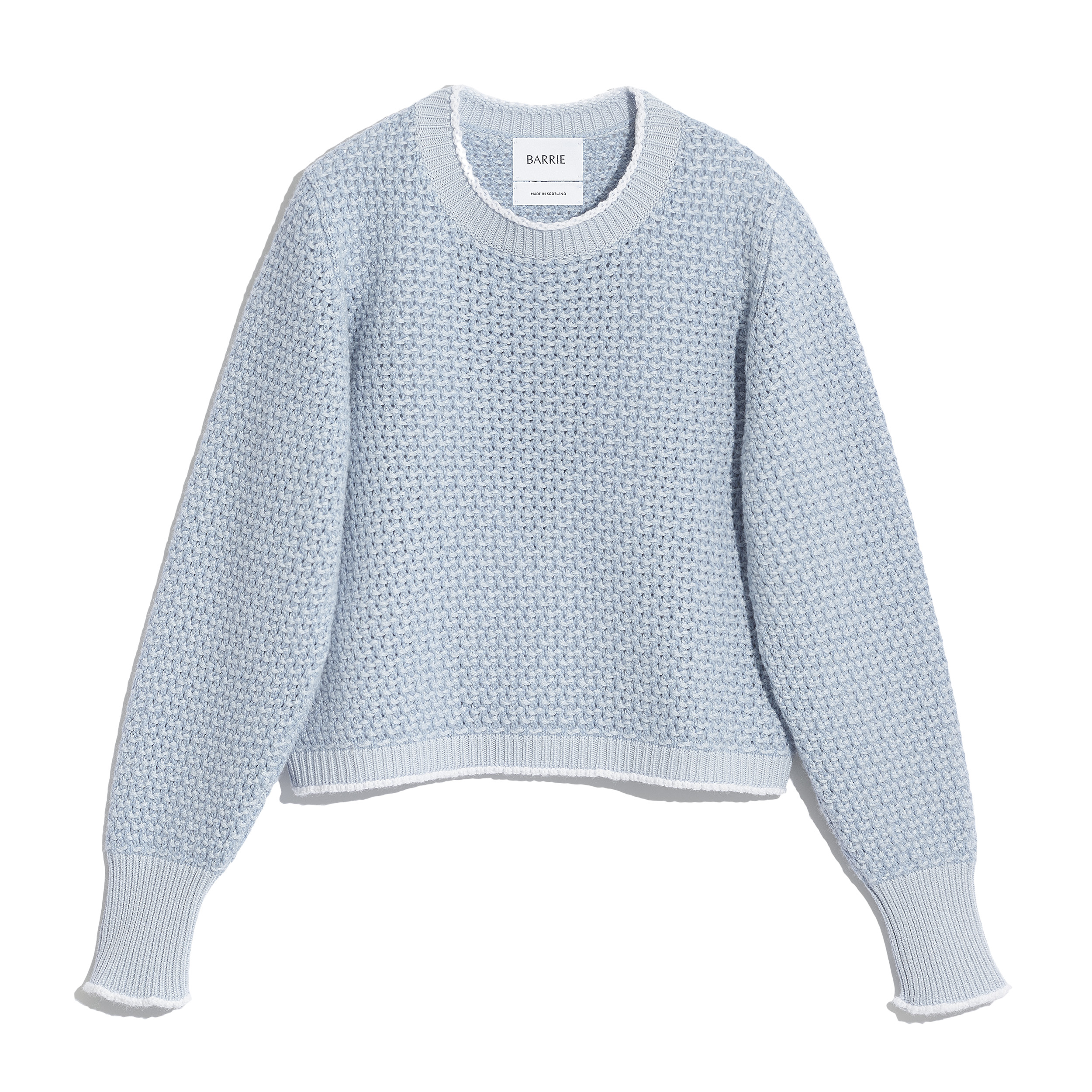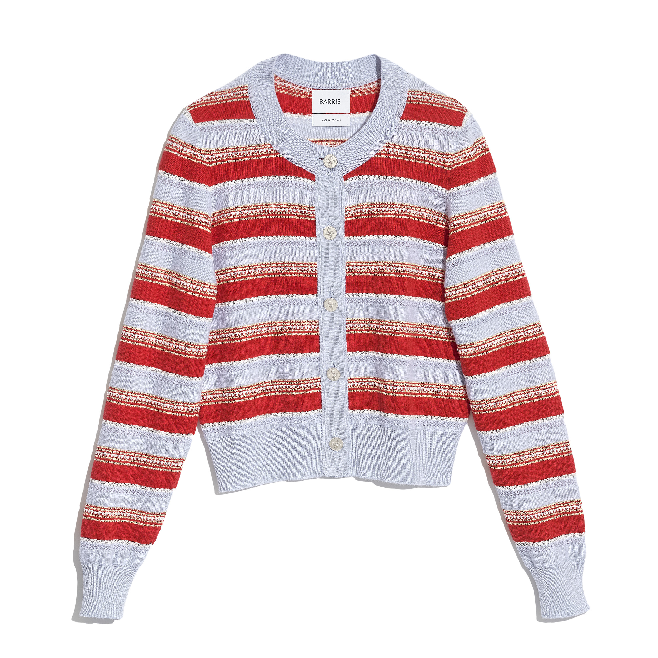 Les beaux jours sont incarnés par une collection Barrie tournée vers la joie de vivre à l’extérieur. Une palette inspirée par la flore écossaise tisse ses tons romantiques à travers des mailles légères et texturées, pour un vestiaire délicat qui porte la signature du style Barrie.