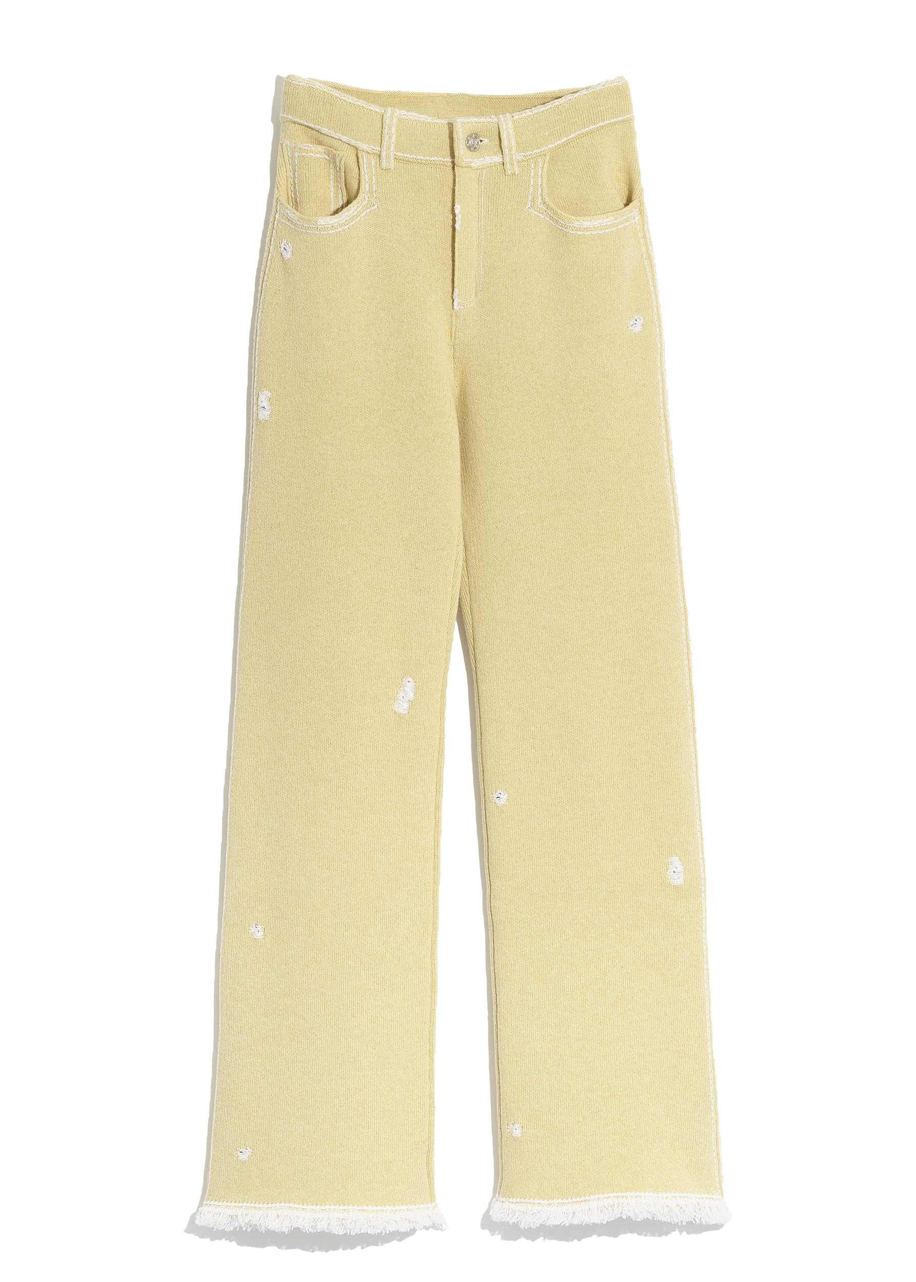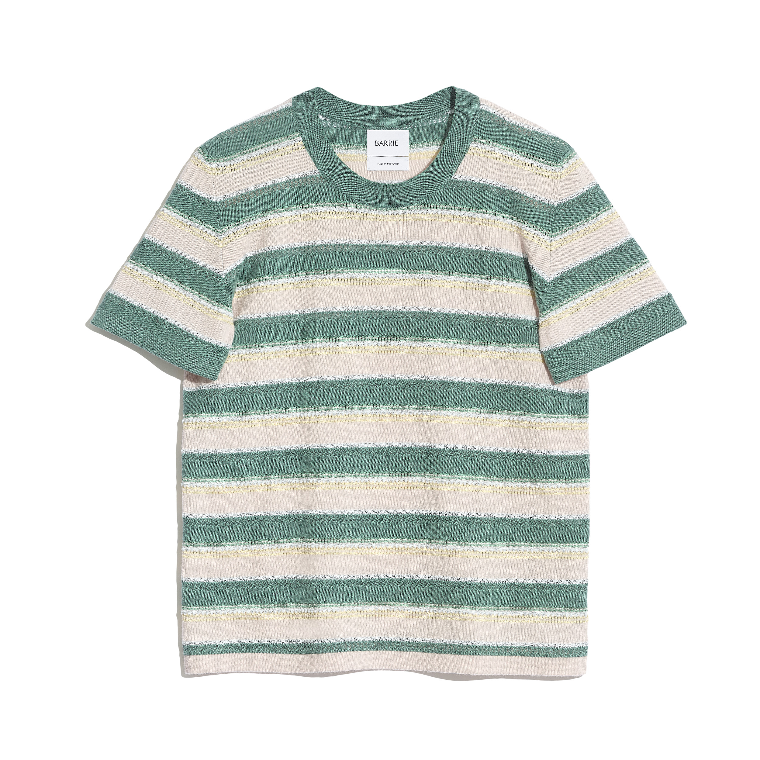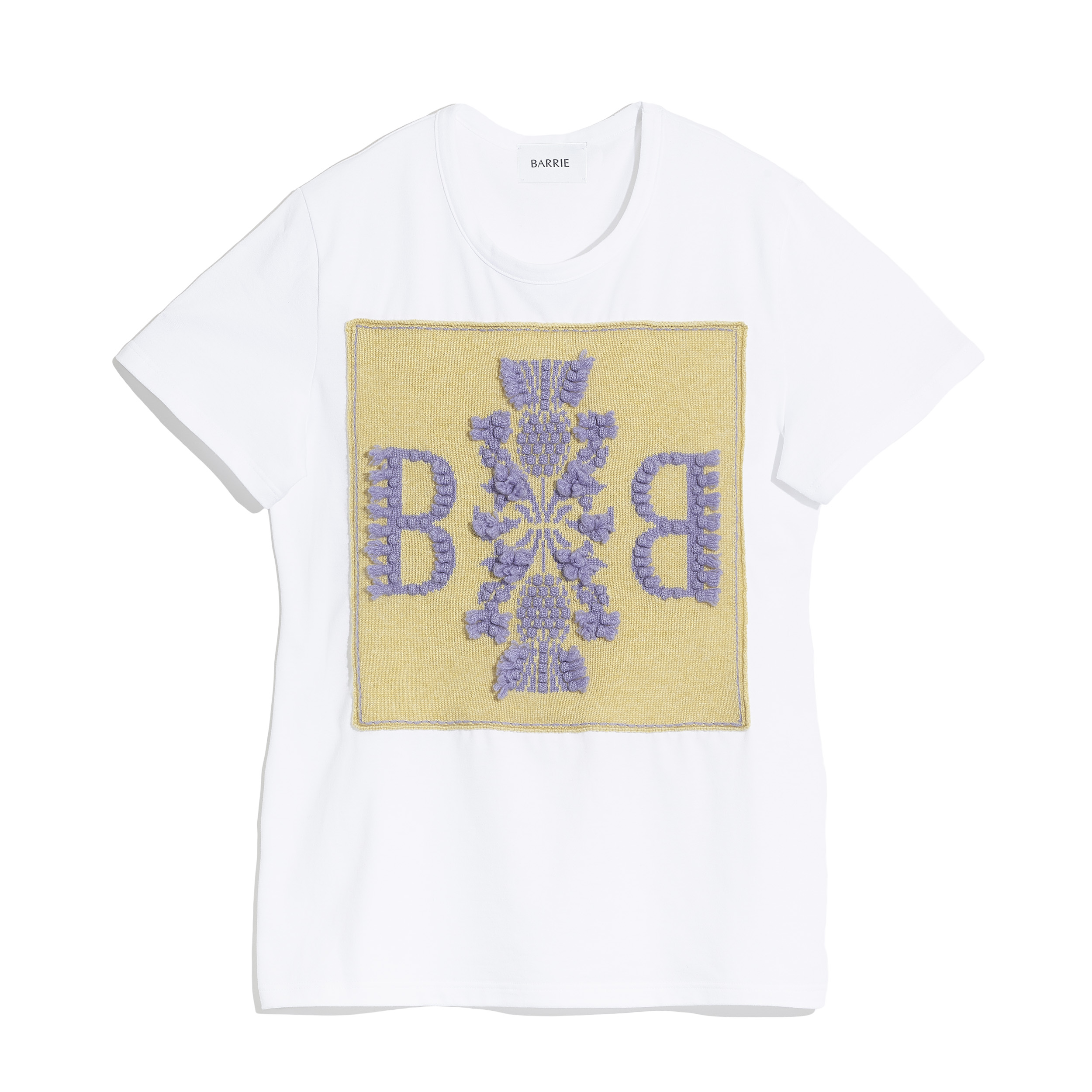 Formes et dessins issus de la maille classique sont sublimés par un twist contemporain, comme ce charmant ensemble composé d’un short, d’un polo and d’un cardigan dans une maille aérienne inspirée par un point de crochet. Un thème rayures évoque les cravates de club, mais préfère jouer la légèreté de points contrastés dans un fil coton-cachemire, disponible en version t-shirt, petite robe ou cardigan, dans quatre thèmes couleur poétiques. La nature est présente à travers un motif floral abstrait avec une sensibilité très vintage, sur un gilet à col qui démontre tout le savoir-faire technique de Barrie. En plus des traditionnelles lignes Borders, Logo et Flower, la gamme Denim s’approprie une teinte de citron pastel, déclinée sur un nouveau pantalon classique et une bordure grangée pour un effet used. Les modèles Darning déjà présents pour la demi-saison adoptent également une nouvelle palette pour mieux souligner leurs détails « recousus ». Les gammes Denim et Darning sont également disponibles en version homme, dans une collection qui comprend aussi la ligne essentielle Thistle Logo, avec ses t-shirts à patch déclinés dans la gamme de couleurs lumineuses de cet été.