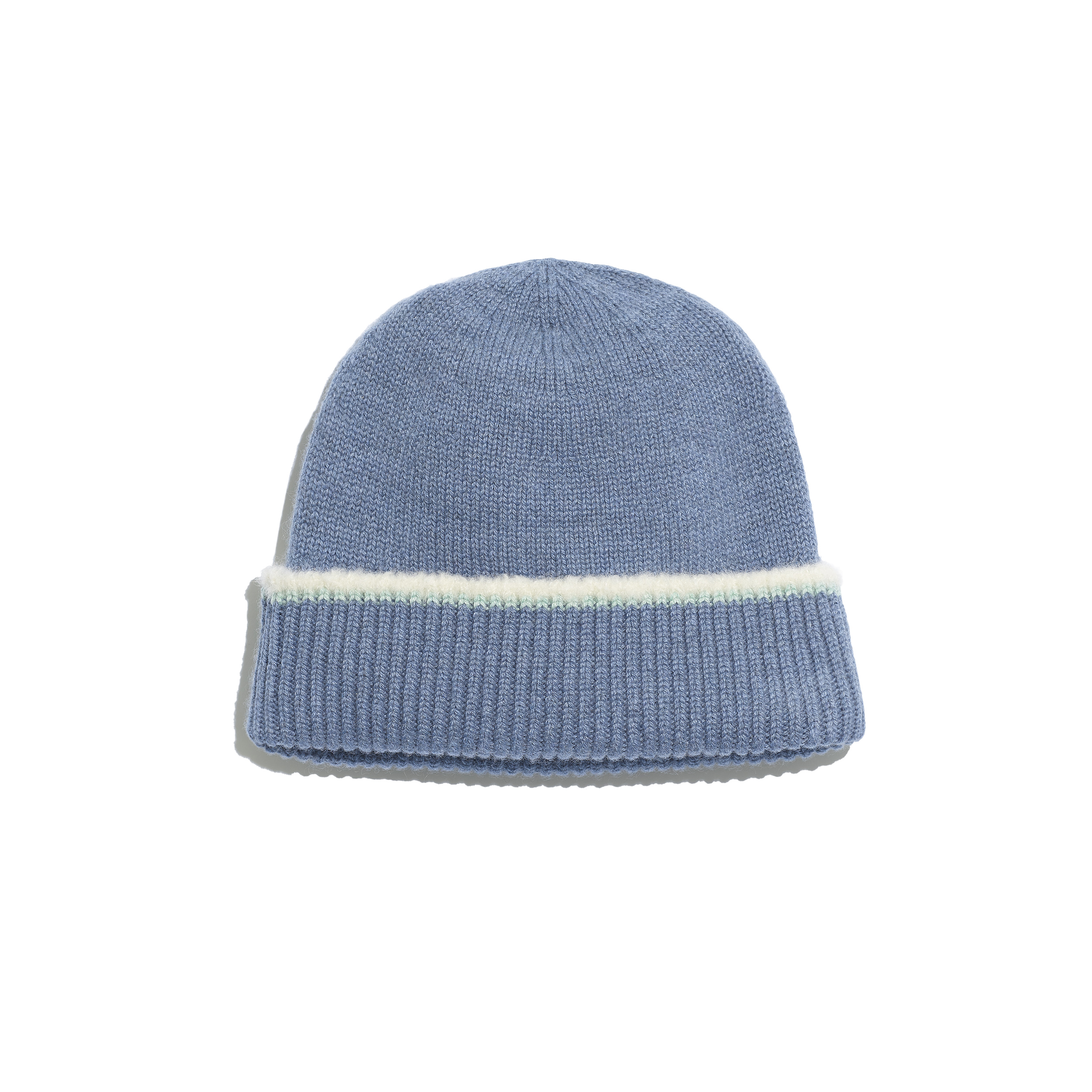 Une sélection de bonnets et de foulards s’amuse avec les textures et les tons d’une palette inspirée par l’été écossais, avec ses verts, ses blancs et ses bleus, et des touches plus pop d’abricot ou de framboise, dont plusieurs teintes réalisées sur-mesure pour la maison.