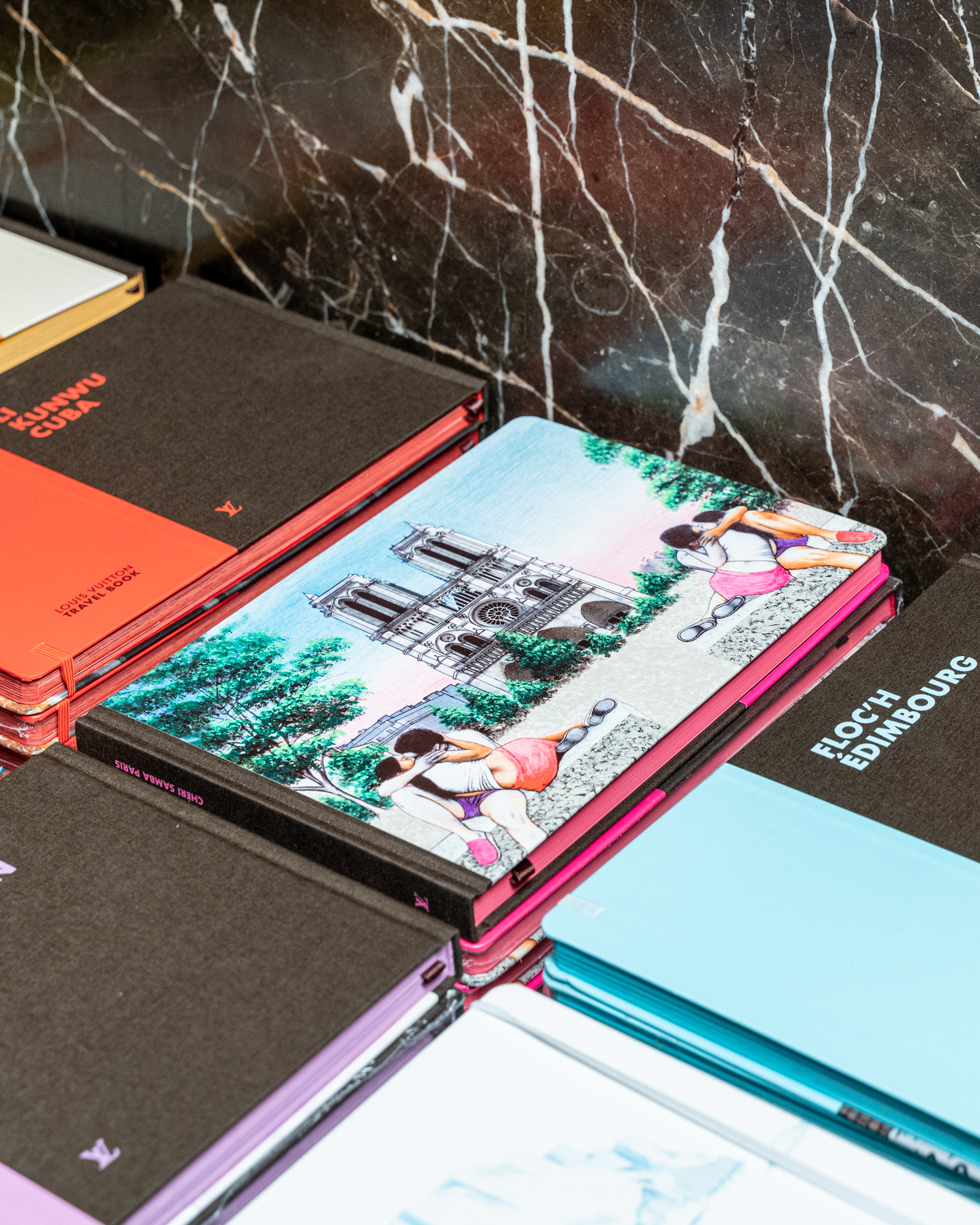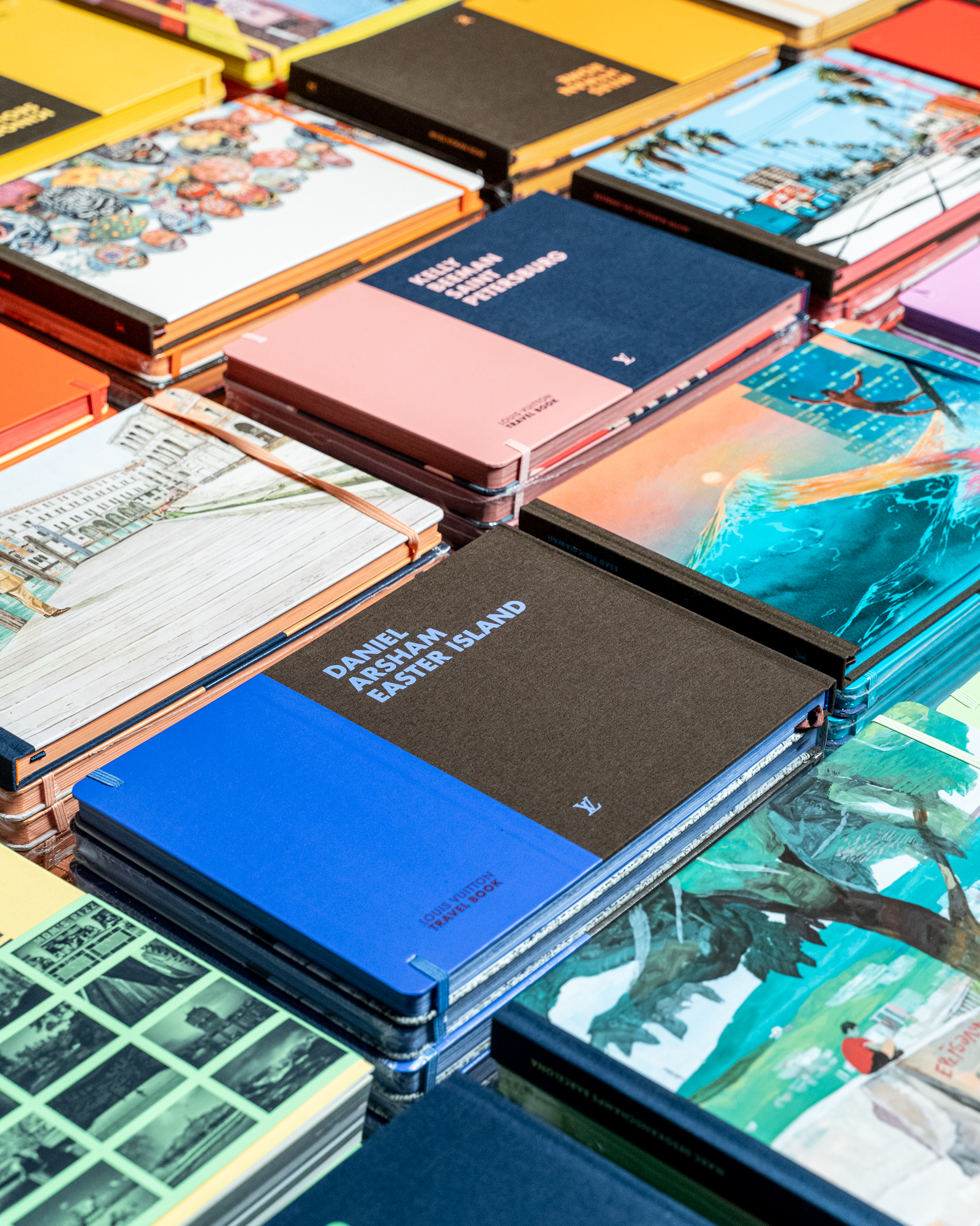 Construits comme de véritables carnets de route, les Travel Book Louis Vuitton offrent pour chaque destination, une série de dessins par des artistes du monde entier. Ils racontent les villes, les paysages et les rencontres, des plus grandes mégalopoles aux régions les plus exotiques. Artistes reconnus et jeunes talents déclinent une collection riche, emplie de poésie et d’évasion, où se côtoient différents modes d’expression : collage, peinture, dessin, bande dessinée, manga ou illustration sont autant de champs visuels explorés ici.