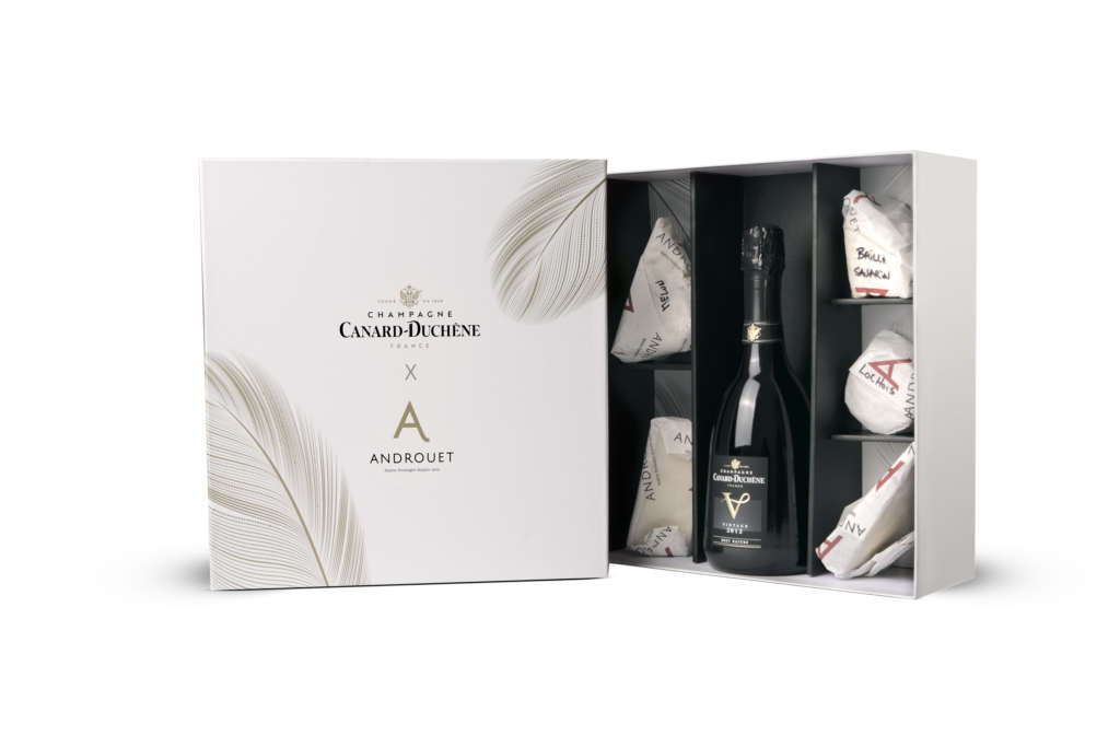 Le Coffret millésime V2012 Canard-Duchêne X les fromages Androuët est vendu dans 2 des boutiques Androuët (celles du 14eme Rue Daguerre et celle du 17eme rue de la Terrasse) jusqu’à décembre.