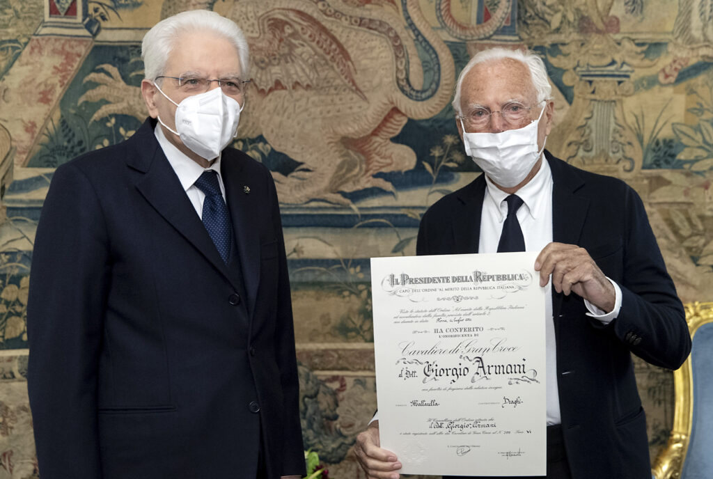 Giorgio Armani reçoit le titre de Chevalier Grand’Croix par le Président de la République italienne Sergio Mattarella