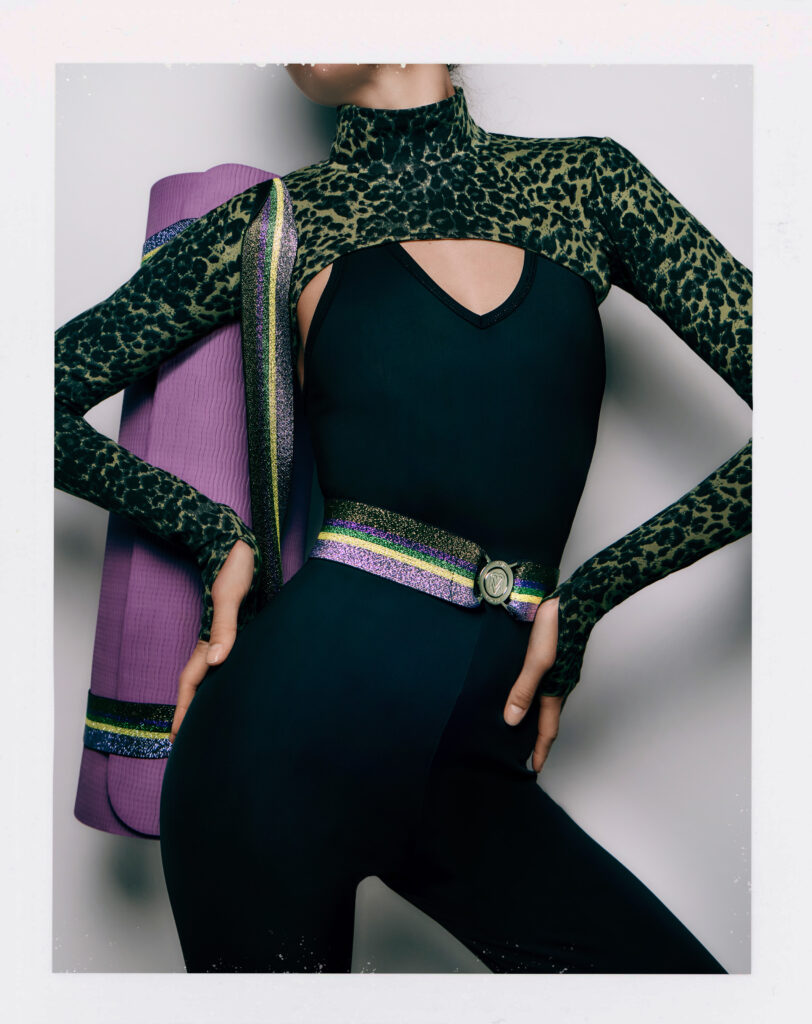 Les petits accessoires ne manquent pas : poignets en éponge et lurex, casquettes logo MV, tapis de fitness, tout est prévu pour l’exercice chic.