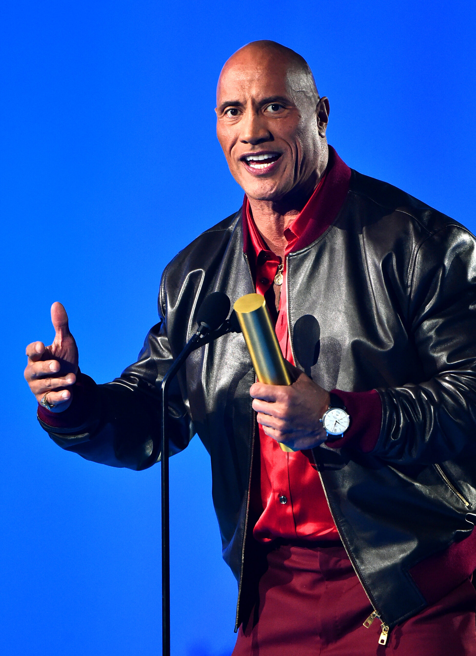 - SANTA MONICA, CALIFORNIA – DECEMBER 07: 2021 PEOPLE’S CHOICE AWARDS — Pictured: Dwayne Johnson accepts The Male Movie Star of 2021 award for ‘Jungle Cruise’ on stage during the 2021 People’s Choice Awards held at Barker Hangar on December 7, 2021 in Santa Monica, California. (Photo by Alberto Rodriguez/E! Entertainment/NBCUniversal/NBCU Photo Bank via Getty Images)