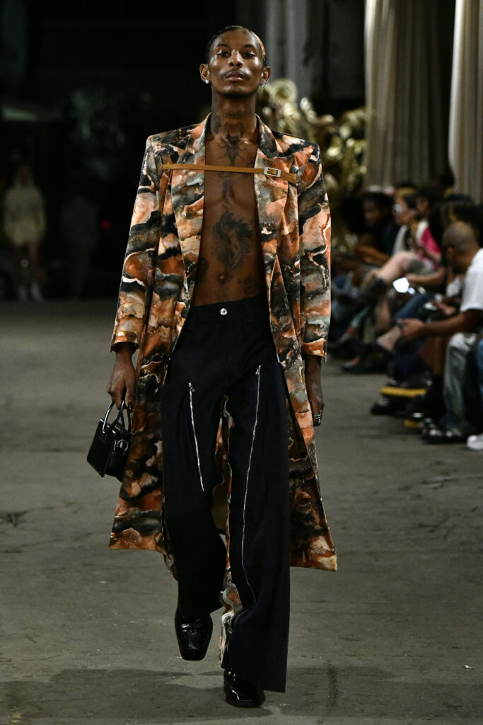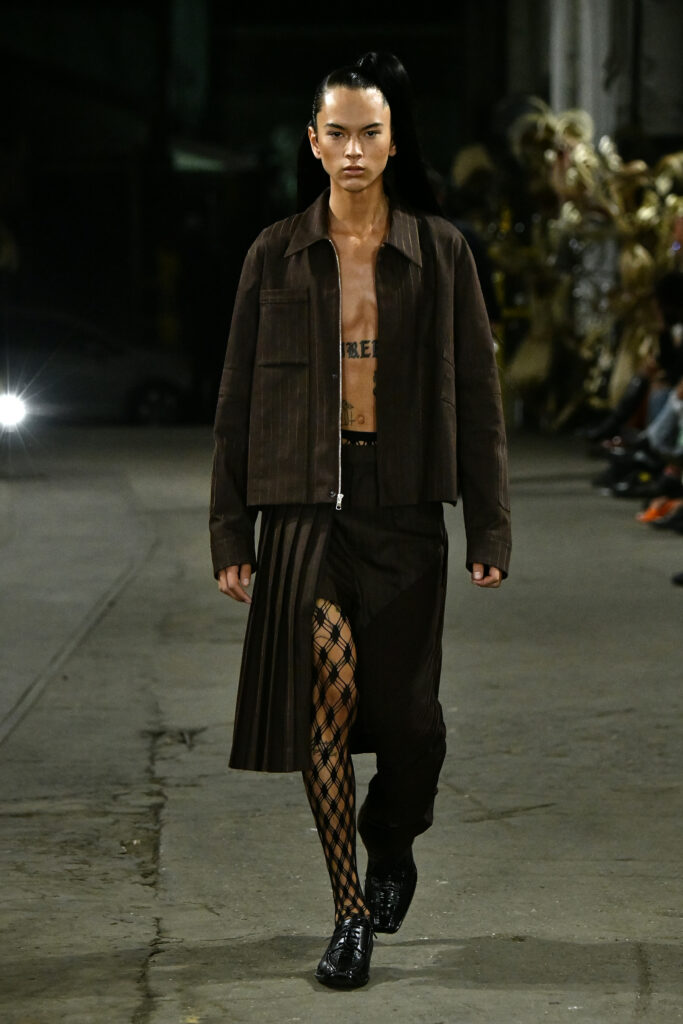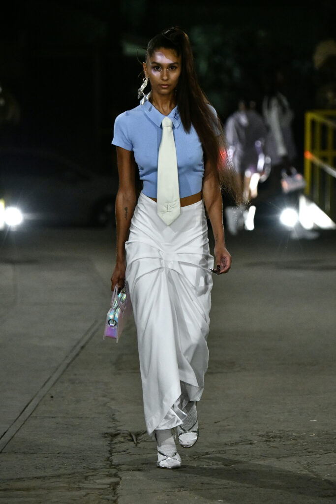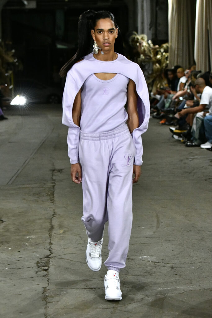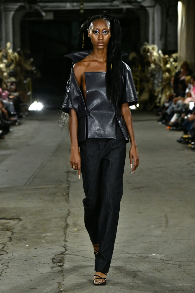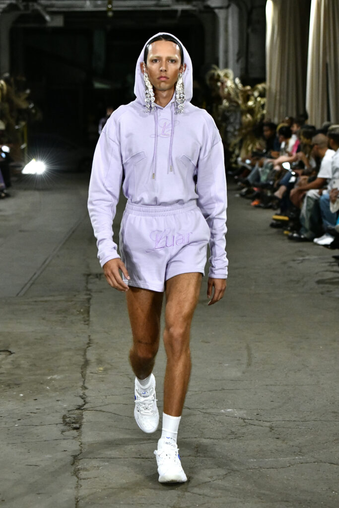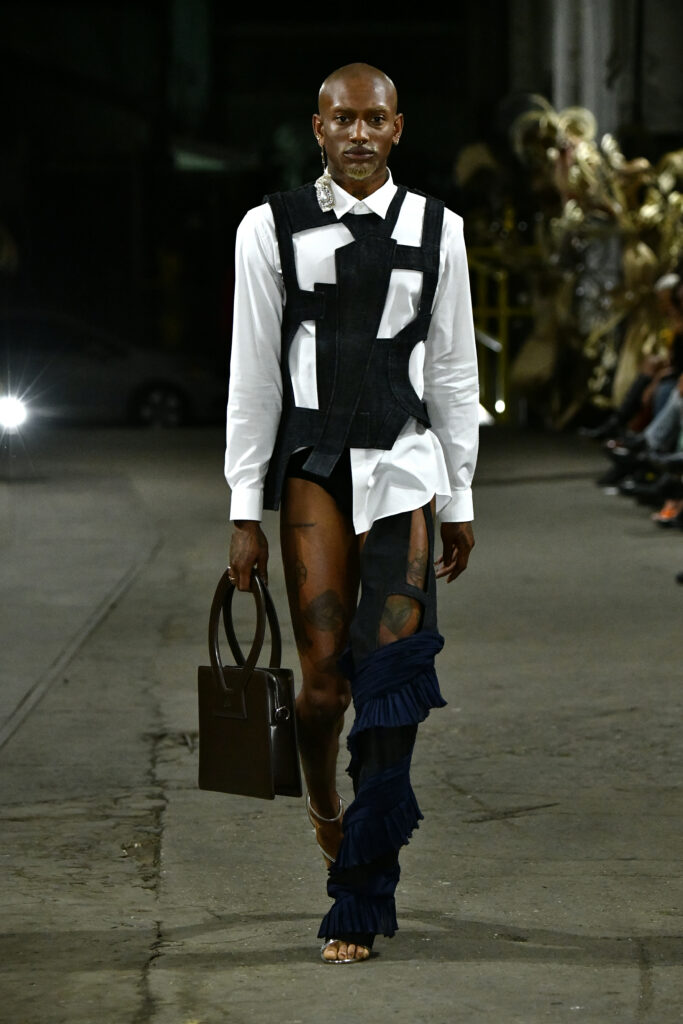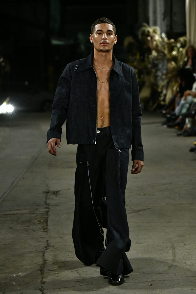 Following the brand’s three-season hiatus, Lopez introduces LUAR’s next chapter, one that is anchored by self-preservation and balanced by a desire for a longevity defined by emotional sustainability. The initial looks refamiliarize us with the brand’s ethos, weighty fabrics, twills and denim –– the shelled exterior that has yielded both acclaim and dissension when worn as an autobiographical narrative for Lopez. He equates these material source codes with misconception and seeks to reclaim his identity from previous notions of expectation to break the mold for BIPOC and subversive-airing designers. Utilizing silks, organzas and tulle, Lopez tangibly cultivates softness, a new, literal feel for LUAR that directly reflects the version of the self Lopez wants you to see.