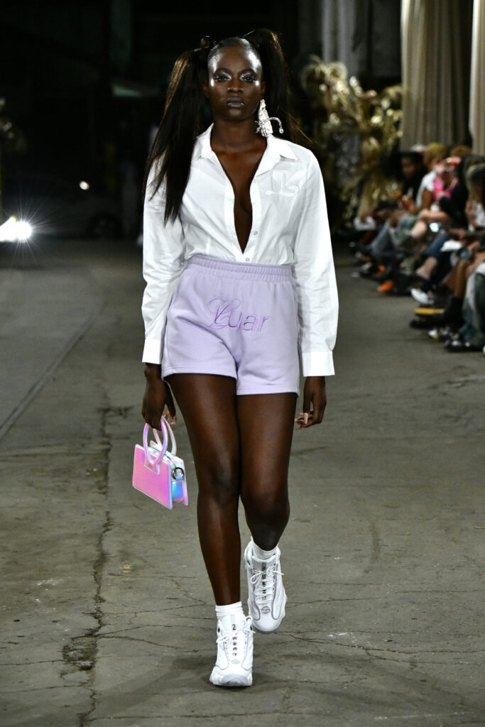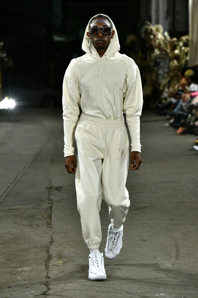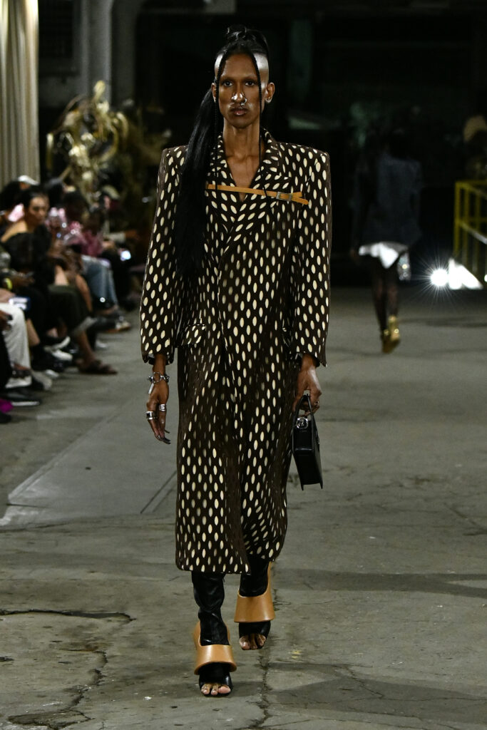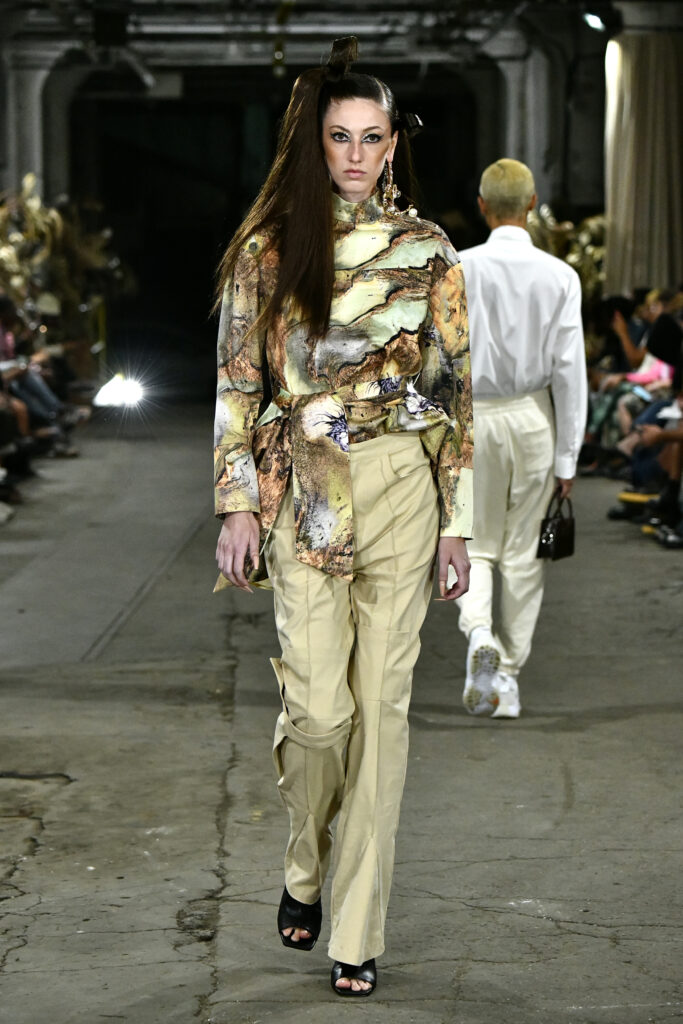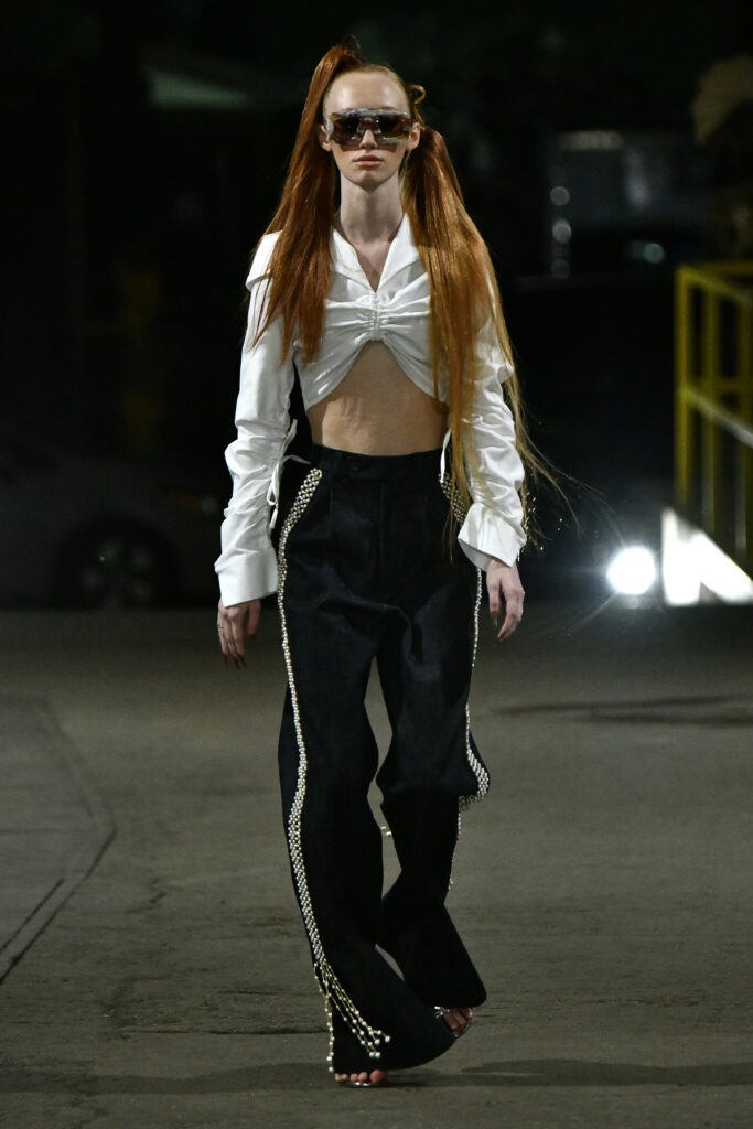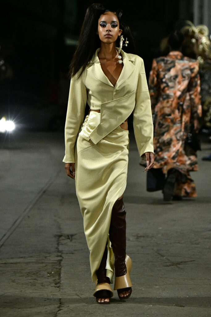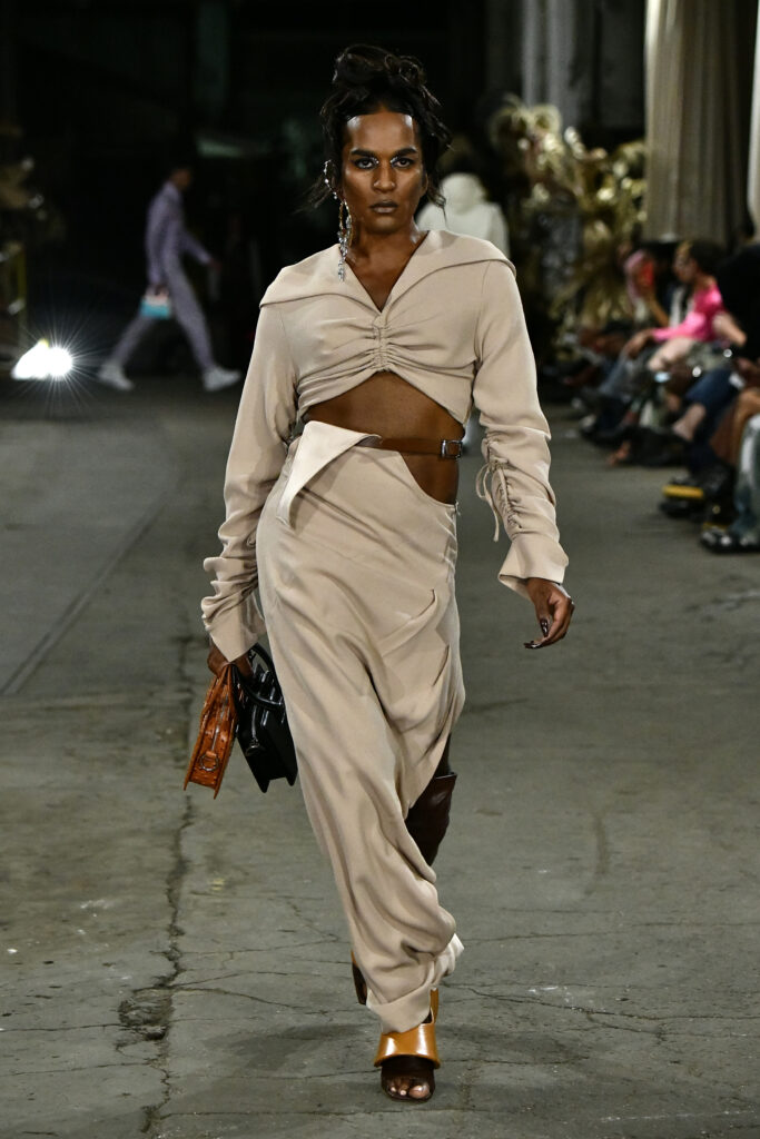 Following the brand’s three-season hiatus, Lopez introduces LUAR’s next chapter, one that is anchored by self-preservation and balanced by a desire for a longevity defined by emotional sustainability. The initial looks refamiliarize us with the brand’s ethos, weighty fabrics, twills and denim –– the shelled exterior that has yielded both acclaim and dissension when worn as an autobiographical narrative for Lopez. He equates these material source codes with misconception and seeks to reclaim his identity from previous notions of expectation to break the mold for BIPOC and subversive-airing designers. Utilizing silks, organzas and tulle, Lopez tangibly cultivates softness, a new, literal feel for LUAR that directly reflects the version of the self Lopez wants you to see.