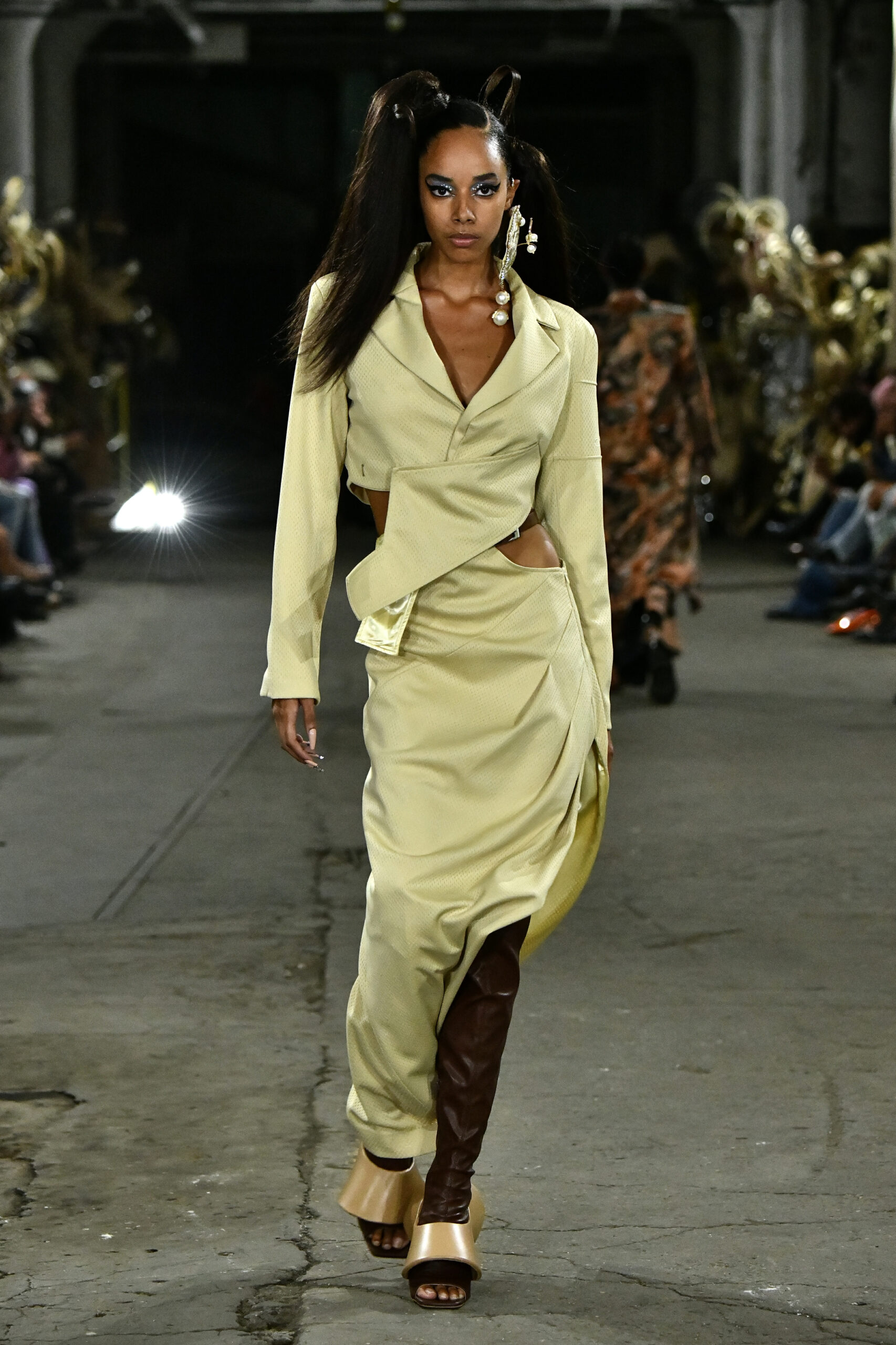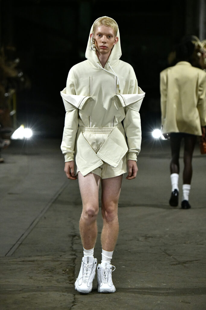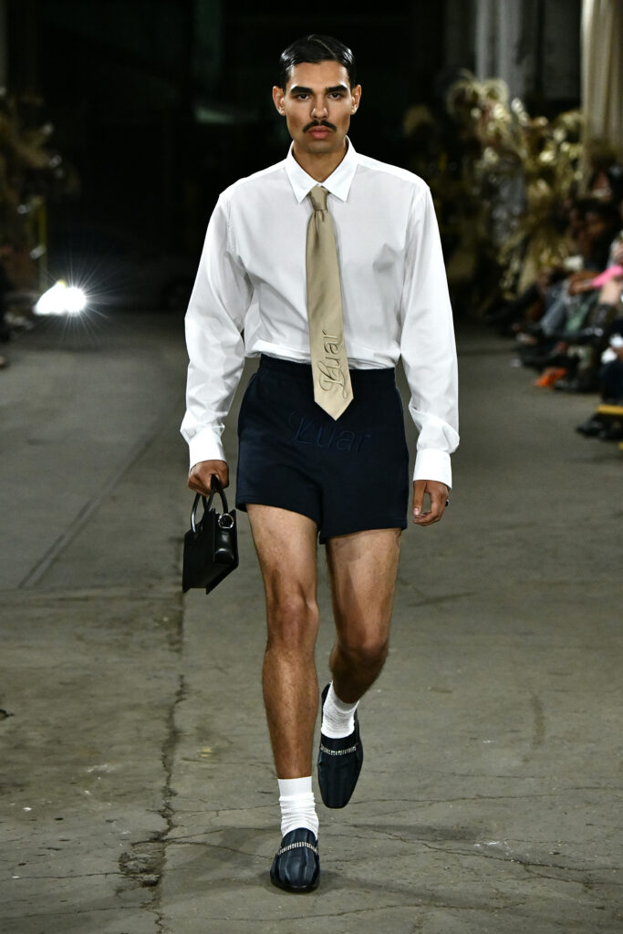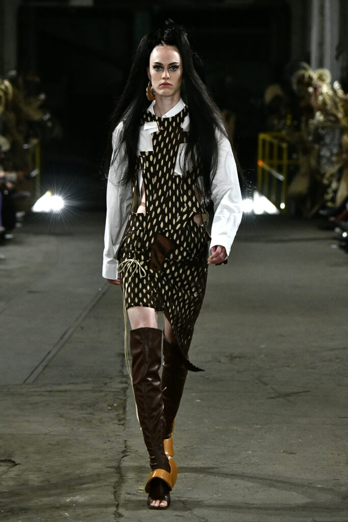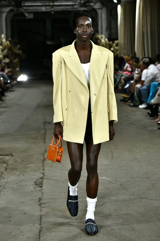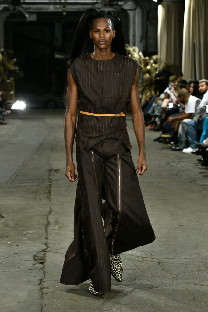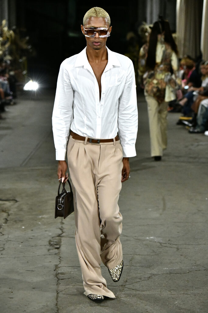 Following the brand’s three-season hiatus, Lopez introduces LUAR’s next chapter, one that is anchored by self-preservation and balanced by a desire for a longevity defined by emotional sustainability. The initial looks refamiliarize us with the brand’s ethos, weighty fabrics, twills and denim –– the shelled exterior that has yielded both acclaim and dissension when worn as an autobiographical narrative for Lopez. He equates these material source codes with misconception and seeks to reclaim his identity from previous notions of expectation to break the mold for BIPOC and subversive-airing designers. Utilizing silks, organzas and tulle, Lopez tangibly cultivates softness, a new, literal feel for LUAR that directly reflects the version of the self Lopez wants you to see.