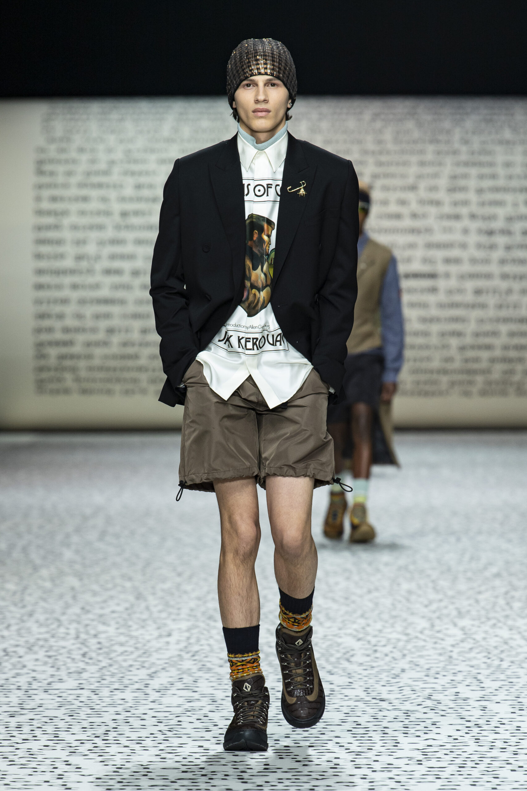 UNE CÉLÉBRATION DE L’IMAGINATION INCESSANTE, DE LA RÉINVENTION DE L’ARTISANAT, DE NOUVELLES PERSPECTIVES. POUR LA LIGNE HOMME DIOR AUTOMNE 2022, KIM JONES S’INSPIRE D’UNE FIGURE EMBLÉMATIQUE, L’AUTEUR JACK KEROUAC, ET MET EN LUMIÈRE SON DEUXIÈME ROMAN, ON THE ROAD*, ŒUVRE ICONIQUE DE LA BEAT GENERATION. SUR UN CATWALK RÉINTERPRÉTANT SON MANUSCRIT LÉGENDAIRE** EN VERSION XXL, LES MANNEQUINS ARBORAIENT DES LOOKS FUSIONNANT L’EXCELLENCE DE L’ATELIER ET L’ESPRIT DE LIBERTÉ, LE RAFFINEMENT D’UNE MAISON DE COUTURE PARISIENNE ET LA DÉCONTRACTION MODERNE DU SPORTSWEAR AMÉRICAIN. PREMIER DÉFILÉ HOMME DIOR À LONDRES, LE SHOW DIOR AUTOMNE 2022 EST UNE ODE À LA CONTRE-CULTURE ET À SA RICHESSE CRÉATIVE INÉPUISABLE.