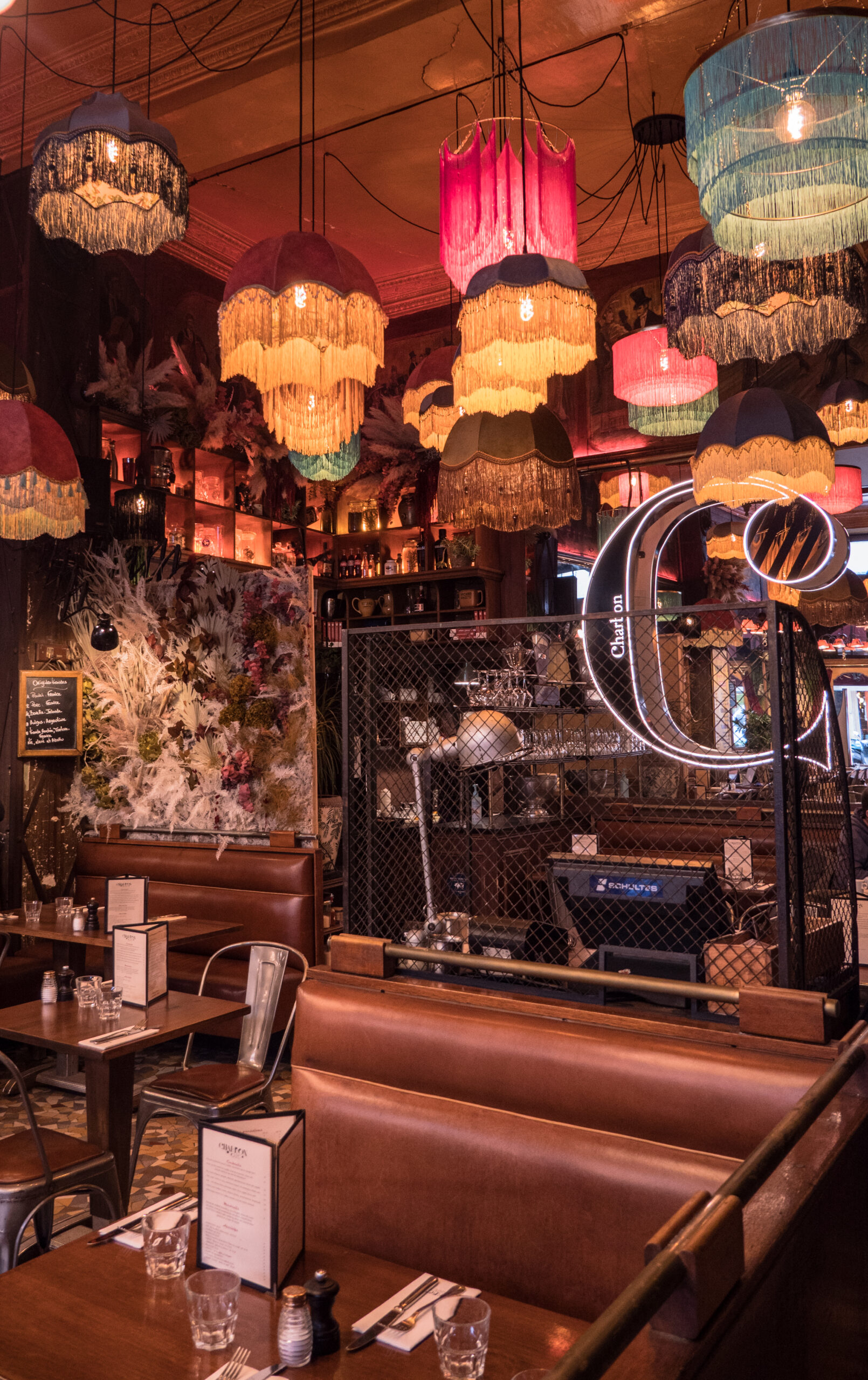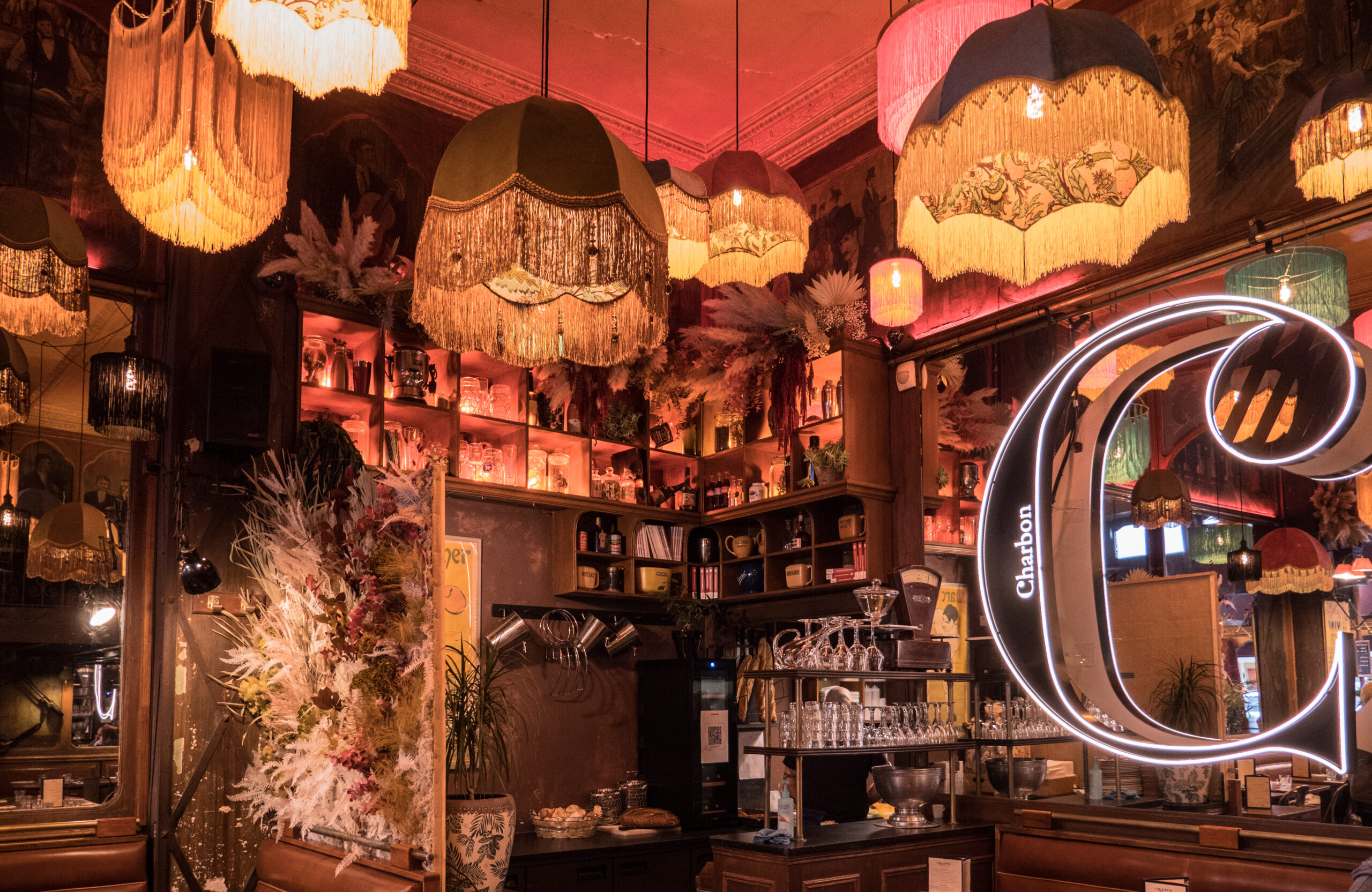 Un nouveau décor nous plonge dans un écrin célébrant le patrimoine historique de ce lieu unique : ambres, cuirs et pampilles colorées soulignent dorénavant la singularité du Charbon et de l’histoire de cette brasserie atypique :