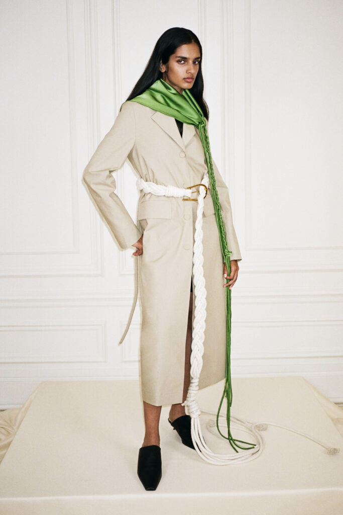 For Spring/Summer 2022, single looks are made up of a composite of layers, both literally and figuratively. Elevated materials and sensual silhouettes explore ideas of aesthetic modernity, functionality, luxury and responsibility. Bold colors run through the collection, hinting at a return to the joy of dressing. Green, blue and lilac satin are styled poignantly at just the collar or cuffs.