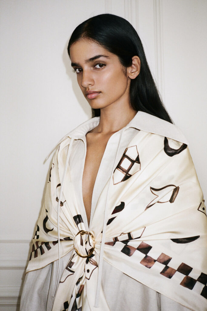 Nanushka’s Spring/Summer 2022 collection, entitled Harmónia, explores the creative potential of balance. Seeing an opportunity to find purpose through process, Sandra Sandor’s interest in creating with a mindful approach is showcased this season, establishing relationships between opposites and seeking a sense of equilibrium. Bringing seemingly disparate materials, design motifs and references together, the collection sets up a conversation around fluidity during a period of constant change.