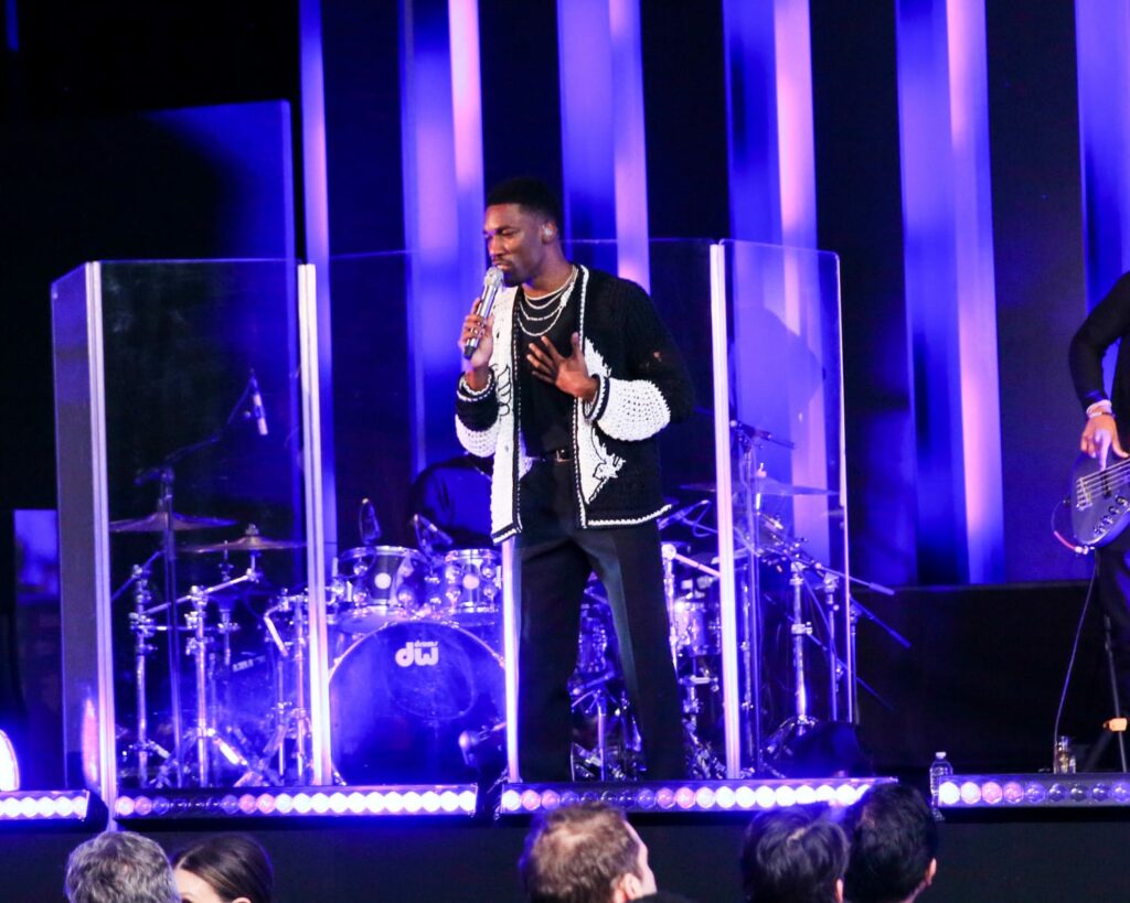 Giveon, auteur, compositeur et interprète américain, portait un collier « plume de chanel » en or blanc 18K et diamants. CHANEL Joaillerie.