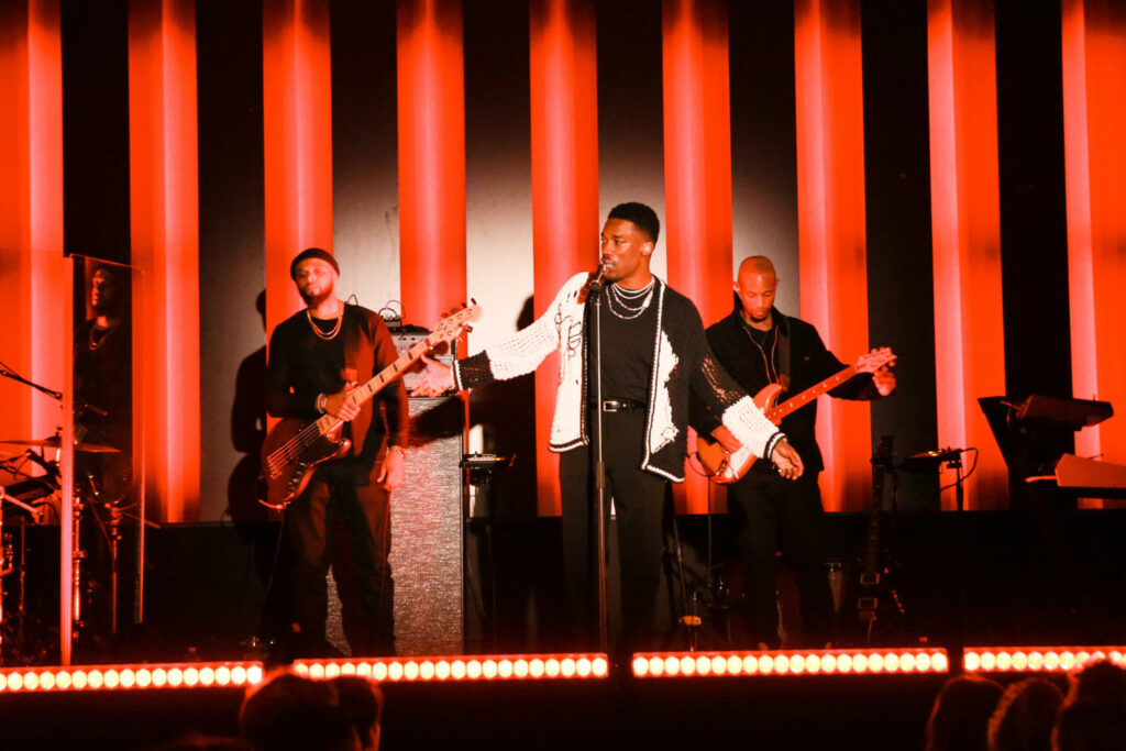 Giveon, auteur, compositeur et interprète américain, portait un collier « plume de chanel » en or blanc 18K et diamants. CHANEL Joaillerie.