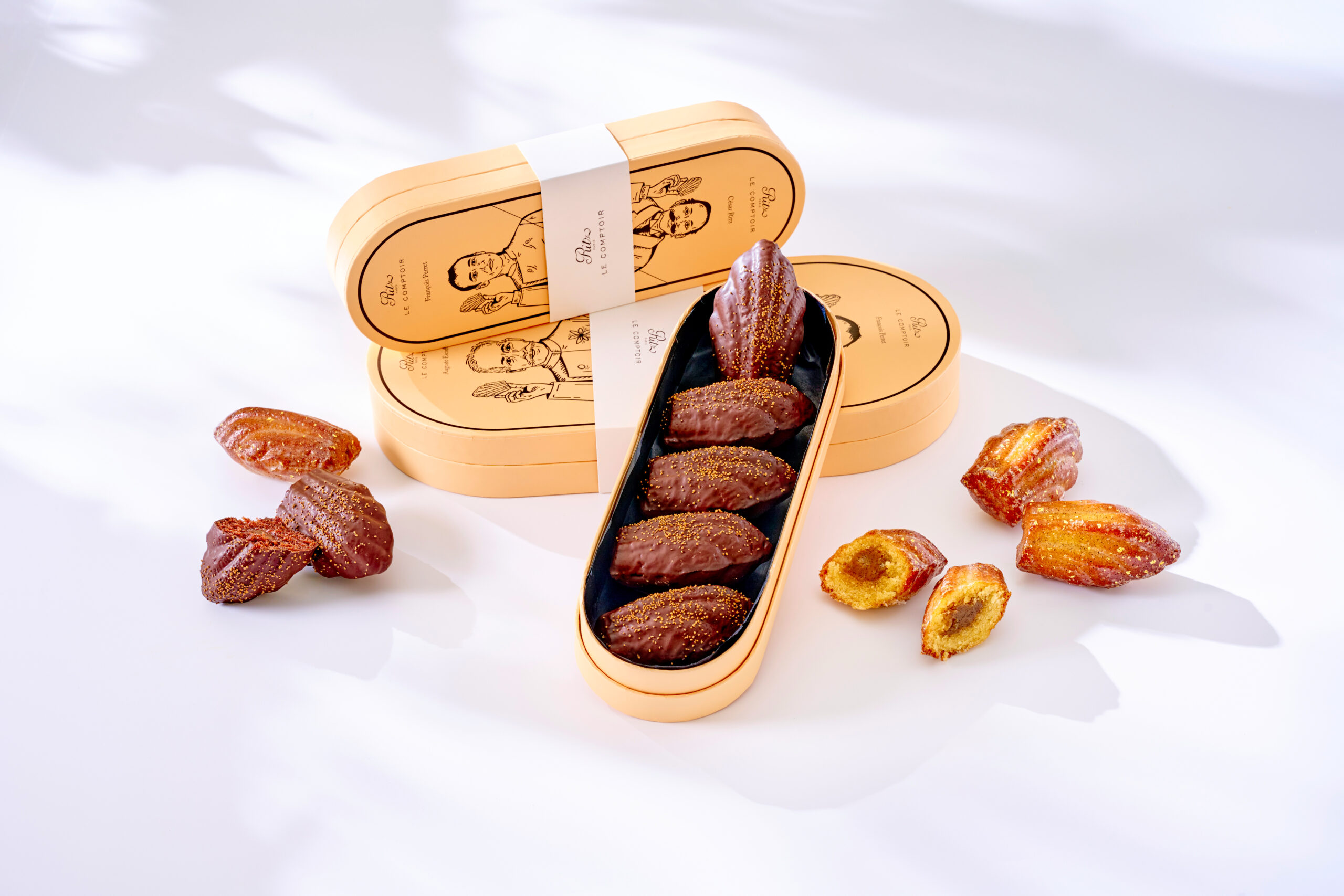 La pâtisserie signature de François Perret revient dans une version spéciale Noël. Madeleines garnies d’un cœur de chocolat à la truffe noire et enrobées de chocolat… ou madeleines garnies d’un cœur de vanille Bourbon glacée au sucre… quel coffret vous séduira ?