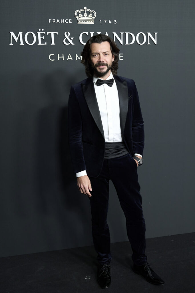 L’acteur de la Casa De Papel, Álvaro Morte portait un smoking BOSS en velours bleu, associé à une chemise blanche de la collection Pré Spring 2022.
