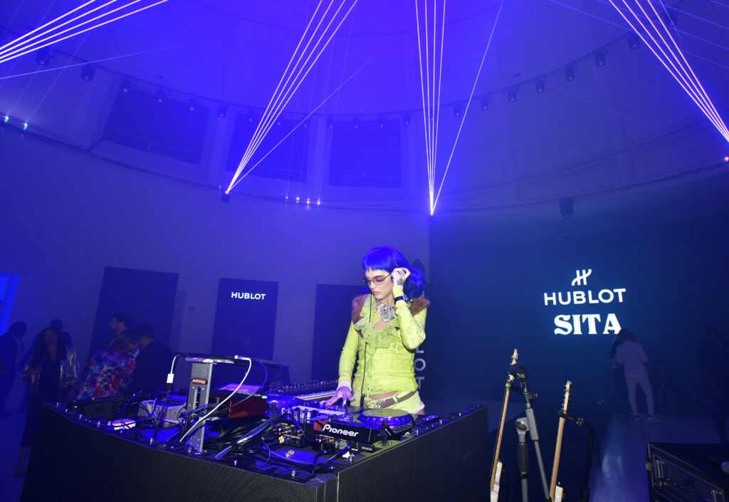 - MIAMI BEACH, FLORIDA – DECEMBER 02: DJ Sita Abellan performs at Hublot Loves Art Miami at Faena Forum: Art Basel 2021 on December 02, 2021 in Miami Beach, Florida. (Photo by Eugene Gologursky/Getty Images for Hublot)