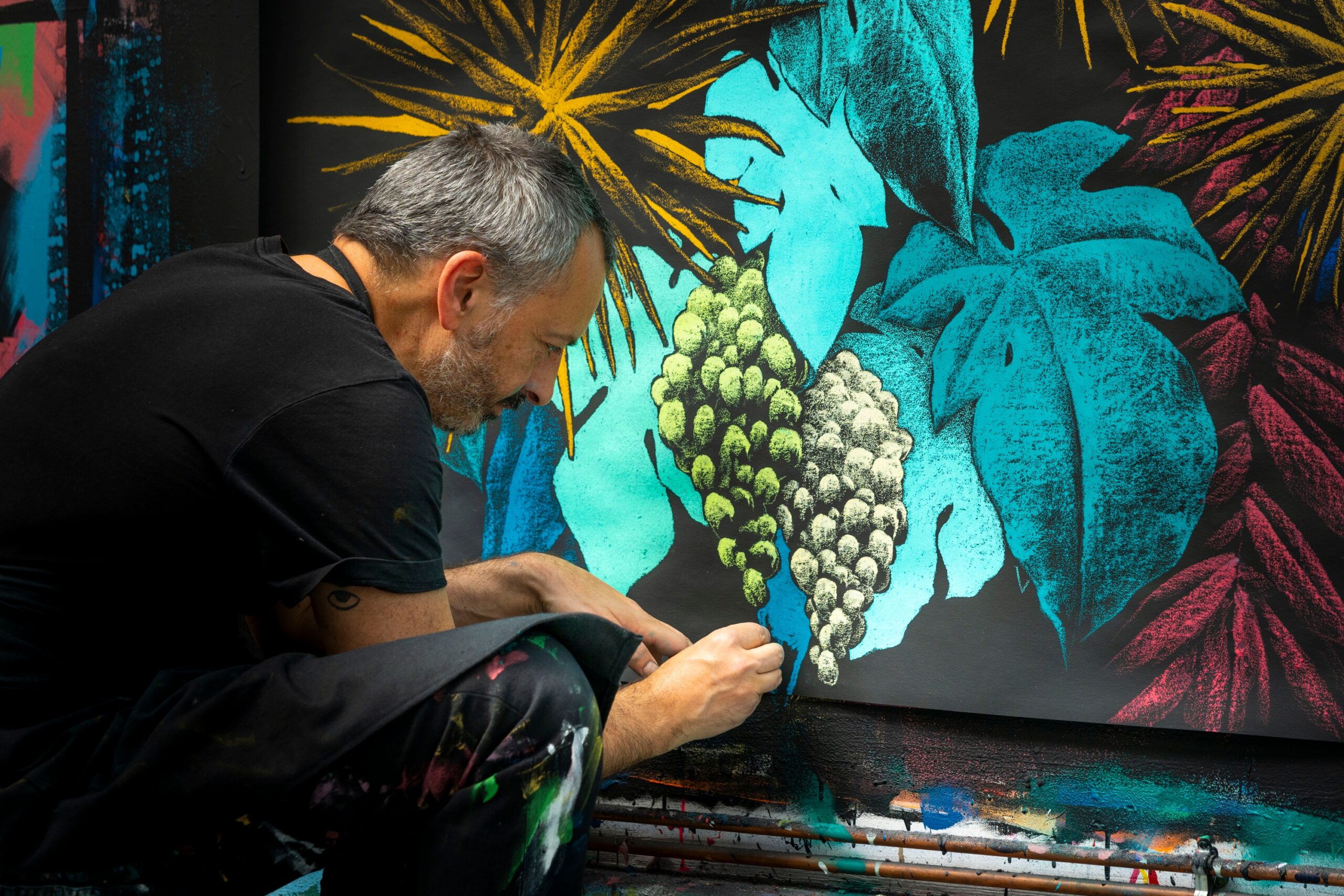 Ce processus créatif fait écho à celui de la Maison Hennessy. La nature dans un premier temps, sujet de prédilection de Julien Colombier et les grappes de raisins, matière première du cognac. Le processus d’élaboration du cognac, le savoir-faire et la précision qu’il requiert, sont des sources d’inspiration pour Julien Colombier. En effet, quand l’artiste-peintre choisit et assemble des formes, des couleurs, un format, de son côté, la Maison Hennessy perfectionne l’art de l’assemblage de ses cognacs pour leur donner la richesse aromatique qui les caractérisent depuis des années.