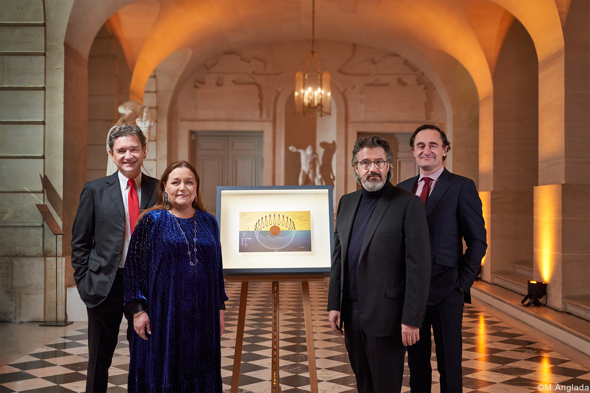 Au croisement de la nature, de l’art et de la science, Solar Iris of Mouton, conçu par Olafur Eliasson pour Château Mouton Rothschild 2019, célèbre l’alliance du soleil et du vin. Solar Iris of Mouton se divise en deux parties horizontales : la partie supérieure qui représente le jour avec ses teintes dorées, l’autre la nuit avec ses notes bleu foncé. Elles entourent l’oculus qui représente Château Mouton Rothschild. Autour, une série d’ellipses forment un anneau qui retrace le parcours du Soleil par rapport à la Terre, à l’endroit même où se situe le Château à Pauillac. L’arc de cercle le plus bas représente le jour le plus court de l’année et, le plus haut, le jour le plus long. Dans la partie haute, les figures en forme de 8, appelées analemmes, représentent les positions du soleil relevées chaque jour de l’année à la même heure depuis Château Mouton Rothschild. Ce sont les mouvements de la Terre autour du Soleil et le long de son propre axe qui sont à l’origine des variations de position du soleil. Ainsi, la forme d’un analemme révèle le mouvement de la Terre et le passage du temps. Cette figure en forme de « 8 » évoque le symbole de l’infini : promesse d’éternité pour Mouton Rothschild 2019 ?