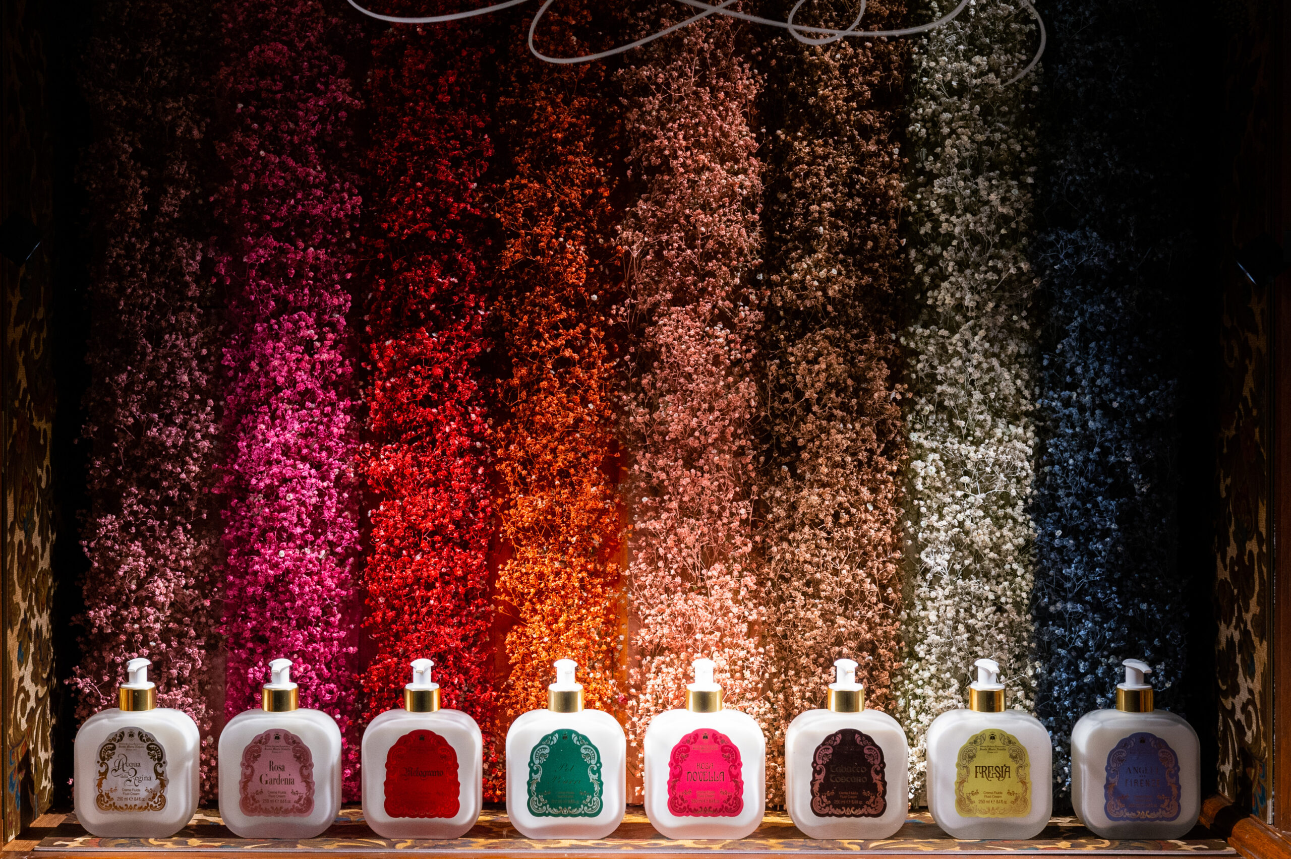 Acqua della Regina, Pot Pourri, Pomegranate, Freesia, Angeli di Firenze, Tabacco Toscano, Rosa Novella, sont les parfums inclus dans la collection. Le nouveau parfum Rosa Gardenia est dédié au gardénia.