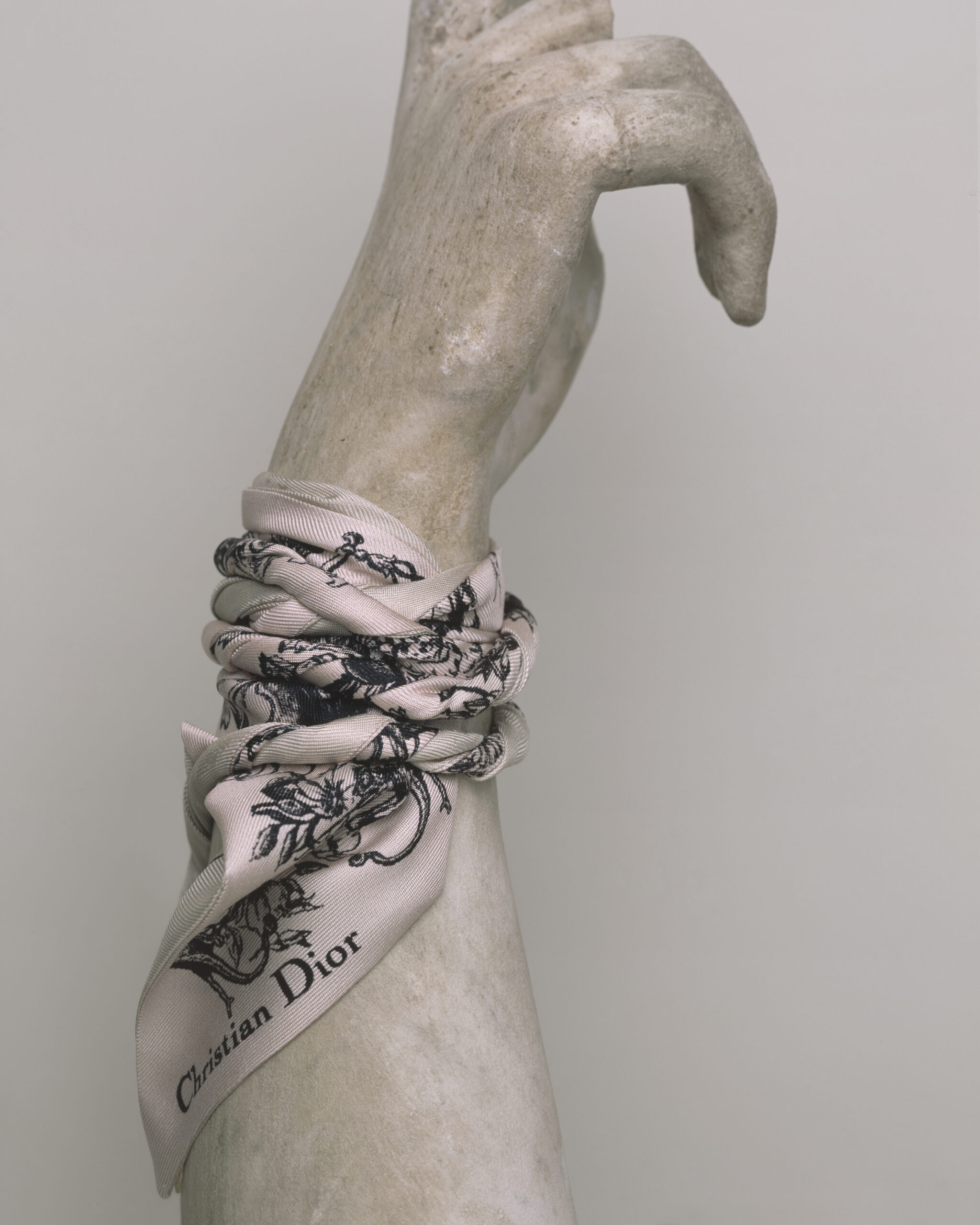 Accessoires incontournables de la collection Dior croisière 2022 imaginée par Maria Grazia Chiuri, les foulards se dévoilent dans une série de clichés envoûtants capturés par la photographe Brigitte Niedermair. Dans un jeu de dualité au croisement du surréalisme et de la mythologie, de somptueuses statues dialoguent avec les silhouettes mises en scène tels des bustes antiques – subtil écho aux inspirations de la ligne qui a défilé à Athènes. Au gré de différents portés, la soie sublime les corps et la pierre avec raffinement, conjuguant les motifs emblématiques de la collection et les esquisses de Pietro Ruffo – célébrant notamment la magie des cartes de tarot. Une ode sculpturale à la beauté atemporelle des créations Dior, à découvrir en images.