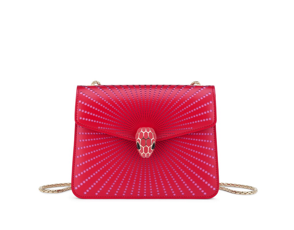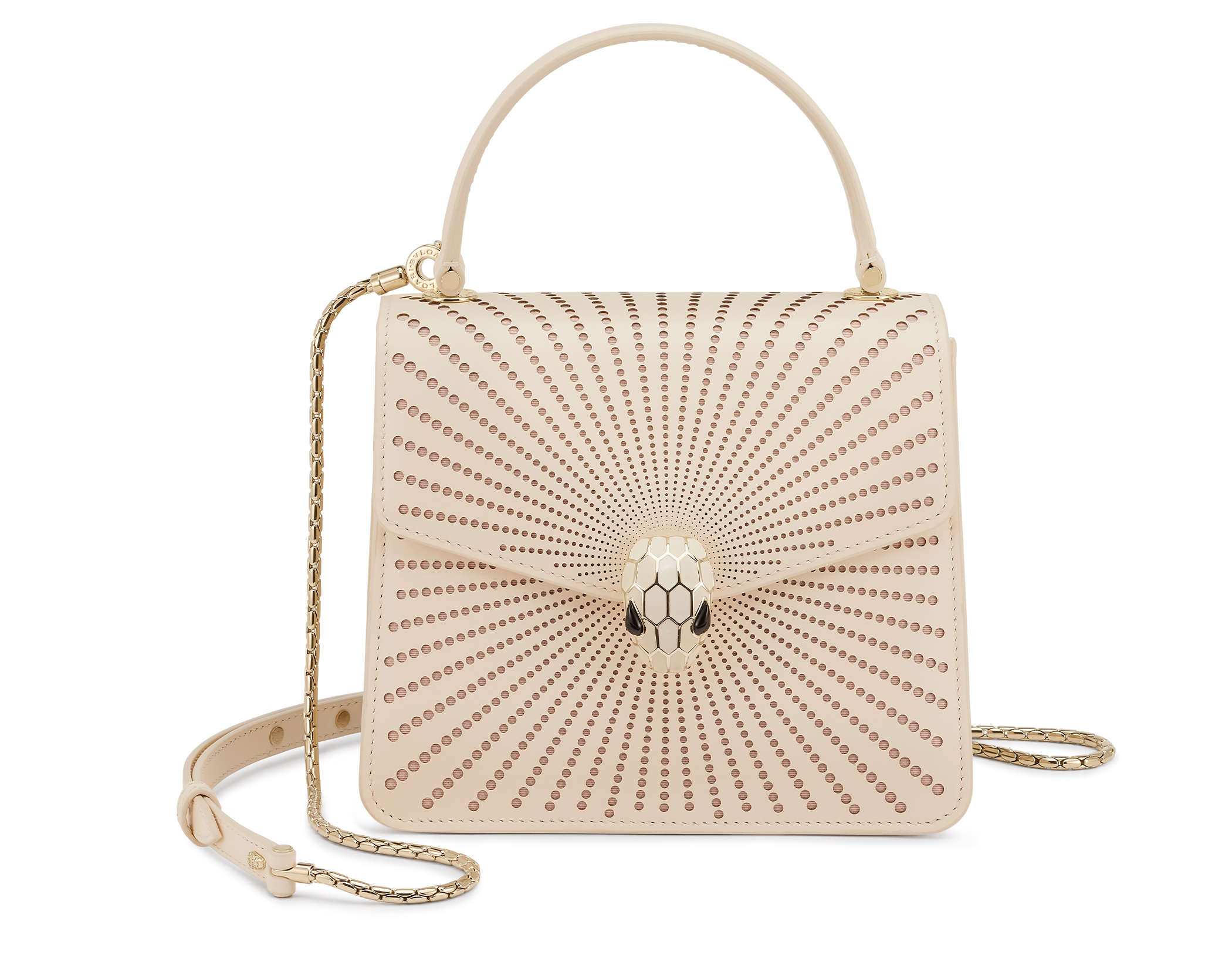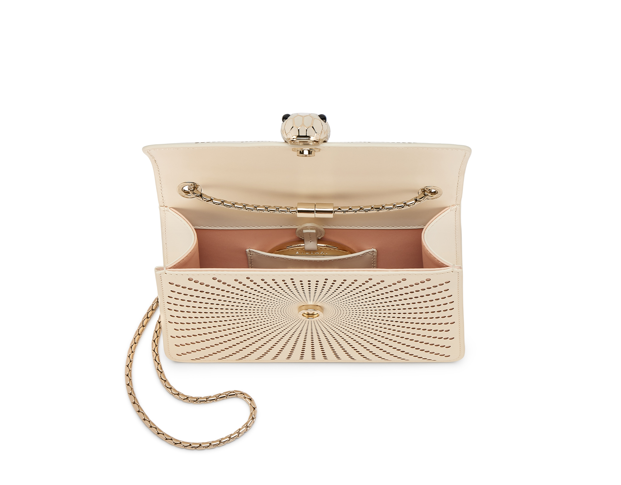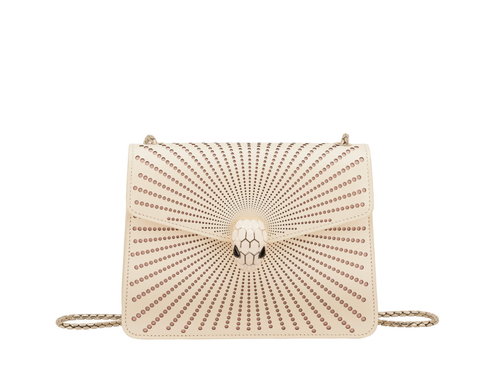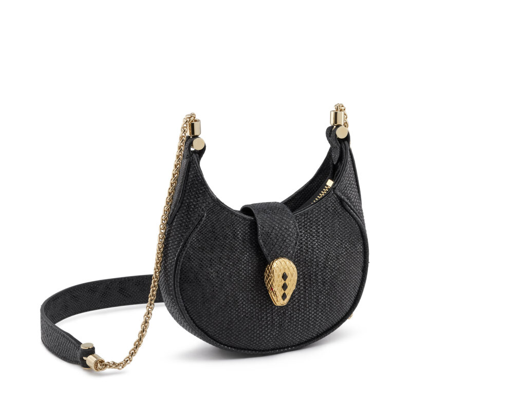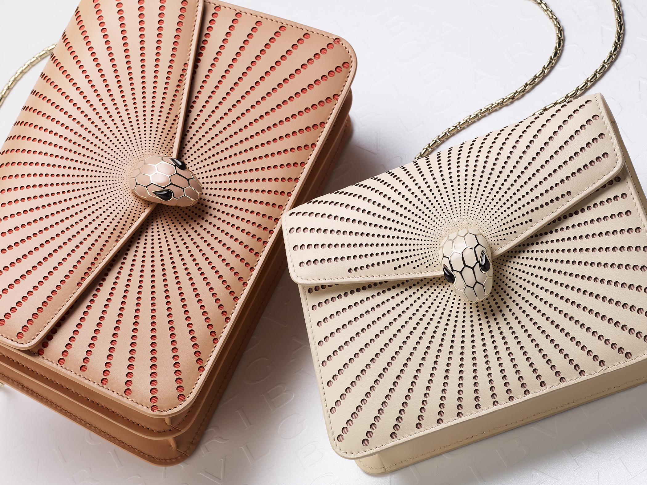 RADIANCE, l’une des atmosphères de la collection, célèbre le rayonnement omniprésent de la Ville Eternelle avec un nouveau motif rayon de soleil inspiré de l’héritage horloger de Bulgari. Serpenti se décline sous de nouvelles formes surprenantes pour sublimer des modèles aussi modernes qu’inattendus, tels que les sacs Hobo Serpenti et Vanity Serpenti. La collection expérimente des techniques de fabrication inédites, telles que la découpe laser ultra-contemporaine pour le Serpenti Laser Cut, ou encore la maille inspirée de l’univers de la joaillerie pour le Serpenti Heritage Mesh et le Serpenti Full Metal Mesh.