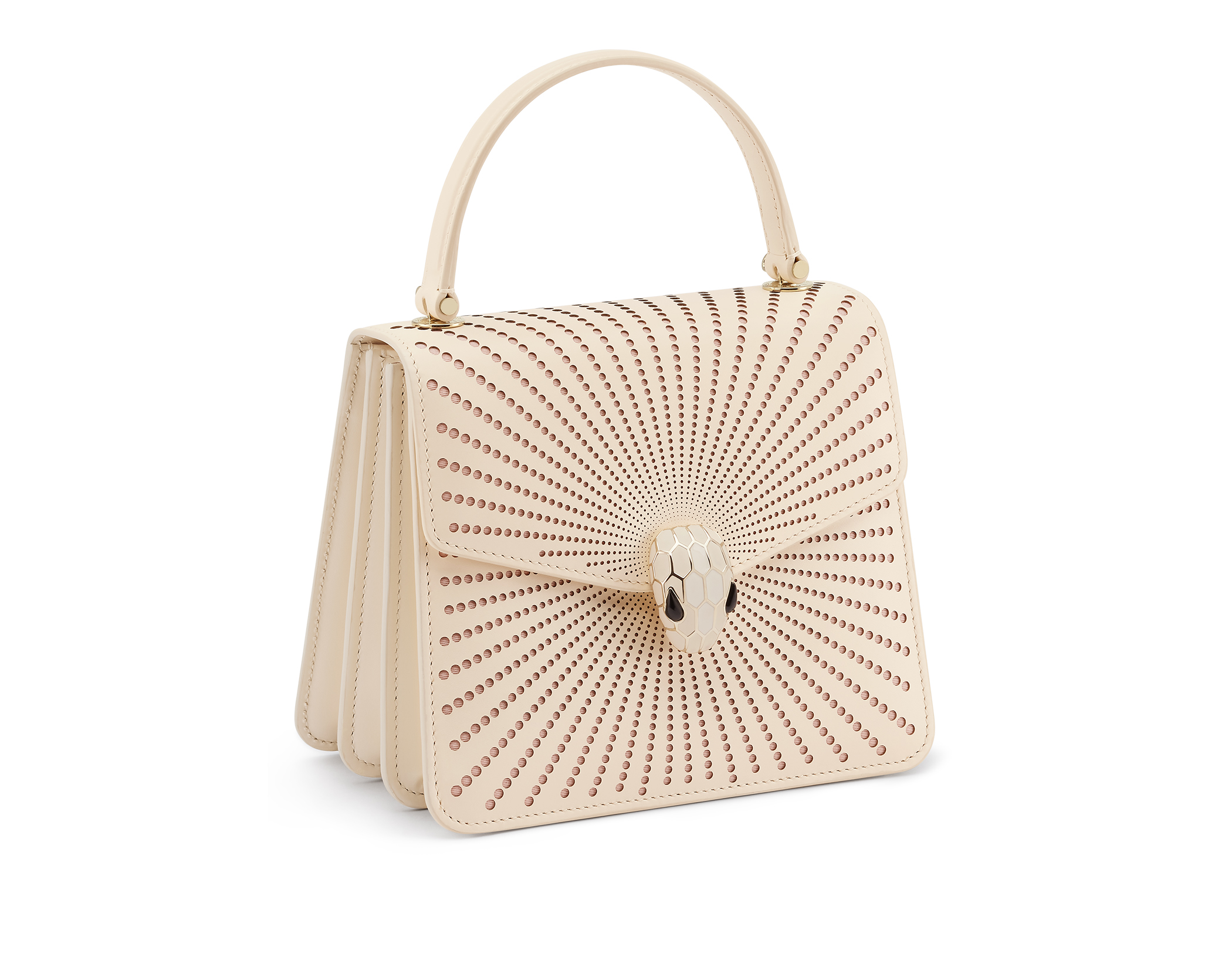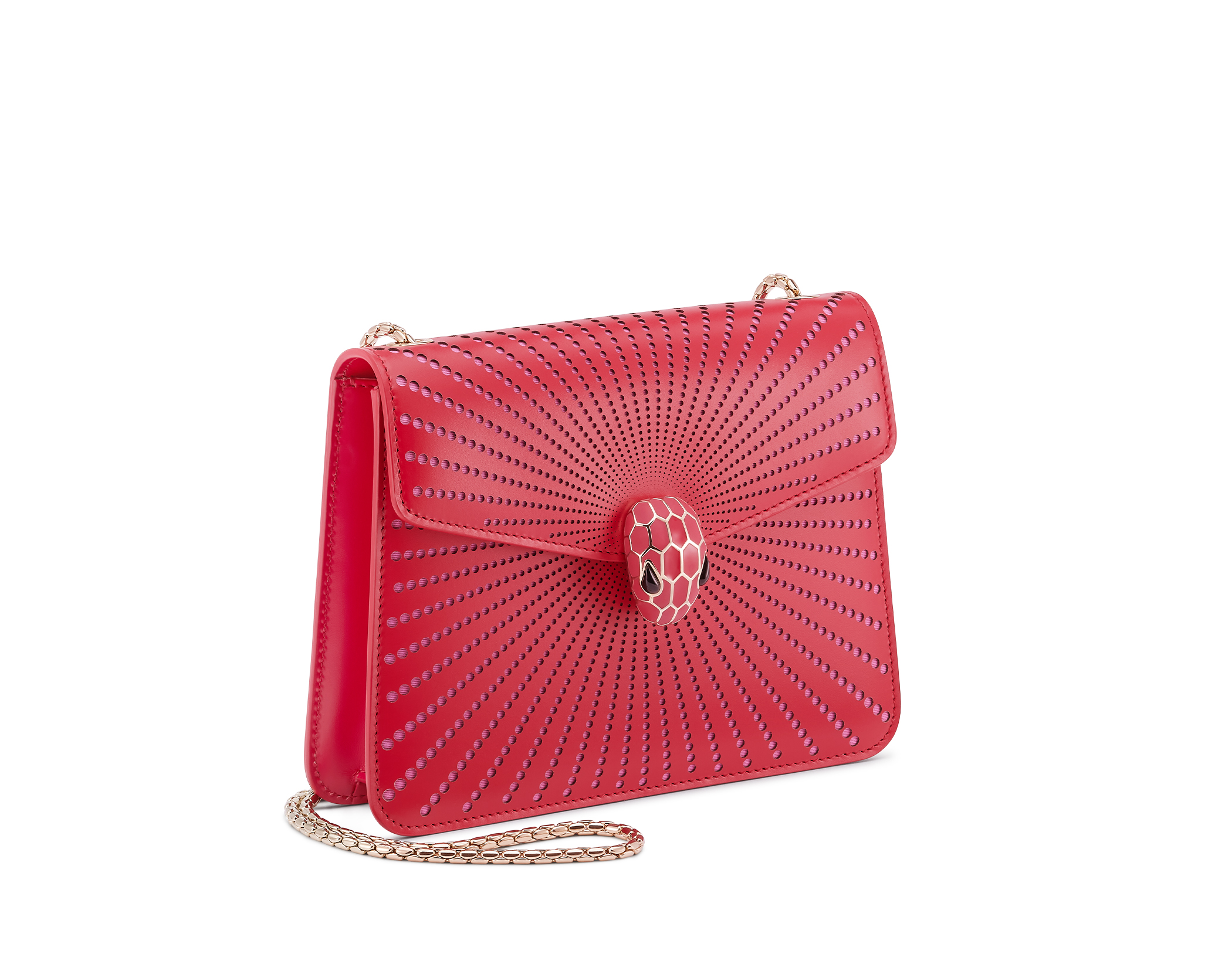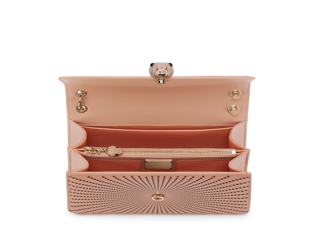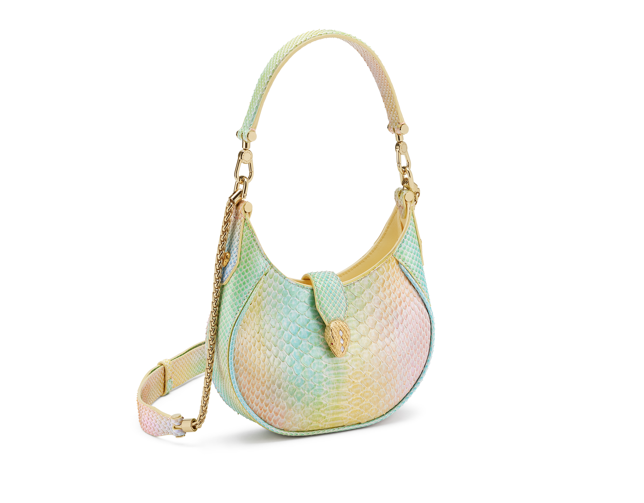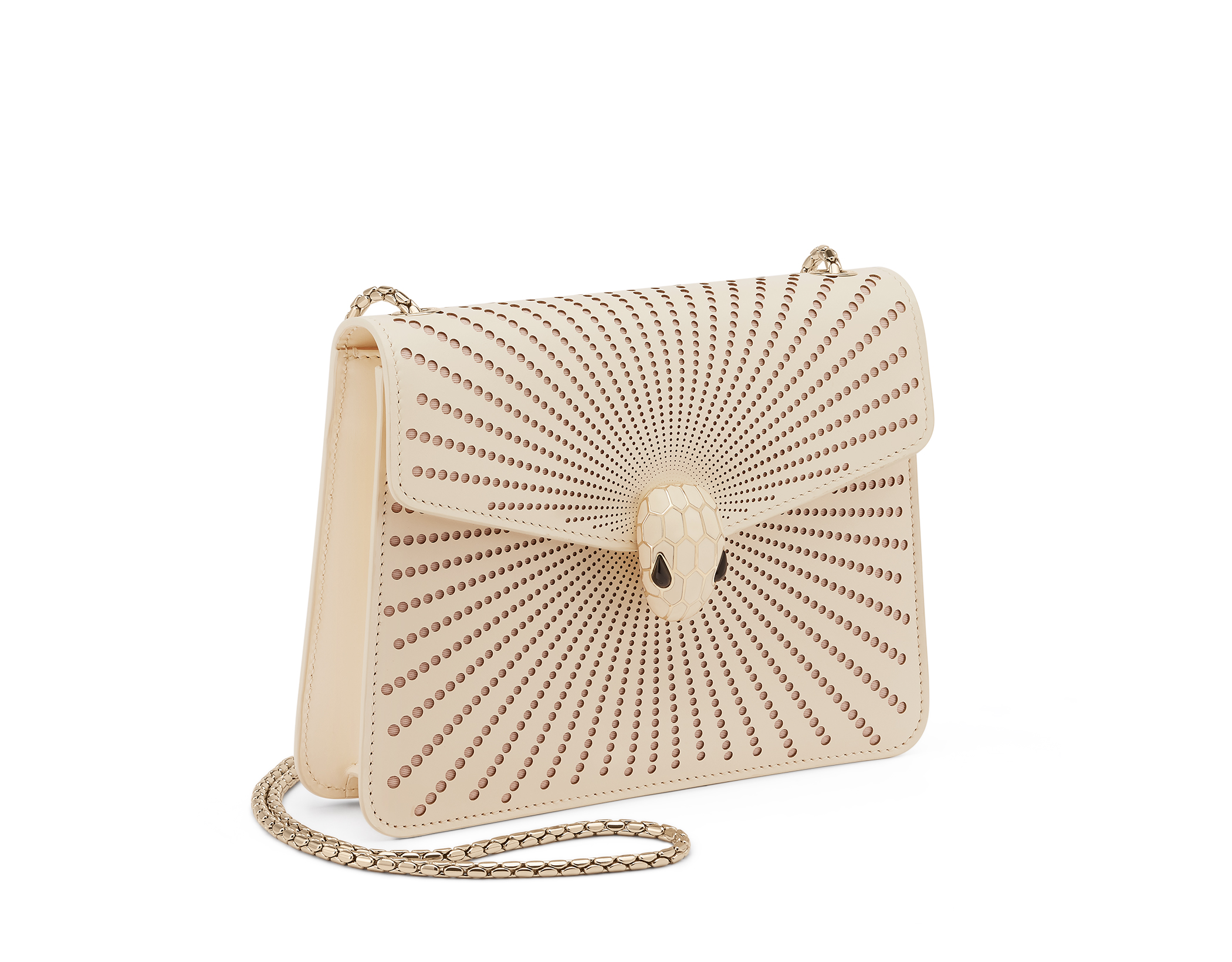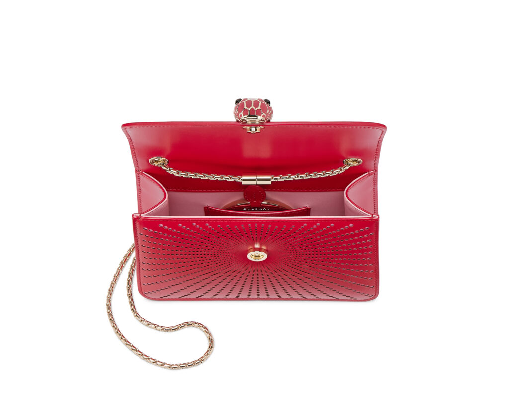 RADIANCE, l’une des atmosphères de la collection, célèbre le rayonnement omniprésent de la Ville Eternelle avec un nouveau motif rayon de soleil inspiré de l’héritage horloger de Bulgari. Serpenti se décline sous de nouvelles formes surprenantes pour sublimer des modèles aussi modernes qu’inattendus, tels que les sacs Hobo Serpenti et Vanity Serpenti. La collection expérimente des techniques de fabrication inédites, telles que la découpe laser ultra-contemporaine pour le Serpenti Laser Cut, ou encore la maille inspirée de l’univers de la joaillerie pour le Serpenti Heritage Mesh et le Serpenti Full Metal Mesh.