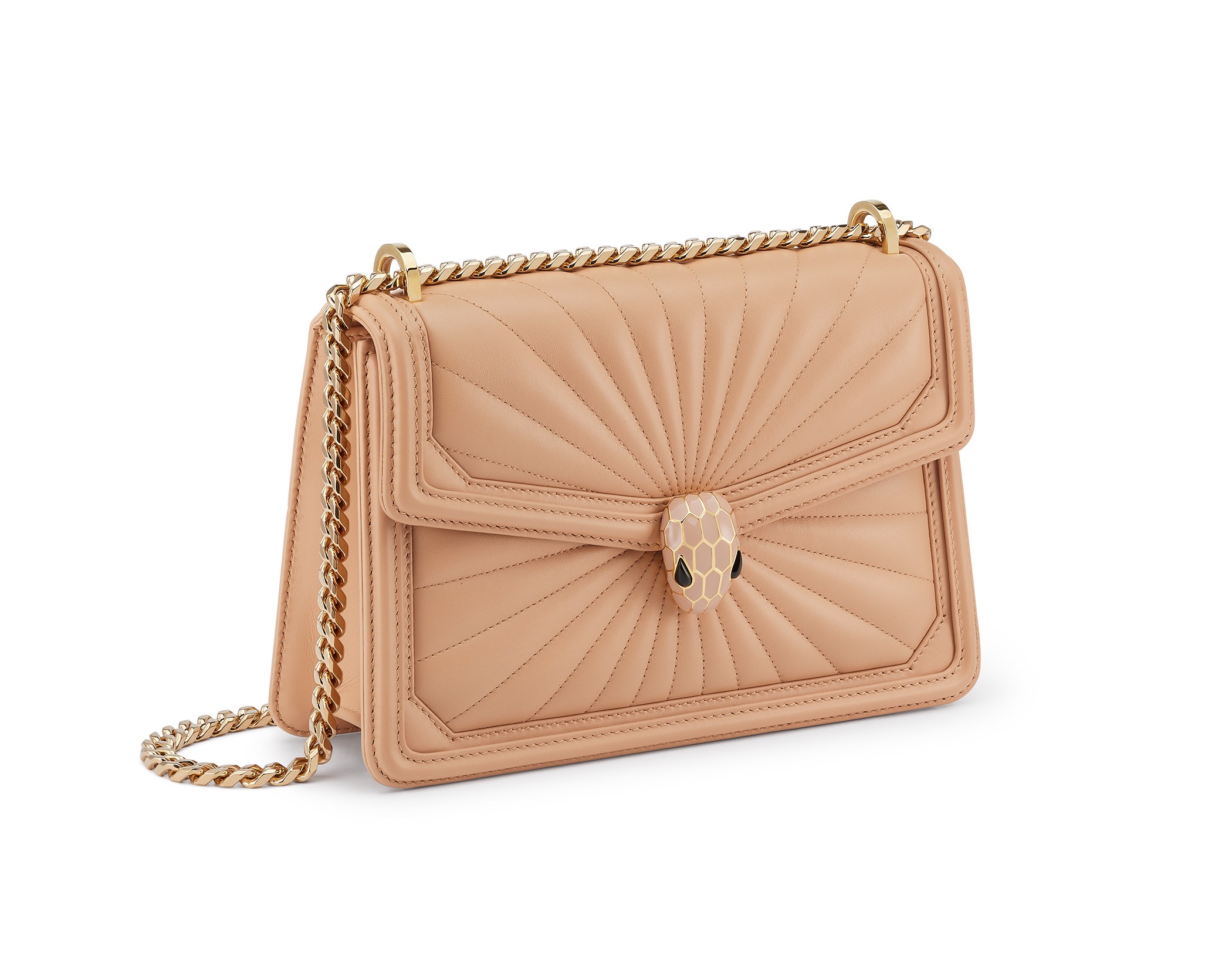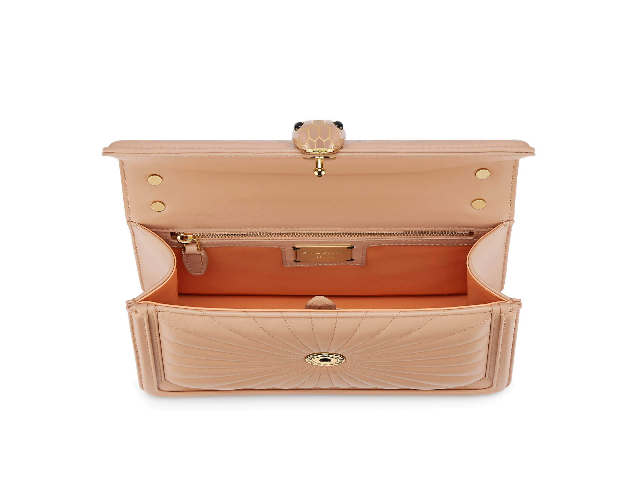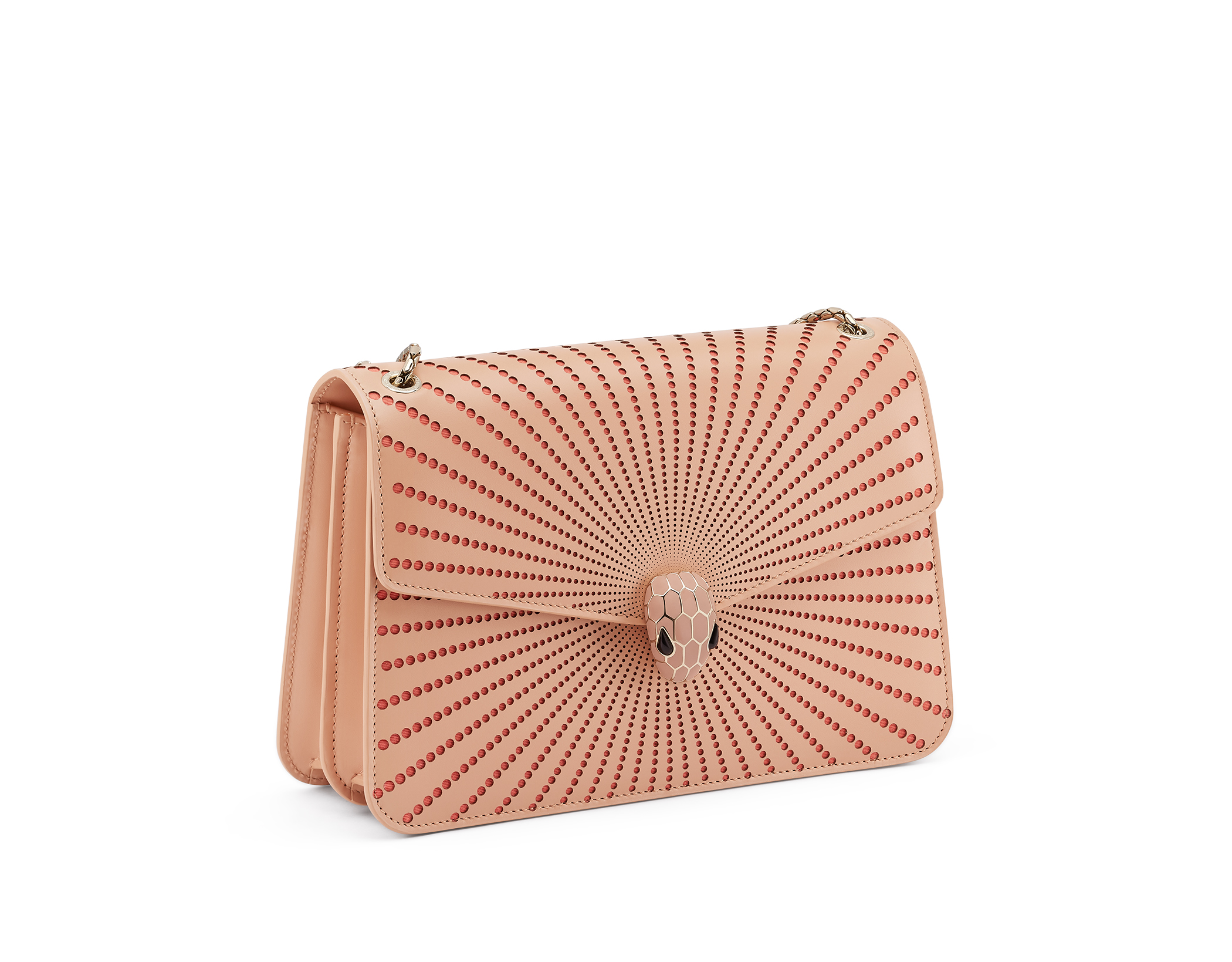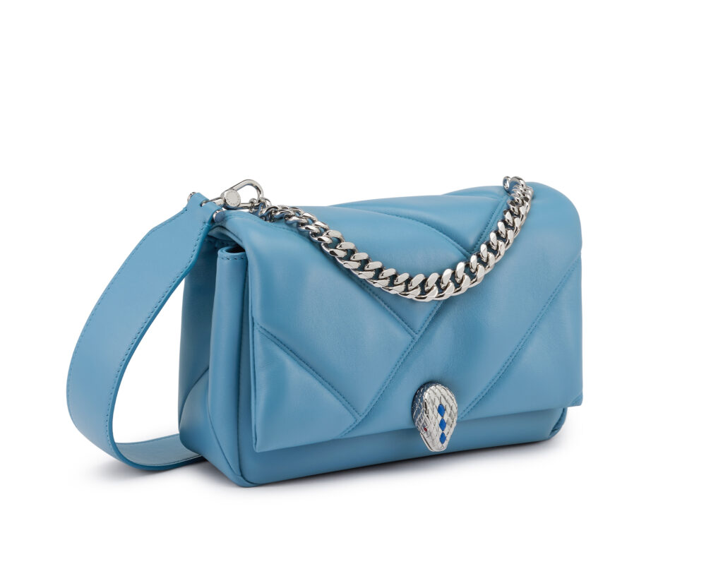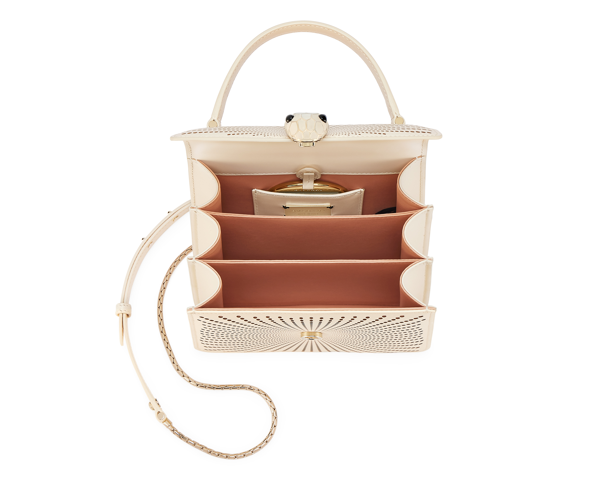 RADIANCE, l’une des atmosphères de la collection, célèbre le rayonnement omniprésent de la Ville Eternelle avec un nouveau motif rayon de soleil inspiré de l’héritage horloger de Bulgari. Serpenti se décline sous de nouvelles formes surprenantes pour sublimer des modèles aussi modernes qu’inattendus, tels que les sacs Hobo Serpenti et Vanity Serpenti. La collection expérimente des techniques de fabrication inédites, telles que la découpe laser ultra-contemporaine pour le Serpenti Laser Cut, ou encore la maille inspirée de l’univers de la joaillerie pour le Serpenti Heritage Mesh et le Serpenti Full Metal Mesh.